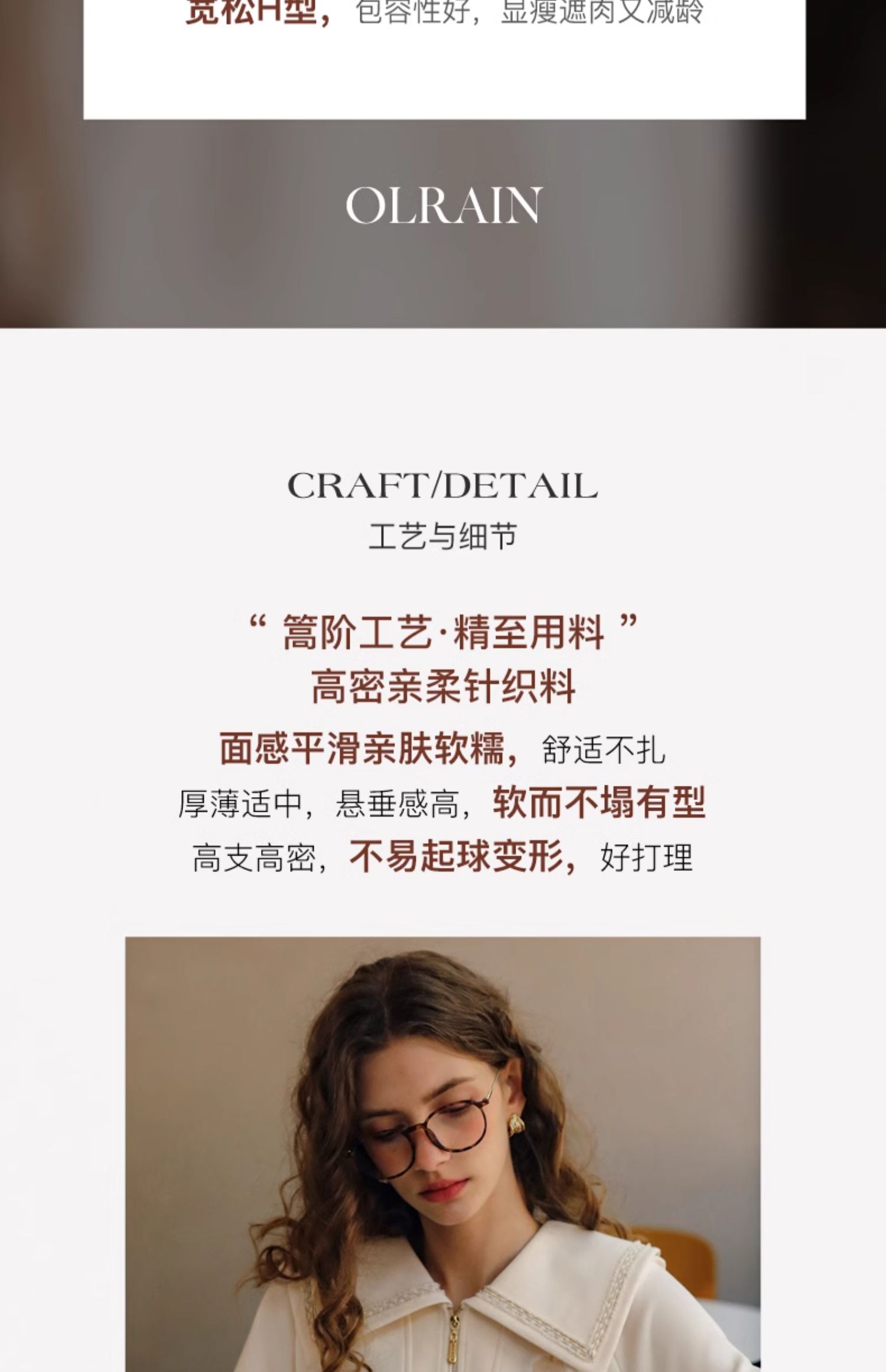 - “精致”是欧芮儿olrain品牌文化的核心,欧芮儿认为,精致的女人,不但要外在动人,更要内在迷人,内外兼修,有魅力、有气质、有内涵,自信而不自傲,优雅而不矫揉,自有万种风情而不轻浮,更不故作矜持。