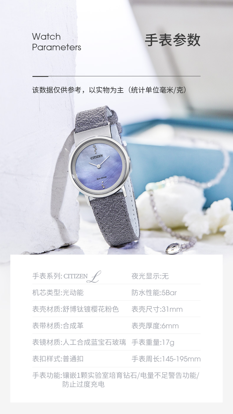 CITIZEN L × CHAN LUU合作限量款西铁城光动能优雅女士腕表EG7071-03L