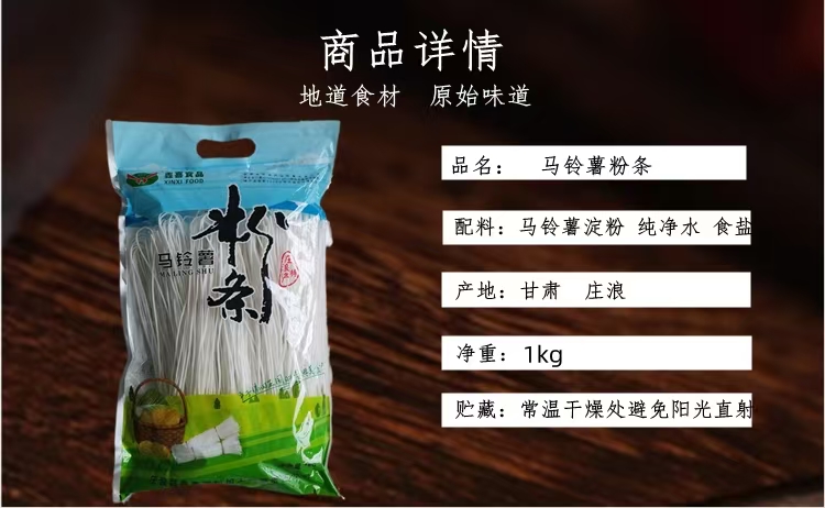 甘肃庄浪粉条纯土豆粉麻辣烫粉火锅小粉皮马铃薯韭叶粉4斤礼盒