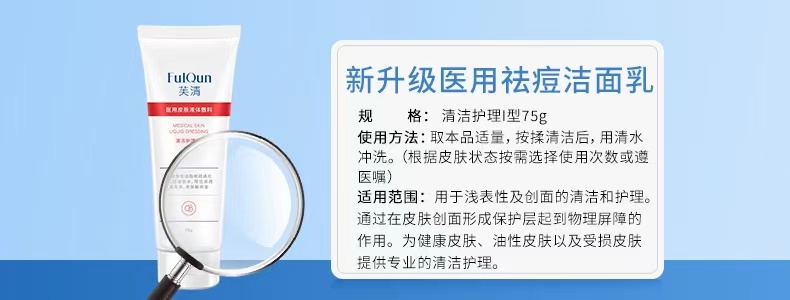 FQ芙清洗面奶 男女学生氨基酸黑头粉刺青春痘修复敷料祛痘洁面75g