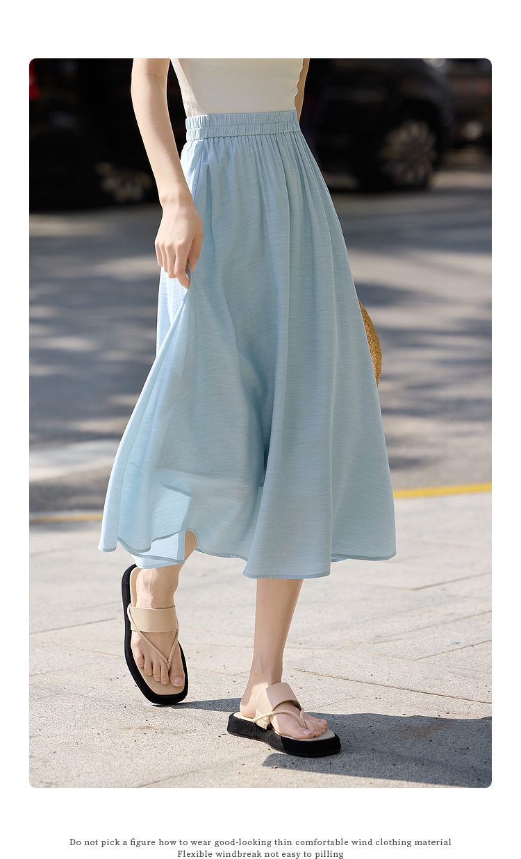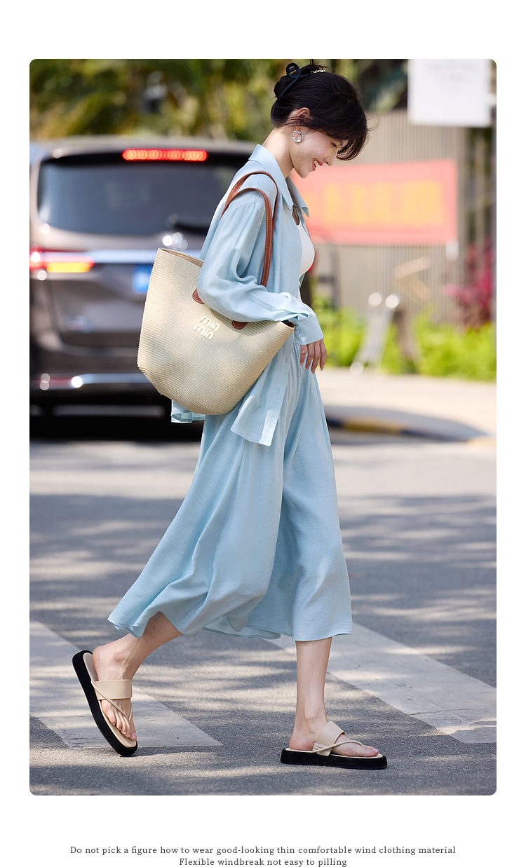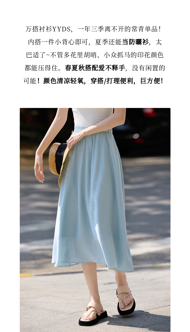 【专属特价】熙世界蓝色长袖防晒衬衫女薄款夏季户外穿搭宽松衬衣半身裙两件套