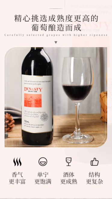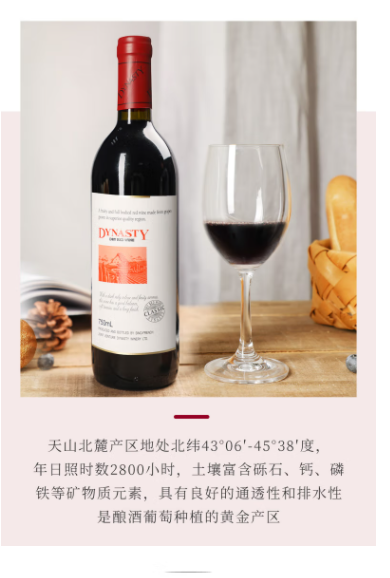 王朝红酒经典干红葡萄酒国产红酒750ml