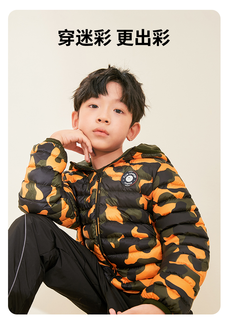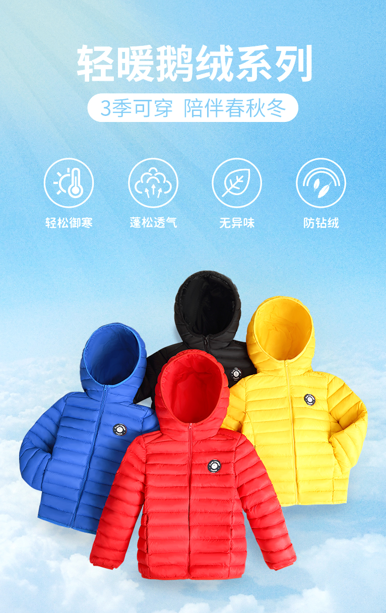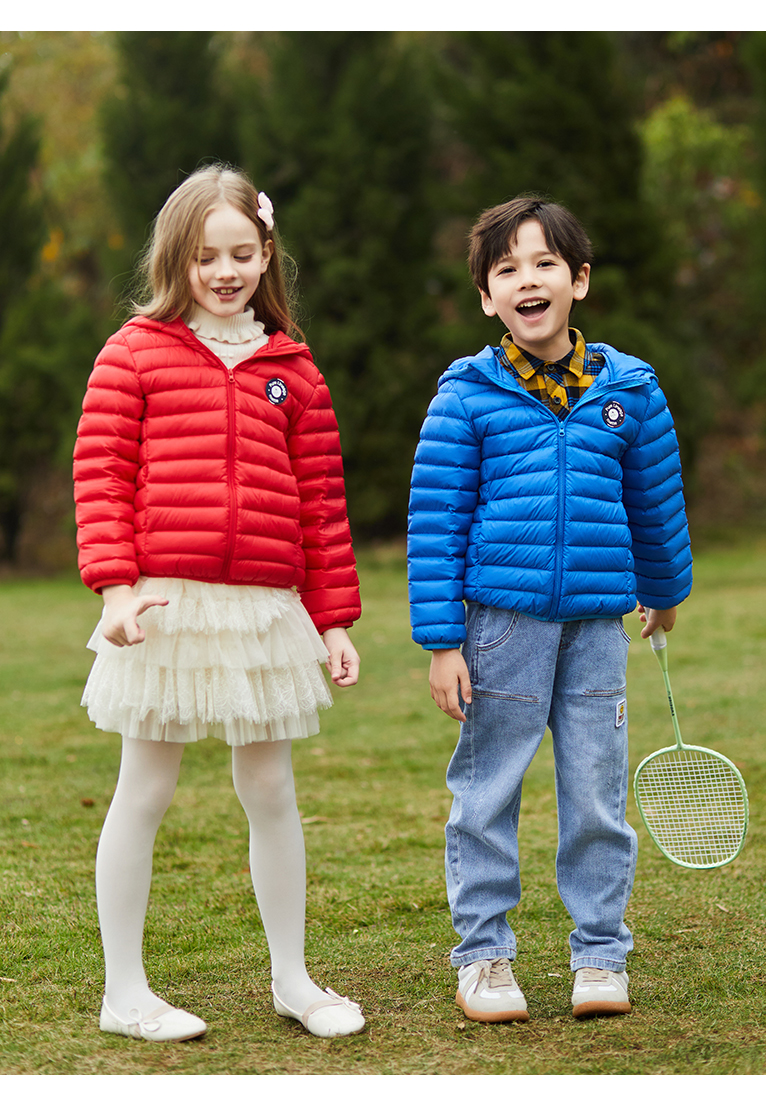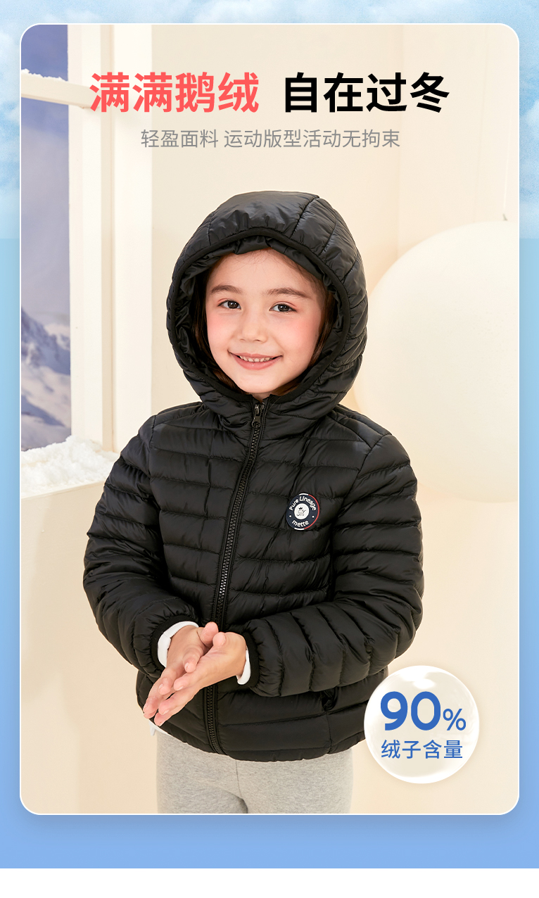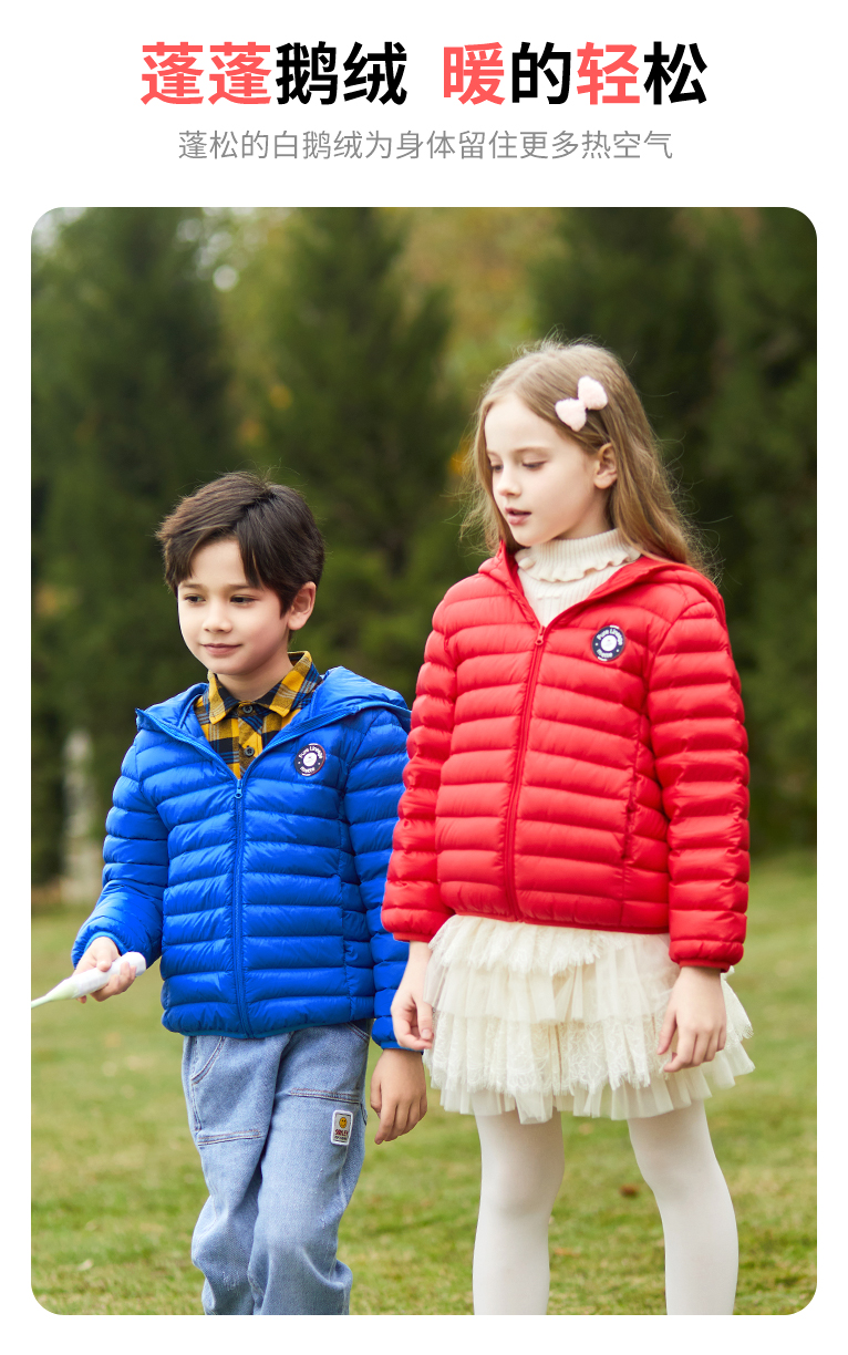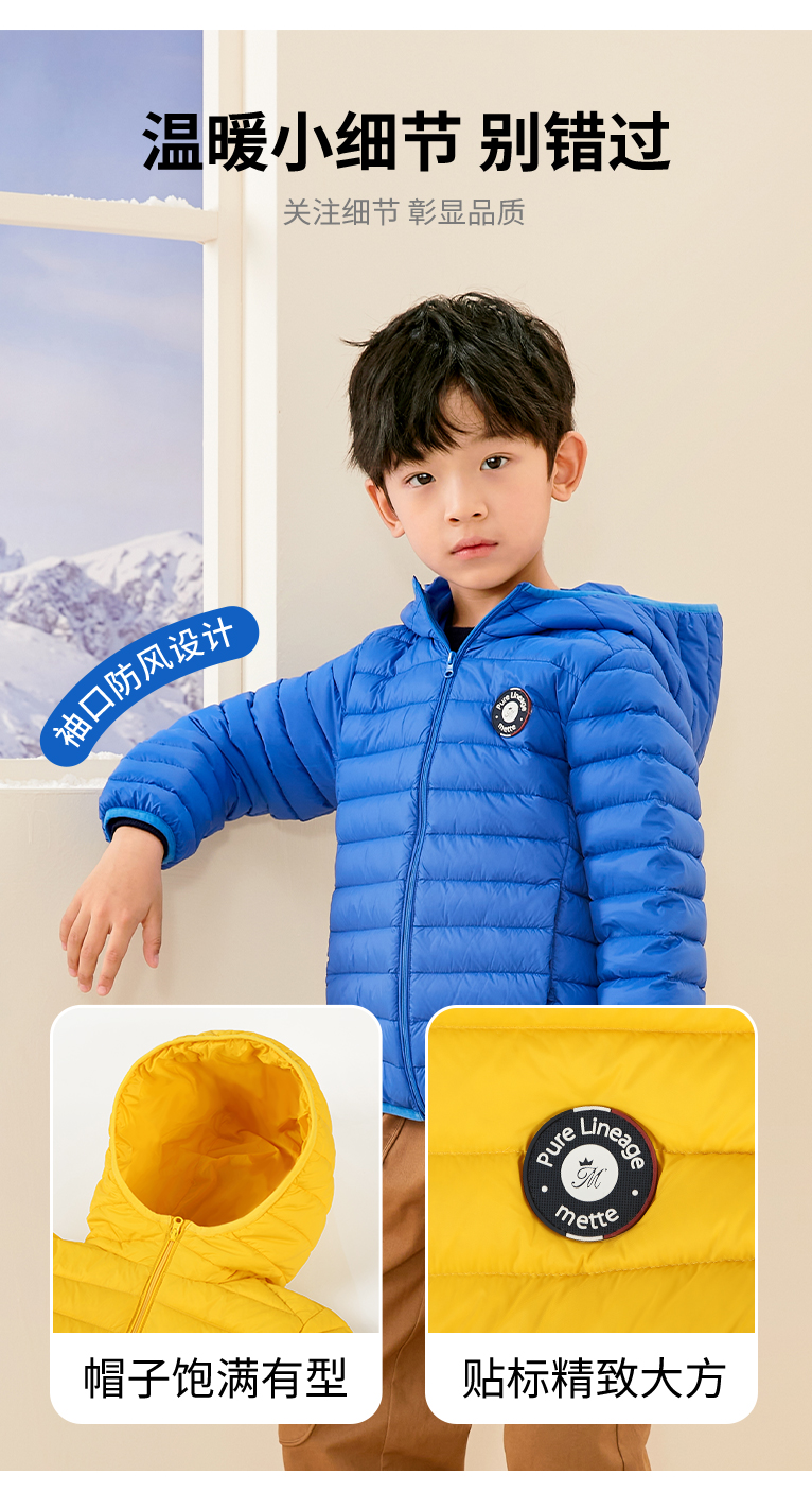 mettekids儿童羽绒服秋冬季白鹅绒短款大童男童女童轻薄连帽外套