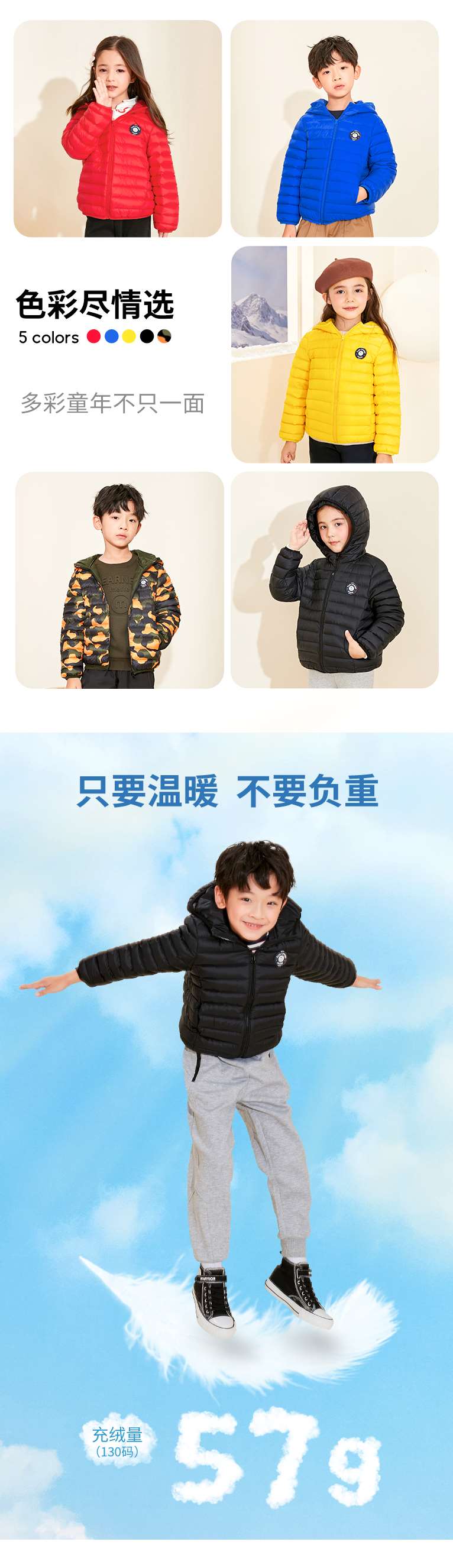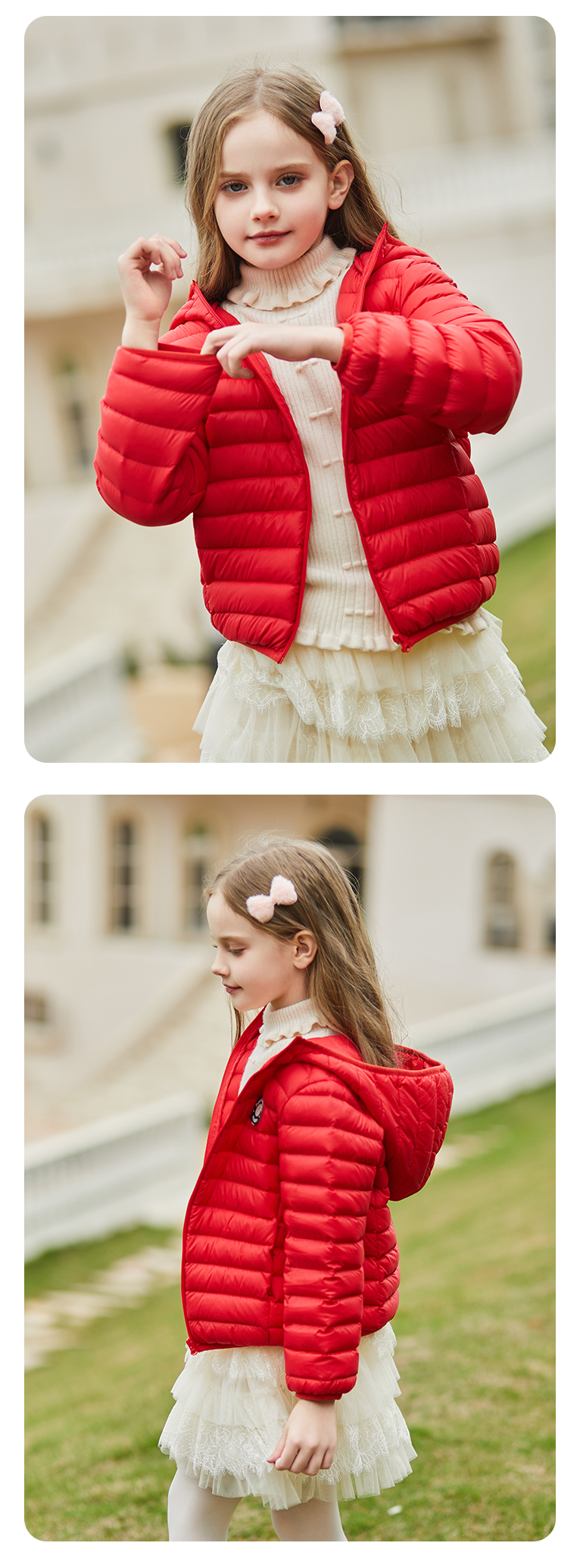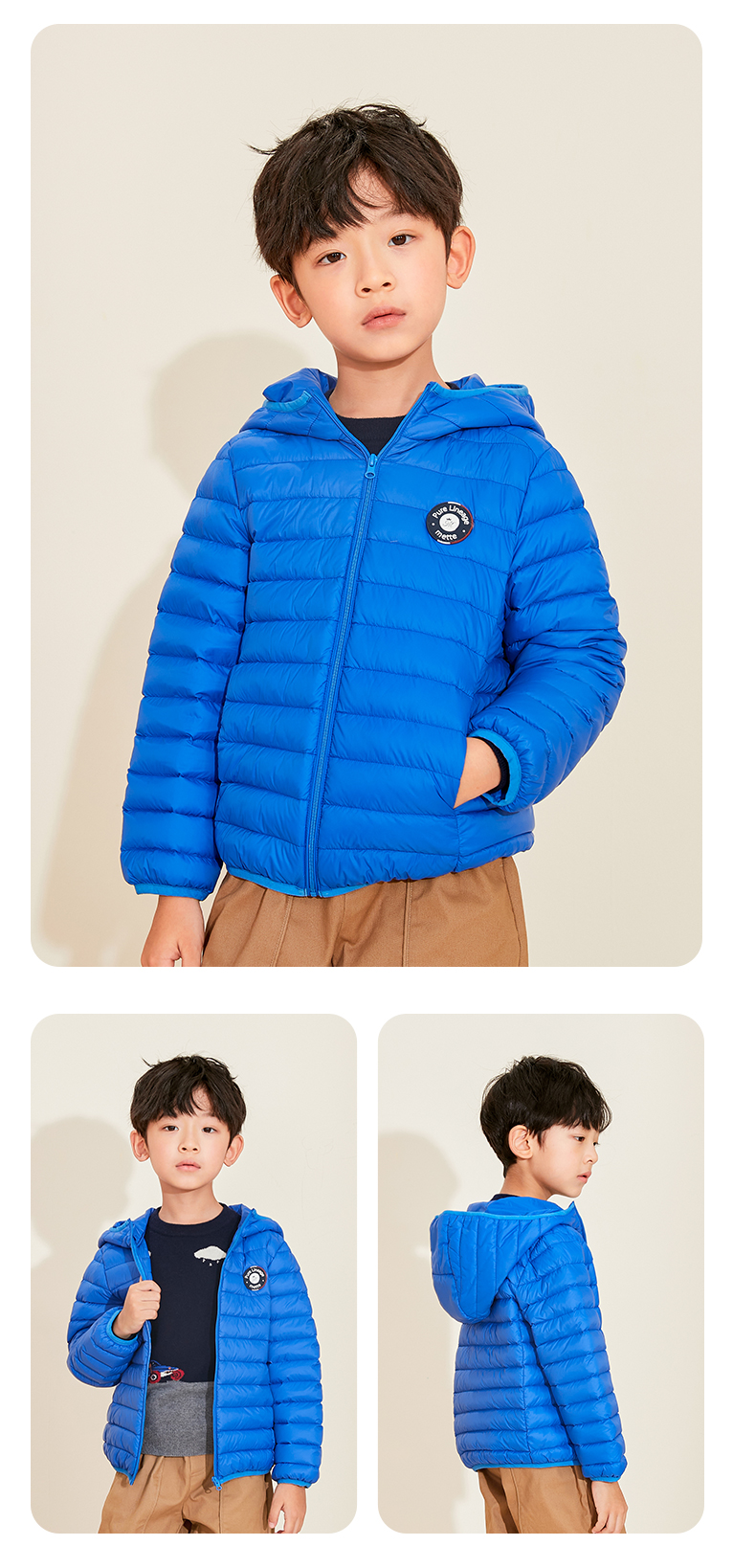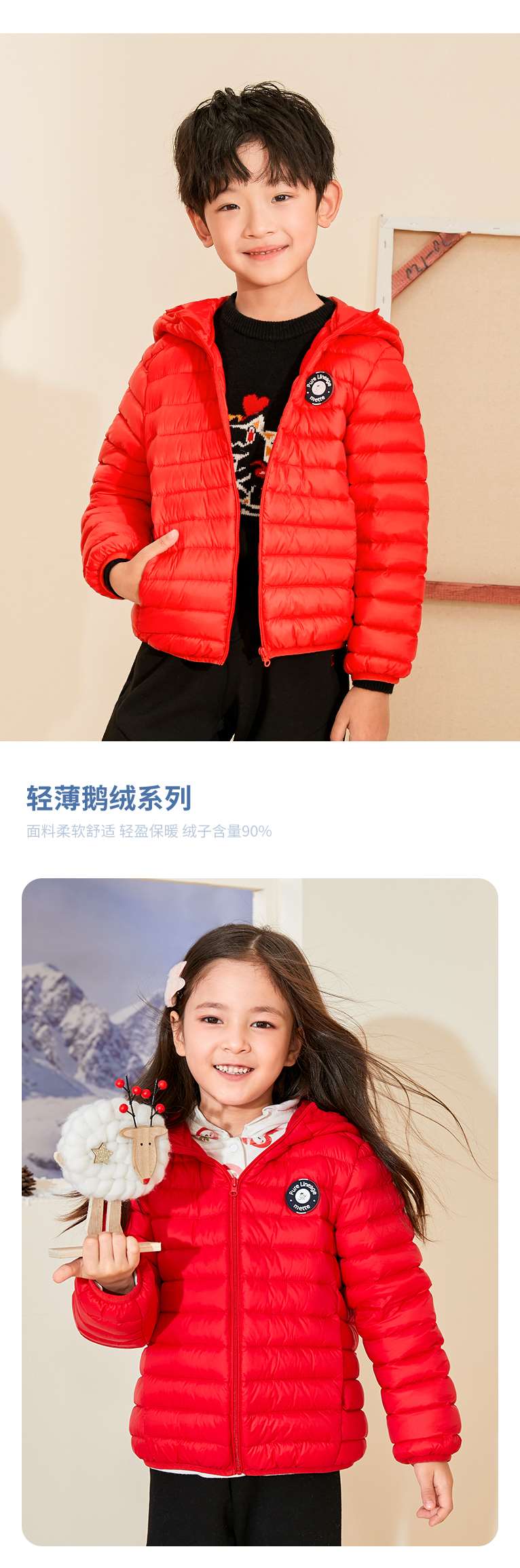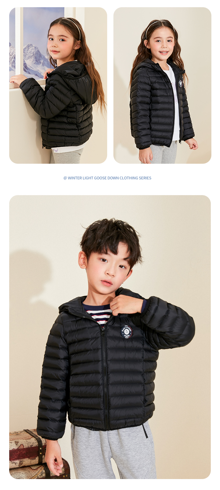 mettekids儿童羽绒服秋冬季白鹅绒短款大童男童女童轻薄连帽外套