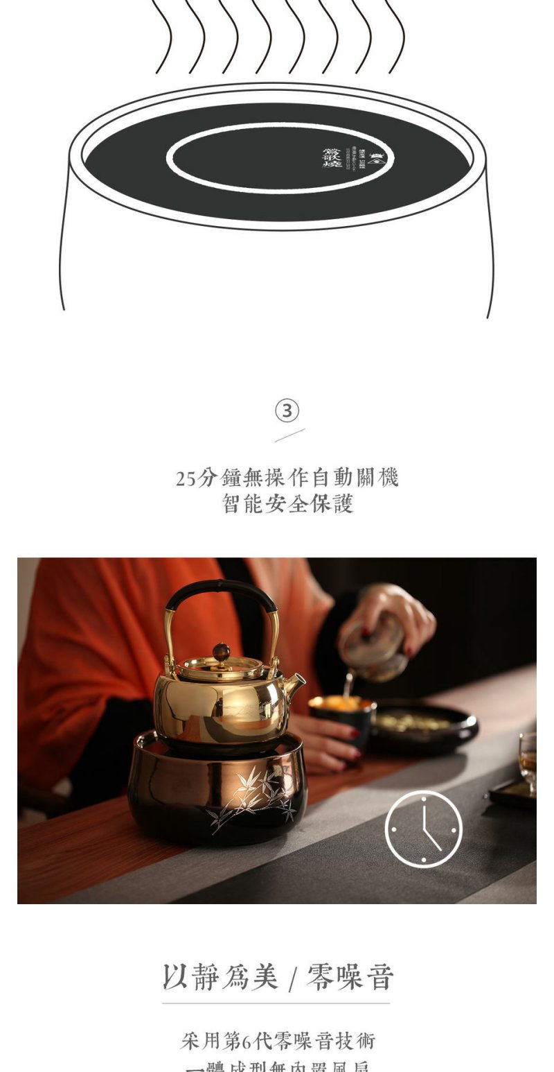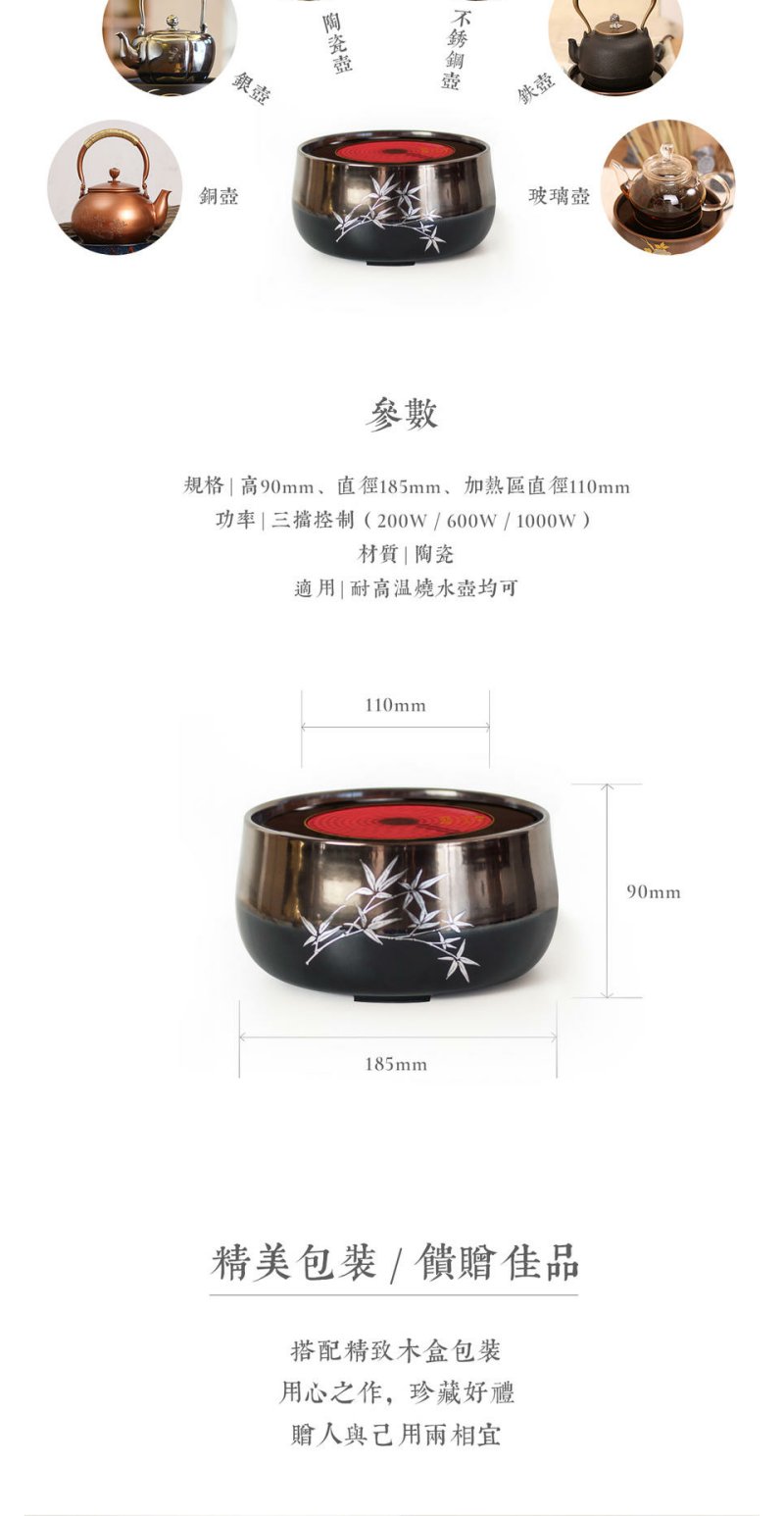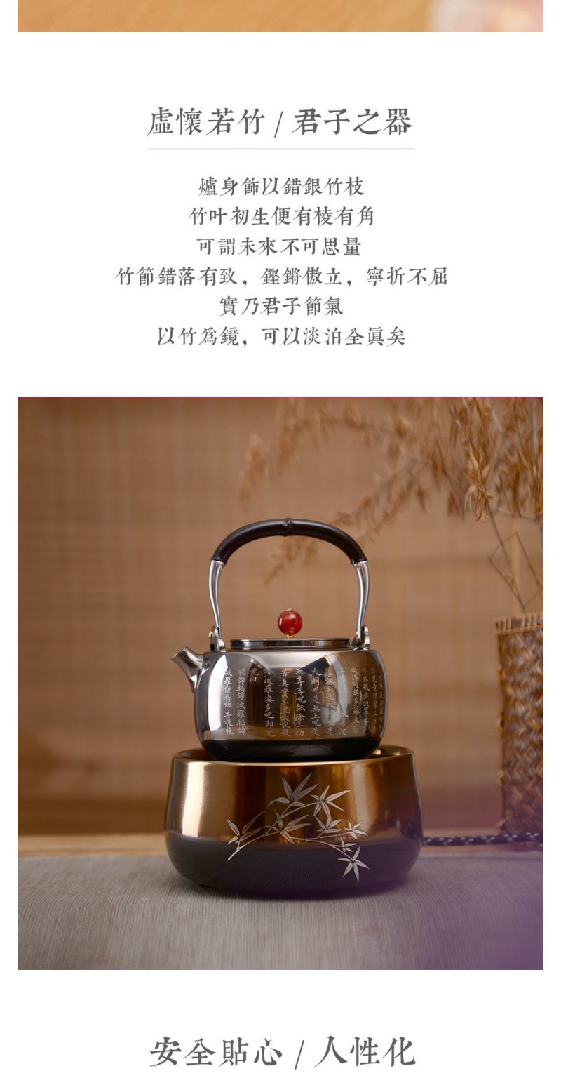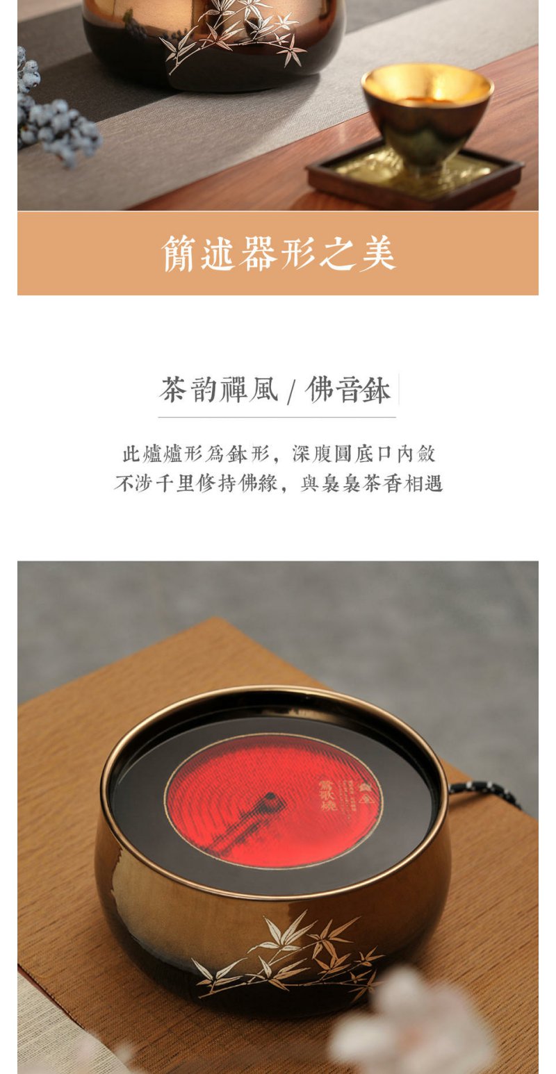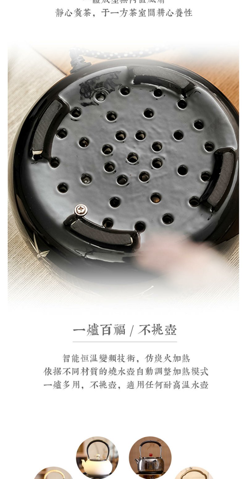 莺歌烧银竹金黑底电陶炉煮茶家用茶炉轻音茶道泡茶专用煮茶器 银竹【厂家直发】