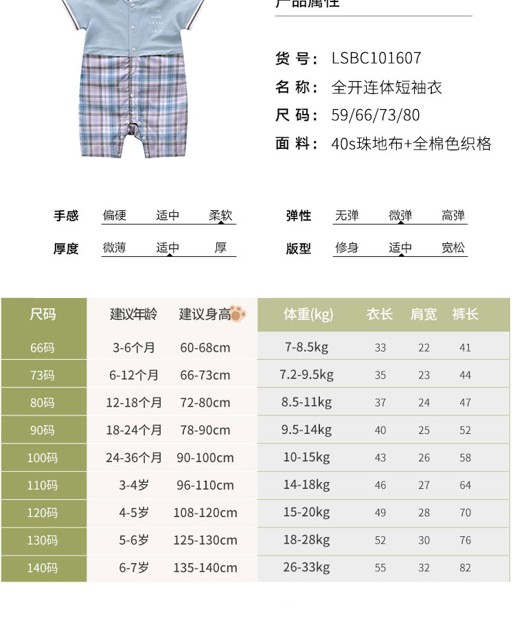 拉比-童衣类(夏)C9全开连体短袖衣
