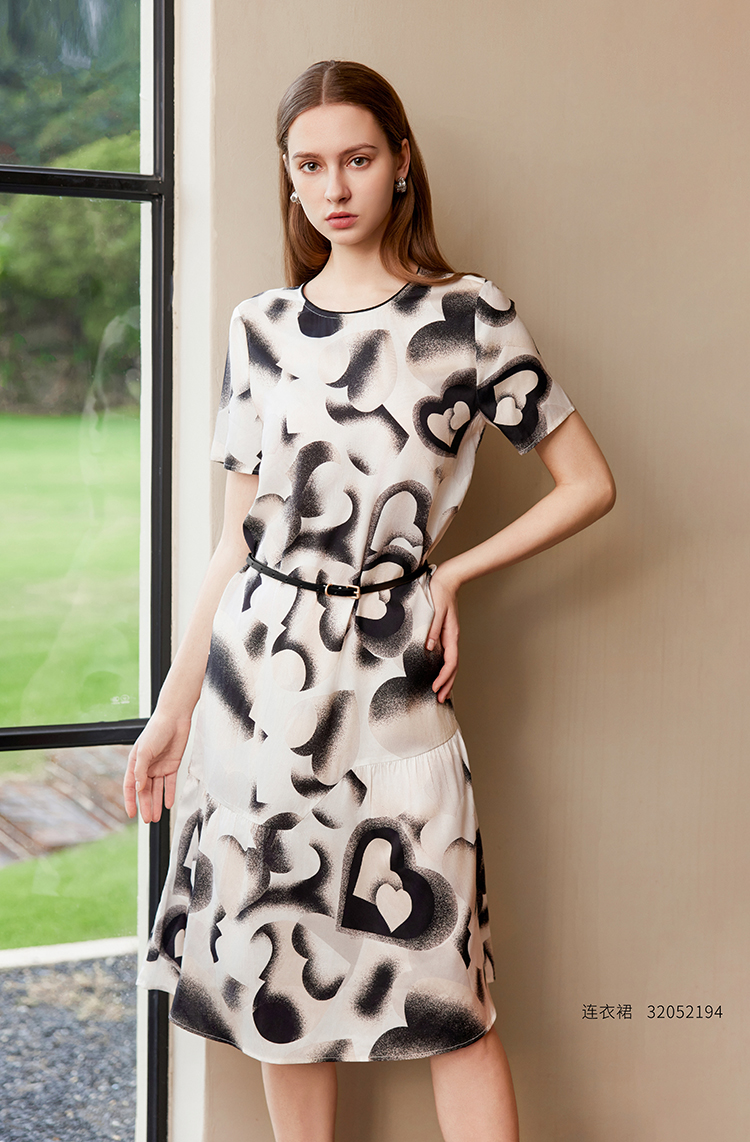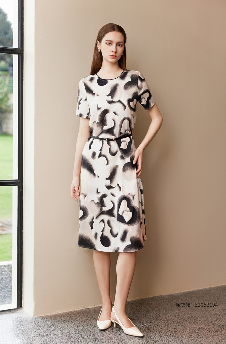 【桑蚕丝印花连衣裙】25年夏季新品女士中长款真丝拼接裙子