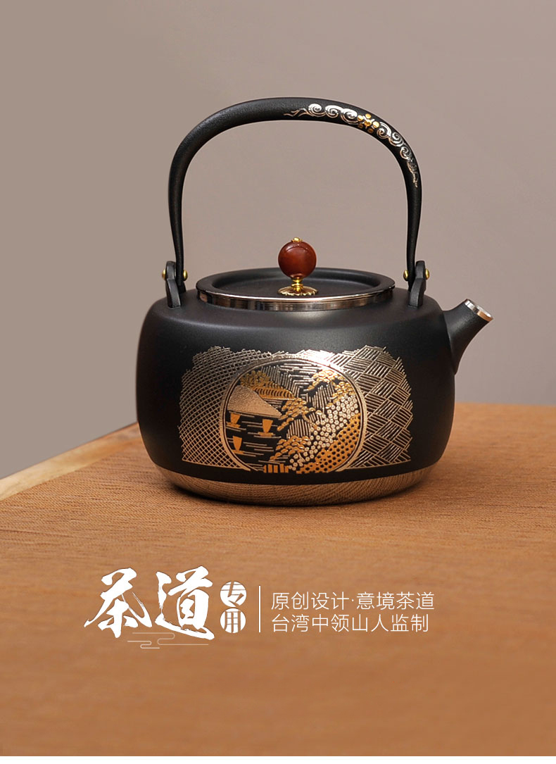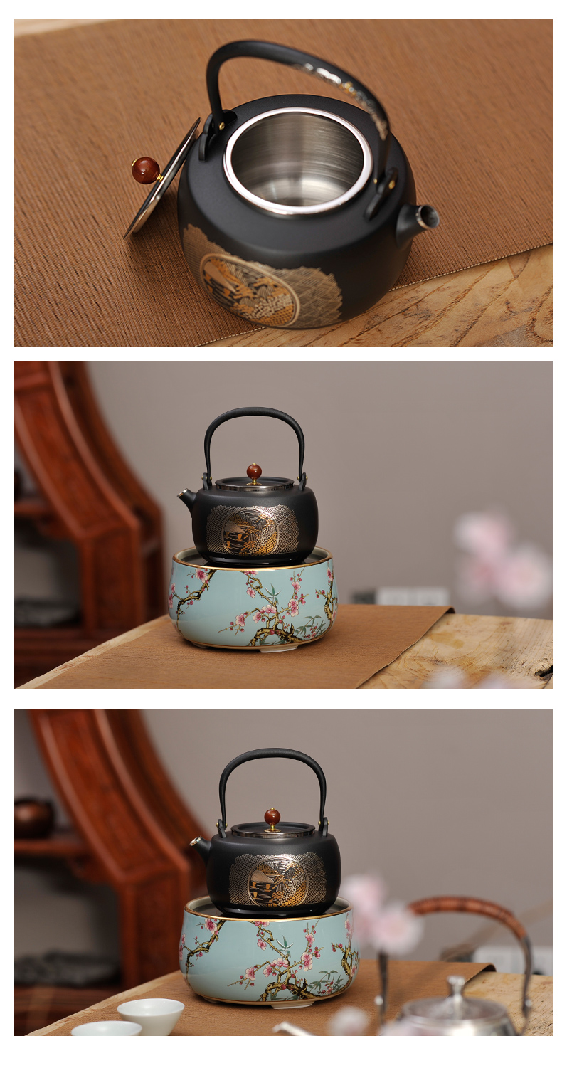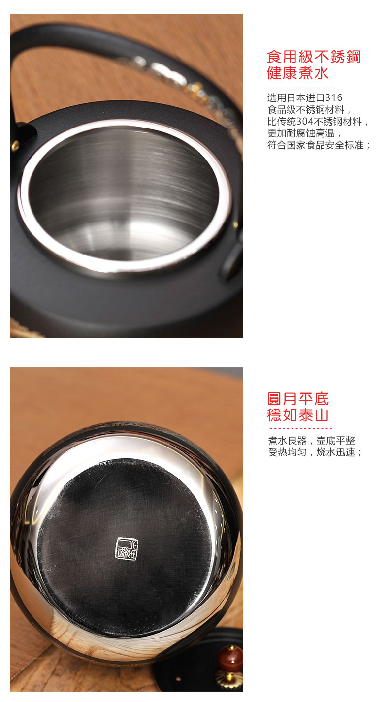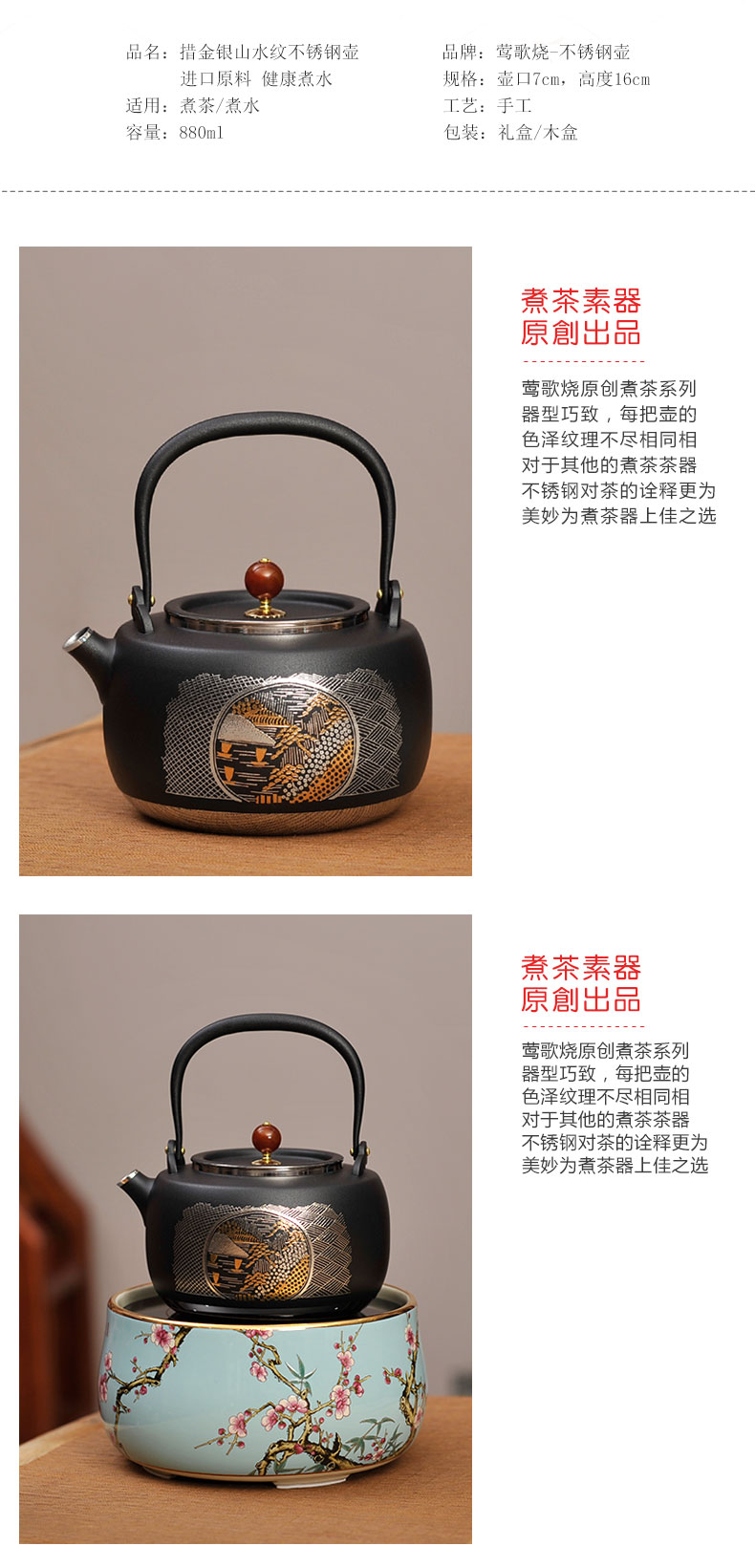 莺歌烧描金银山水纹不锈钢壶电陶炉 食用级316不锈钢烧水壶