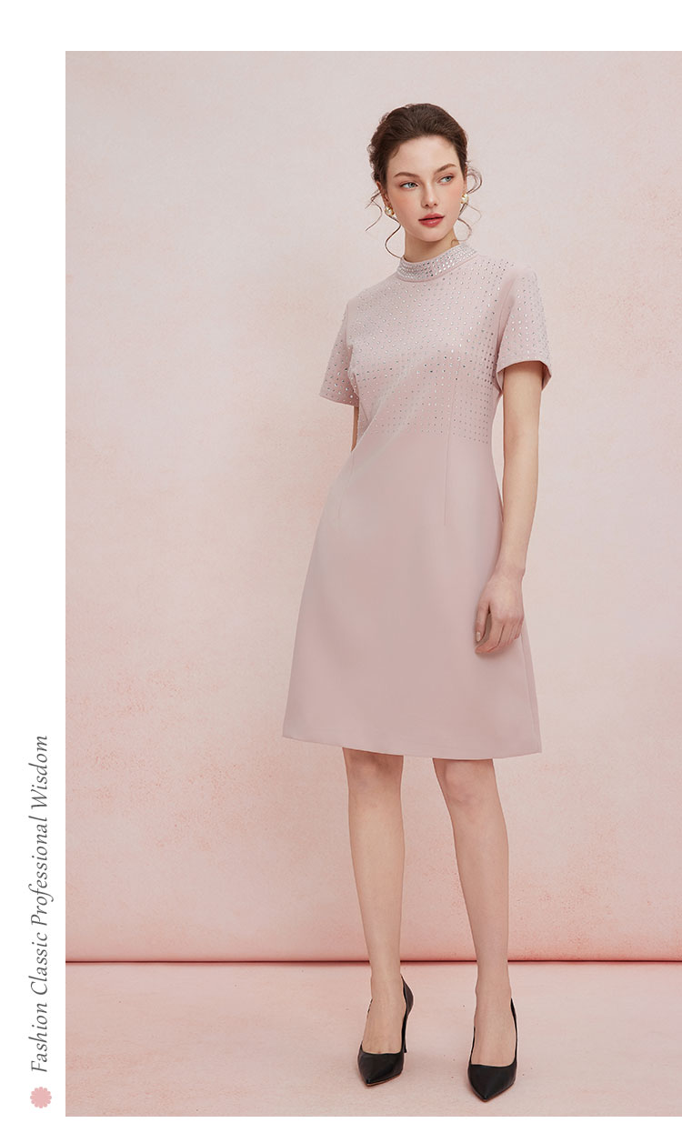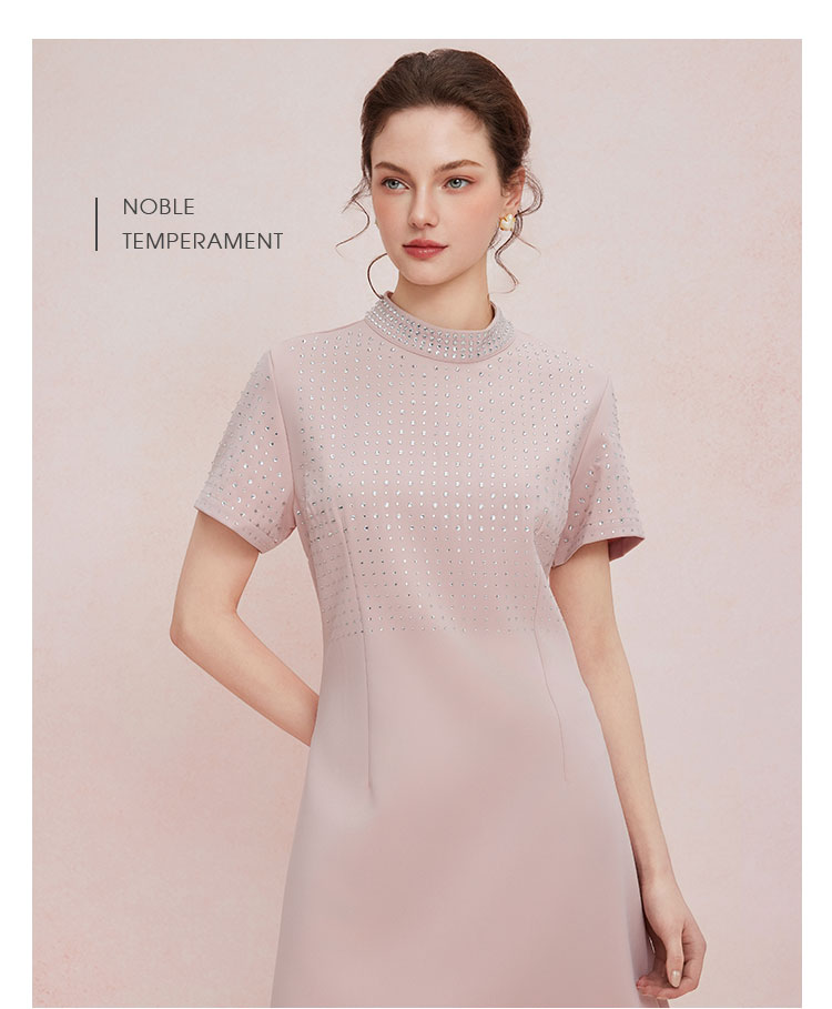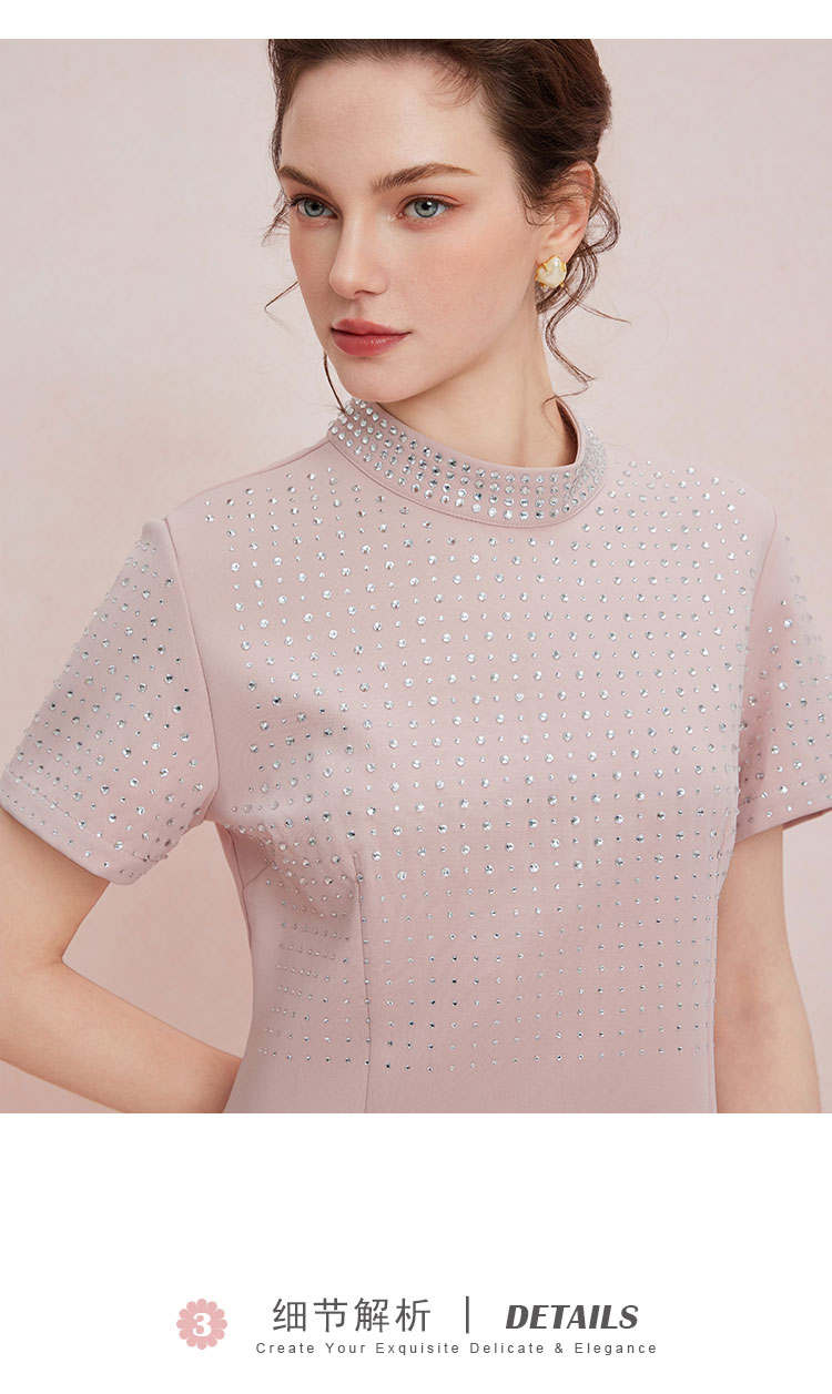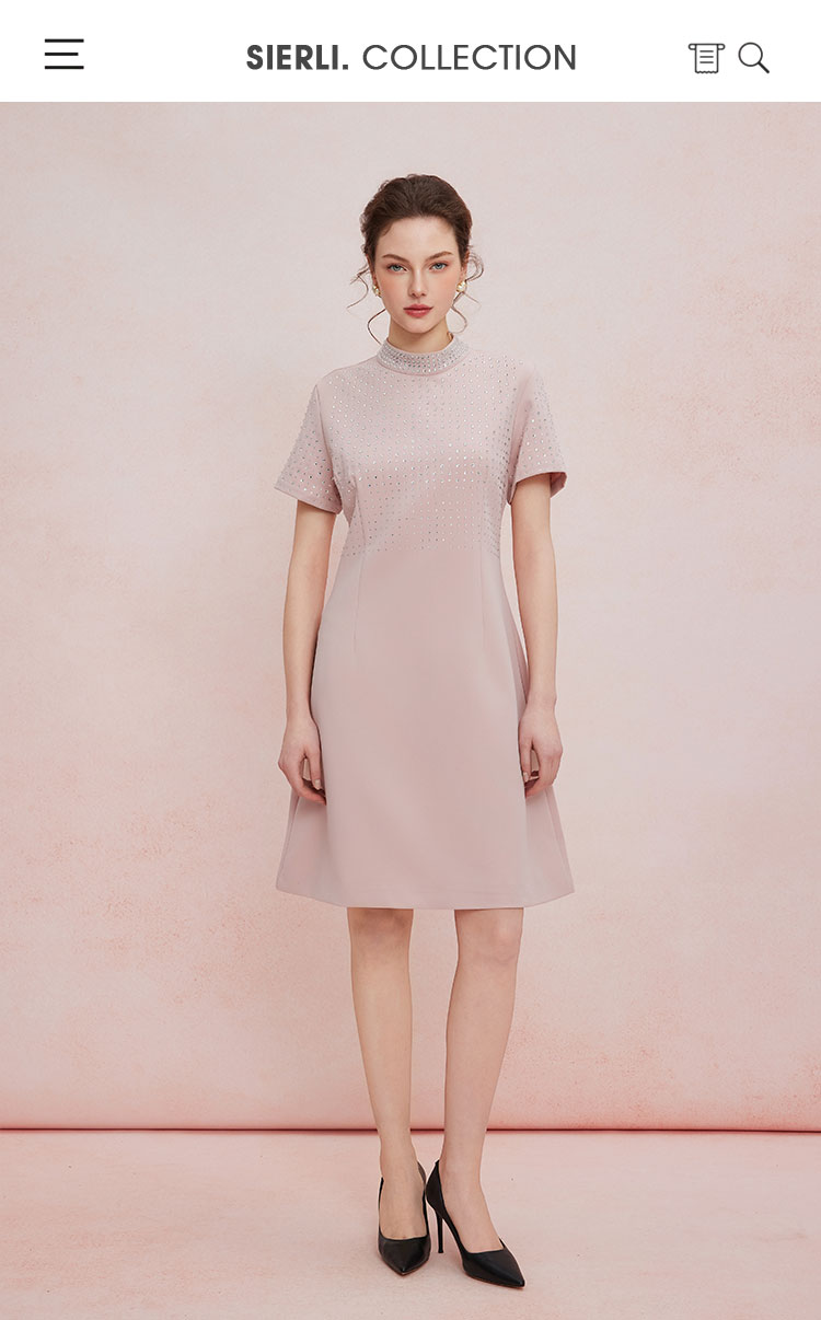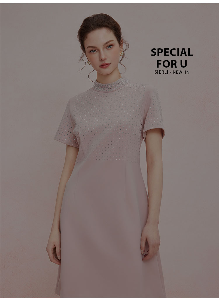QF851斯尔丽2025新款宴会小礼服直身款显瘦显高精致烫钻小立领连衣裙