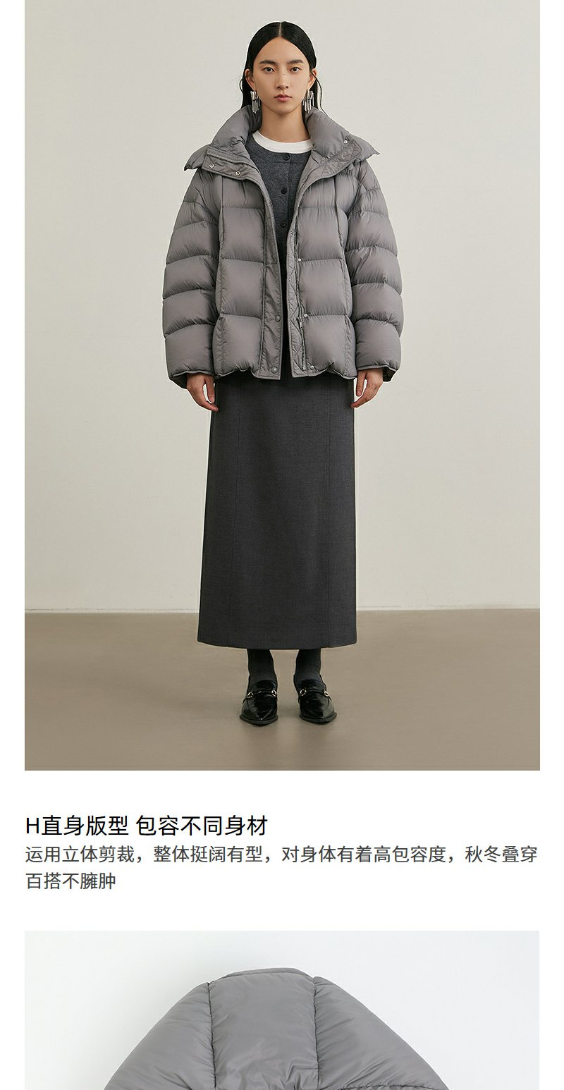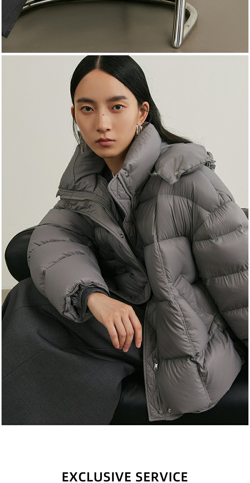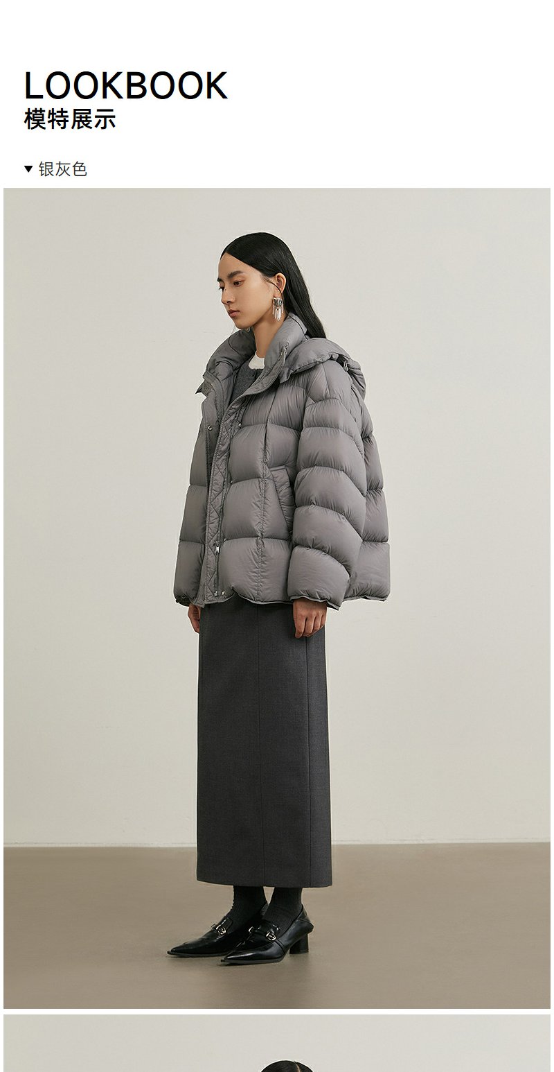 NEELLY纳俪商场同款冬季新款蓬松中长款连帽面包服女白鸭绒羽绒服N25104L04594