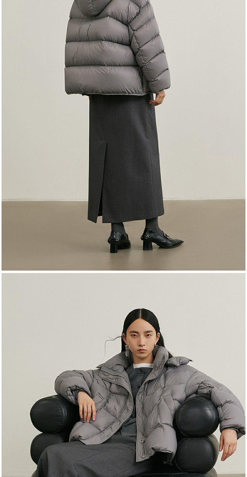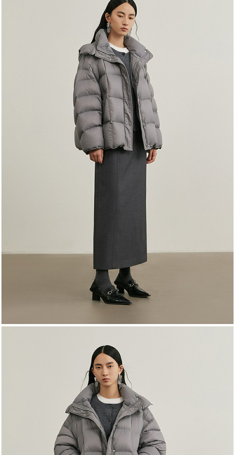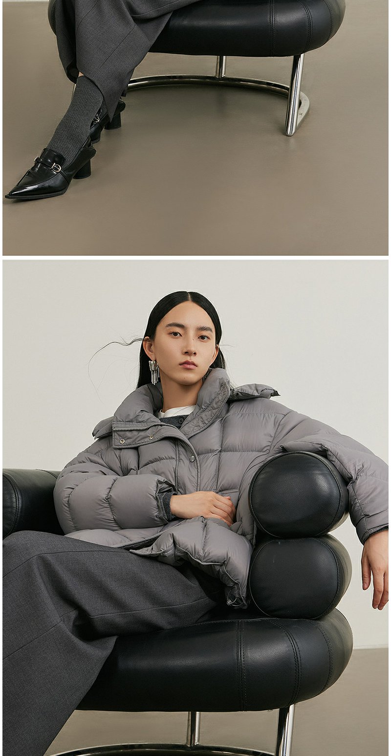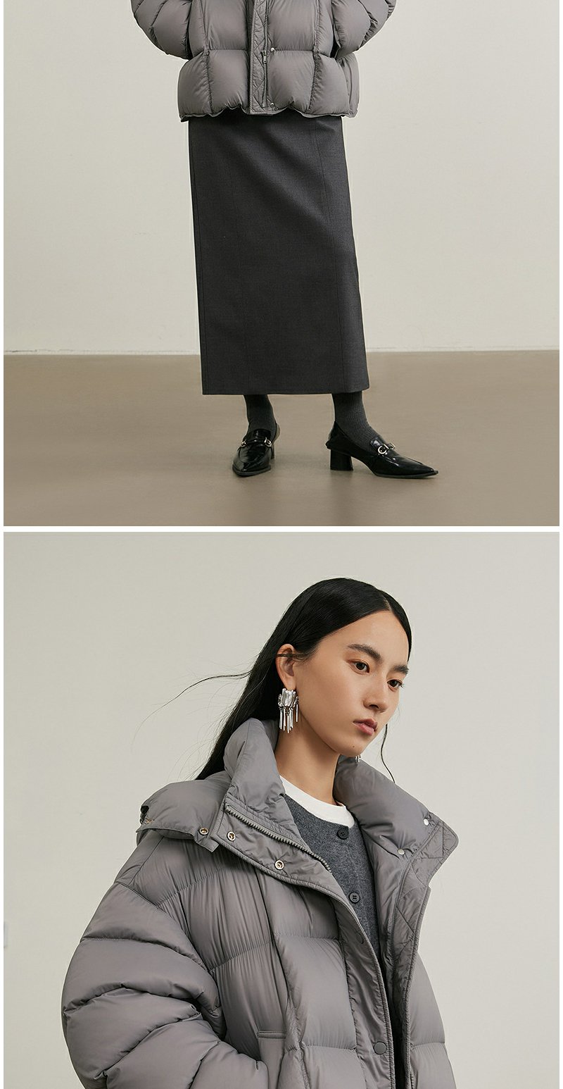 NEELLY纳俪商场同款冬季新款蓬松中长款连帽面包服女白鸭绒羽绒服N25104L04594