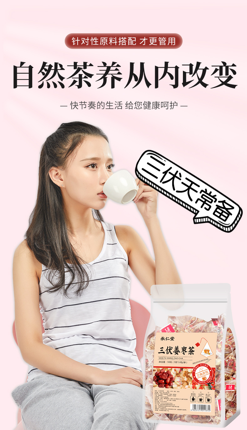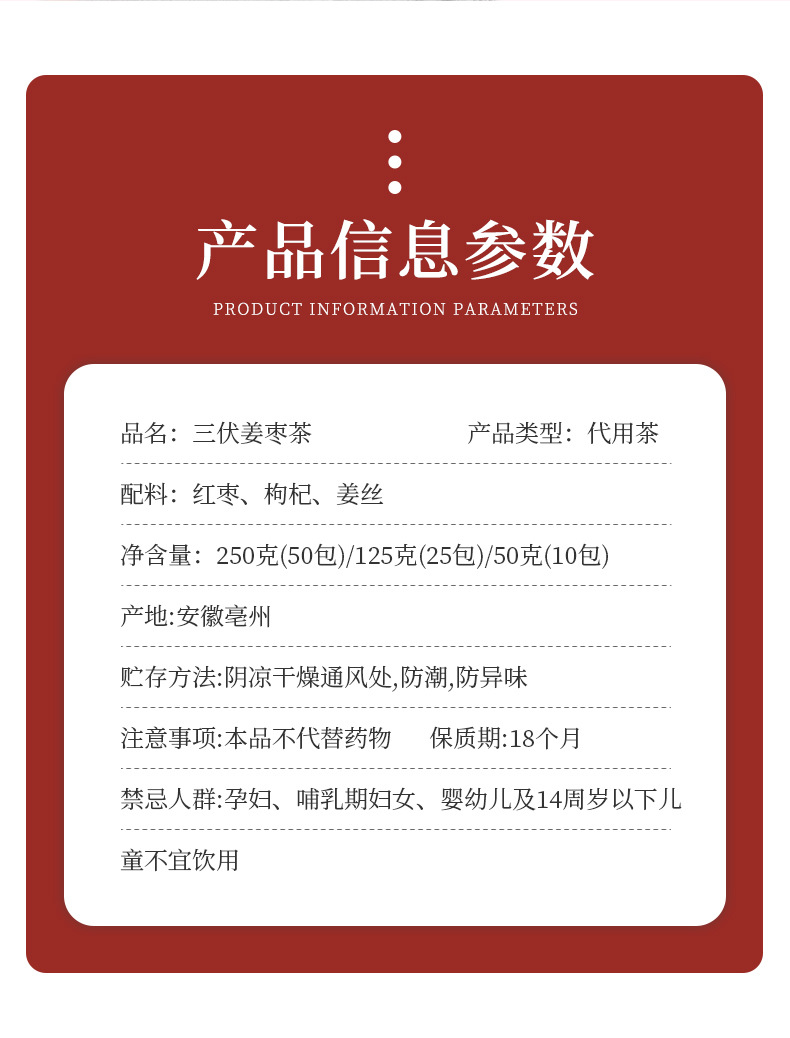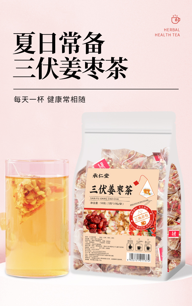 自营(泰利嘉)- 三伏姜枣茶 无糖暴汗 红枣 干姜 枸杞 三伏天组合花茶 网红同款