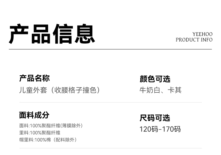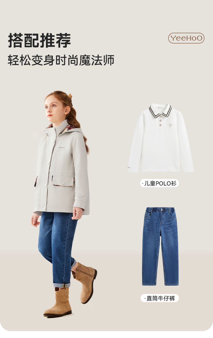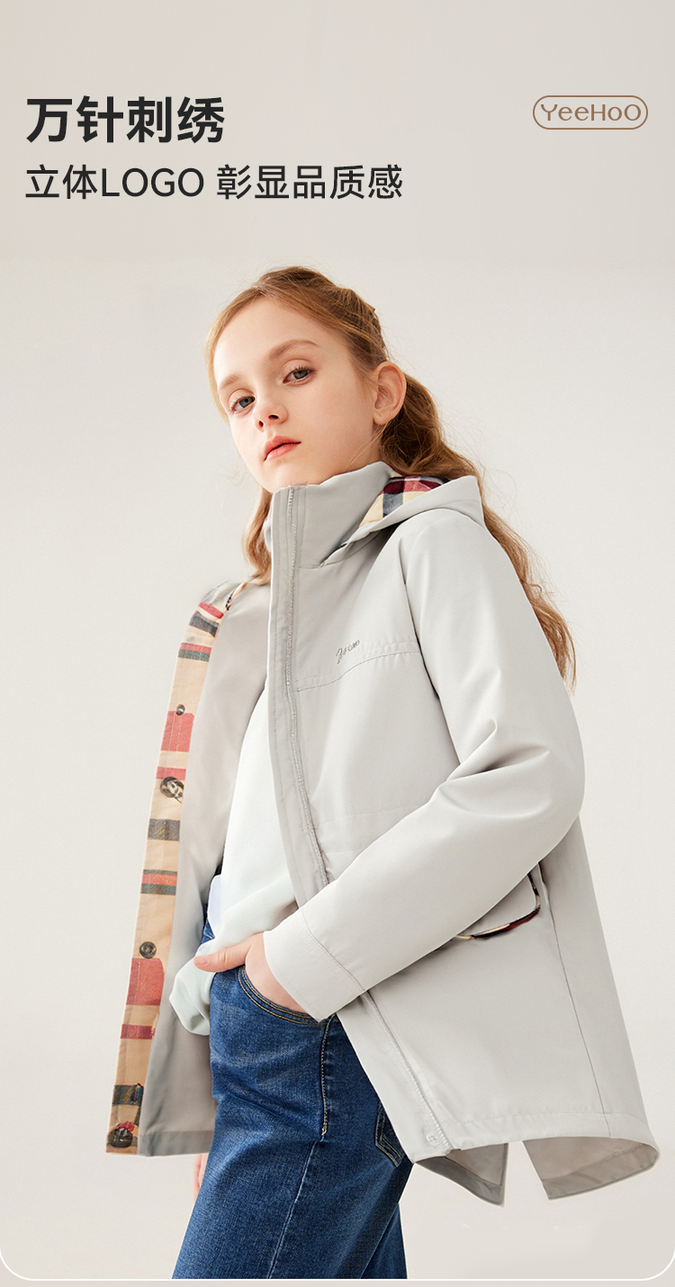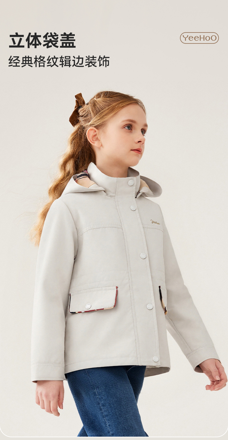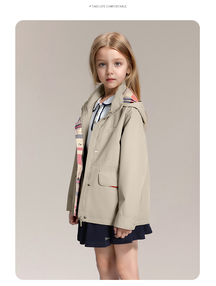 【英氏】【120-170】女童春秋收腰风衣外套