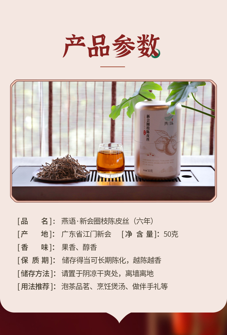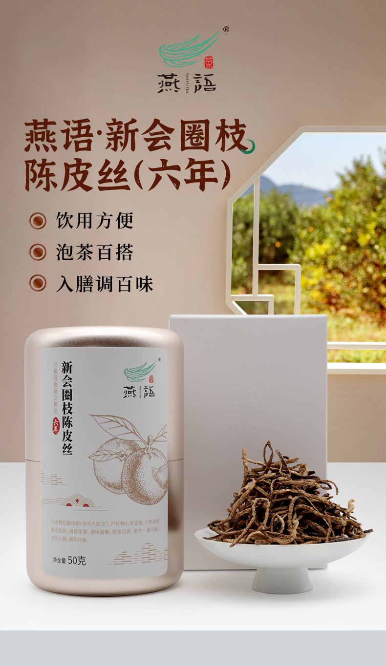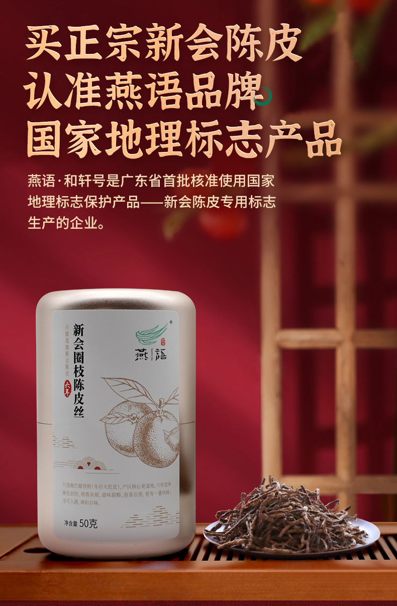 燕语六年新会圈枝陈皮丝铝罐装50g
