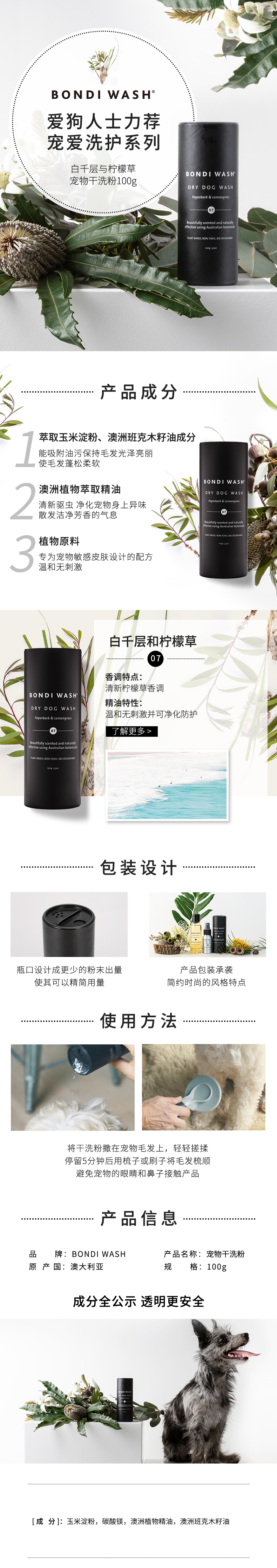 BONDI WASH 宠物干洗粉/护毛剂 宠物SPA清洁开结柔顺温和植萃澳洲进口
