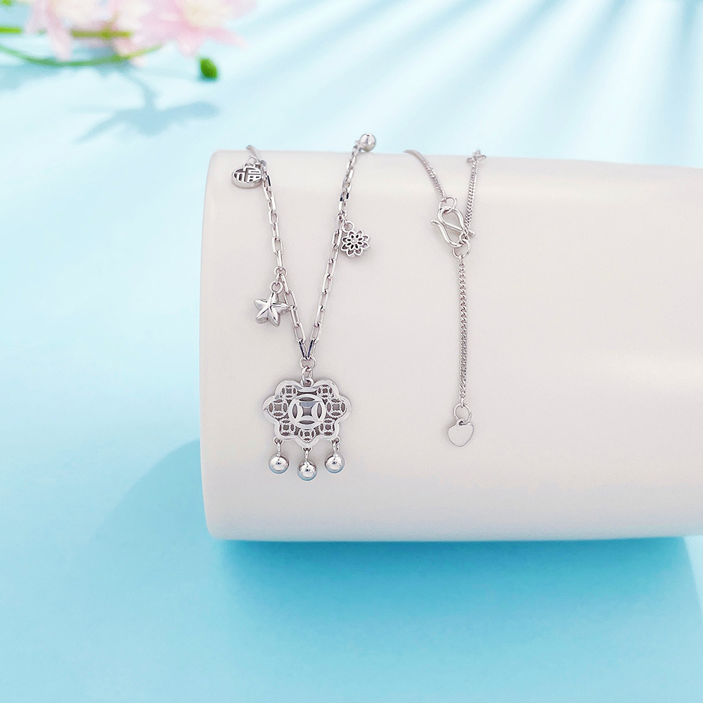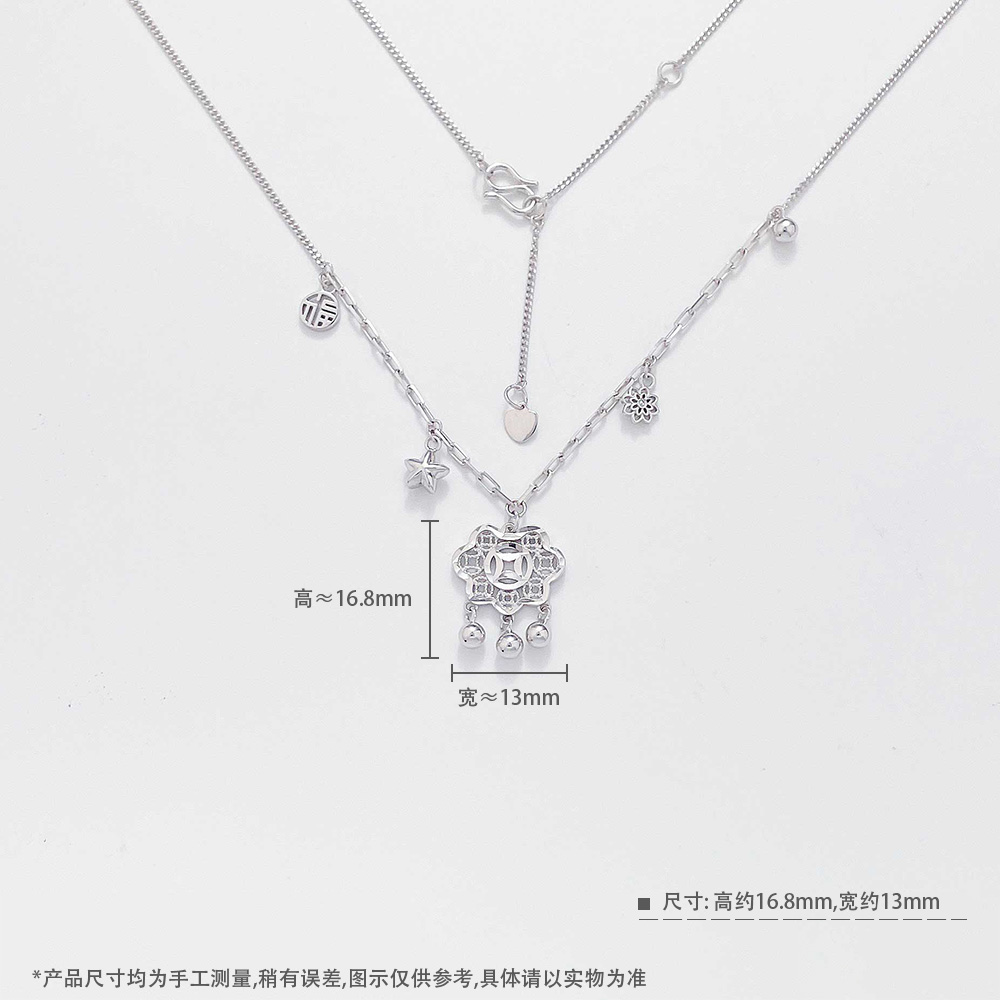 【限时8.8折】【线上铂金馆】PT950 #招财纳福 铂金镂空AB调节铃铛流苏福字星星铜钱图案锁包套链(PTTL00047)预售产品下单后不退款不退货不换货不补差价)