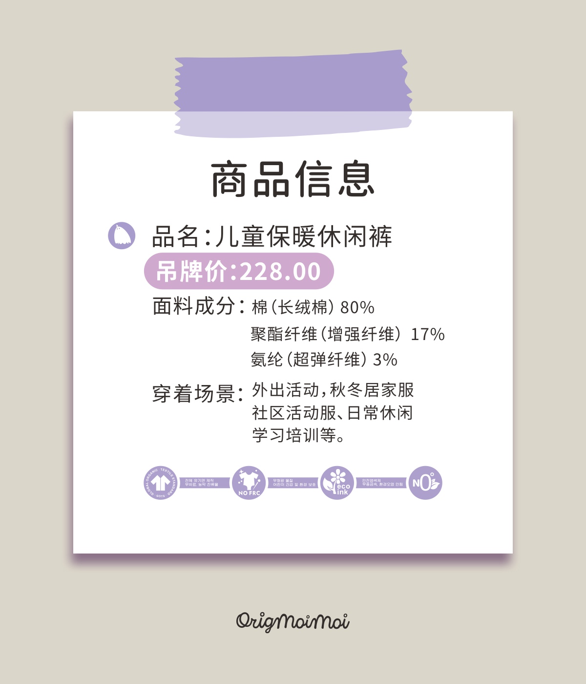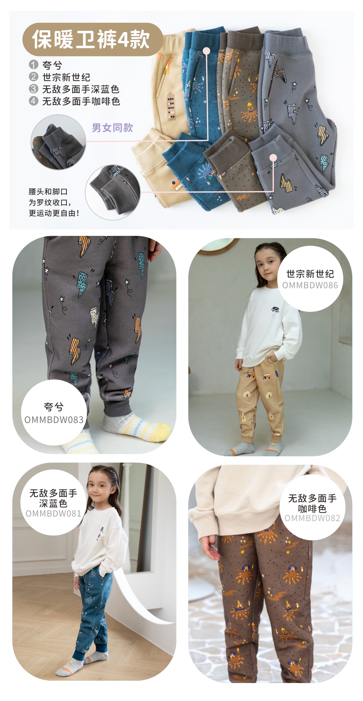 【云优选】(320克高棉起绒)moimoi儿童加厚保暖休闲裤卫裤加绒