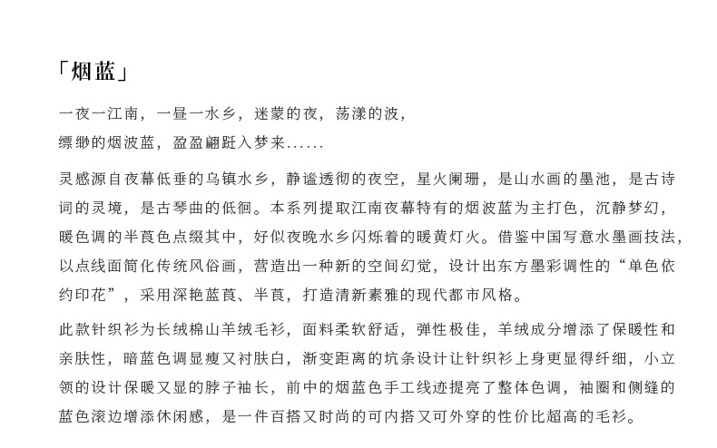 TANGY Collection / 天意精品 烟蓝系列 长绒棉羊绒线迹毛衫