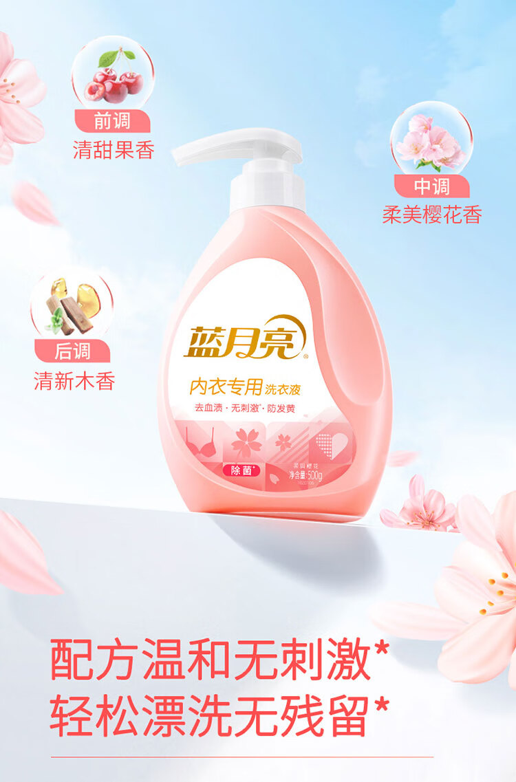 蓝月亮洗衣液_樱花香500g/瓶 男女士内裤清洗液除菌去污 去血渍防发黄泵头装_需要提前一天预约服务_YWJZ_需要提前一天预约服务_YWJZ