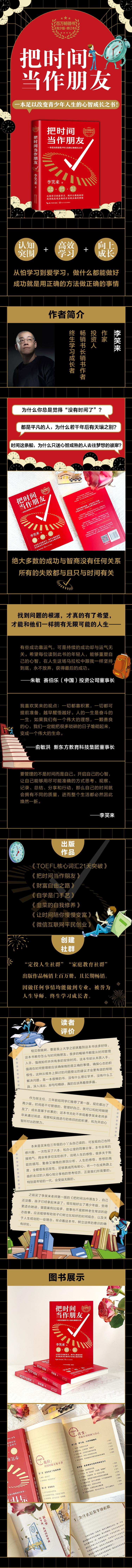 “只有奋斗的人生才称得上幸福的人生!”而奋斗,首先要从青少年时期开始树立正确的价值观。《把时间当作朋友》(青少版)就是一本关于青少年重新认识时间、自我成长的书。 这是一本足以改变青少年人生的经典之作,本书从心智成长的角度来谈自我管理,指出正确的时间观念是成长和成功的关键所在。书中用大量生动的案例、幽默的语言讲述方法和道理,青少年只有在接受现实、认清自我的基础上,开启自己的心智、提高思考能力,养成好的活和学习习惯,才能学会用正确的方法做正确的事情;对青少年来说,成长比成功更重要,因为成长才是人人都可以做到的;时间不可管理,需要管理的应该是自己。