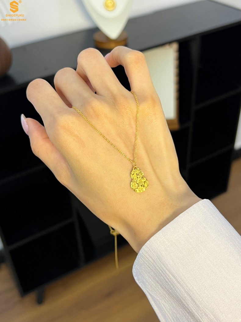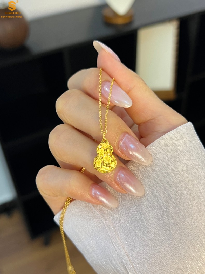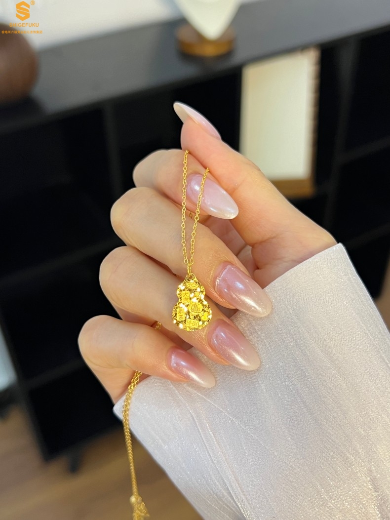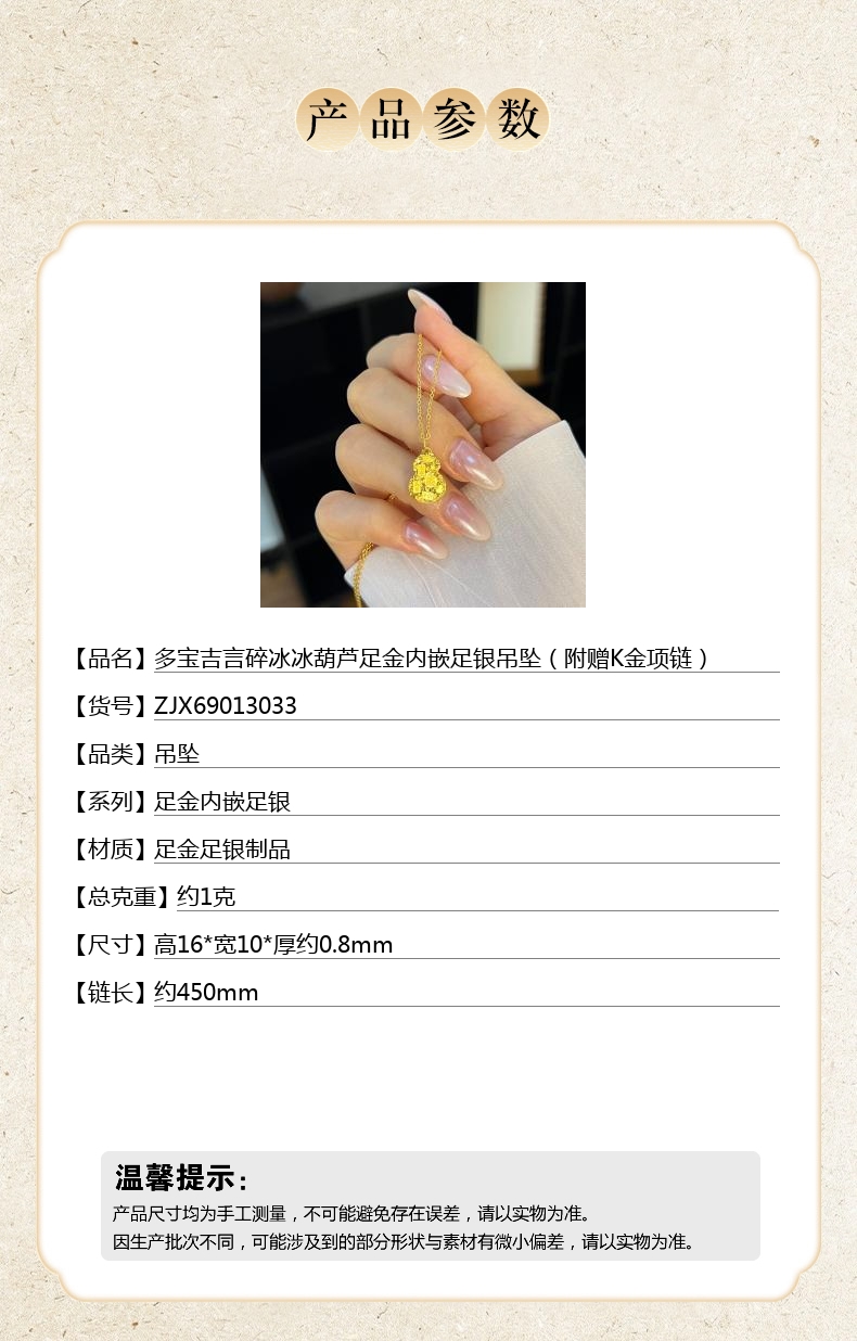 【品名】多宝吉言碎冰冰葫芦足金内嵌足银吊坠(附赠K金项链)