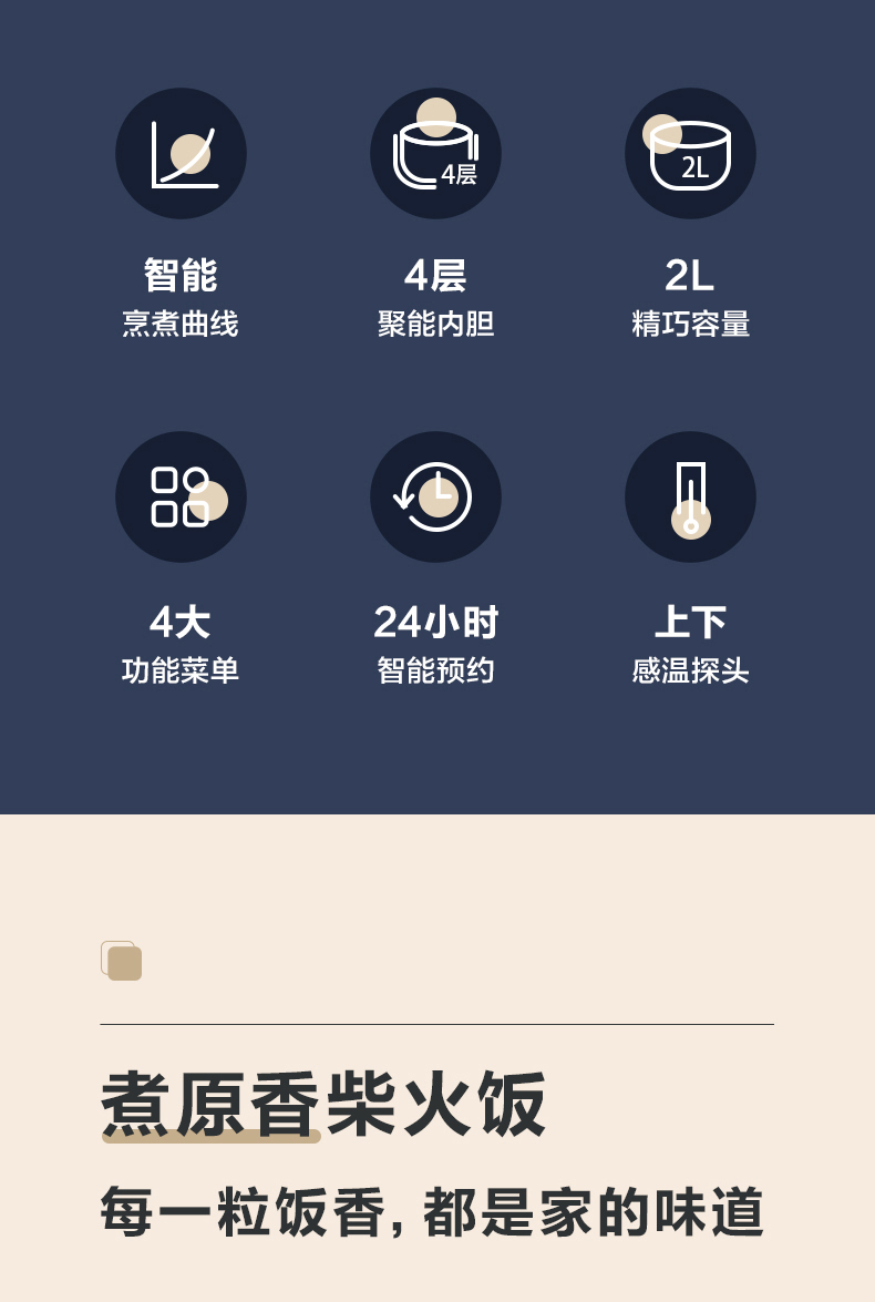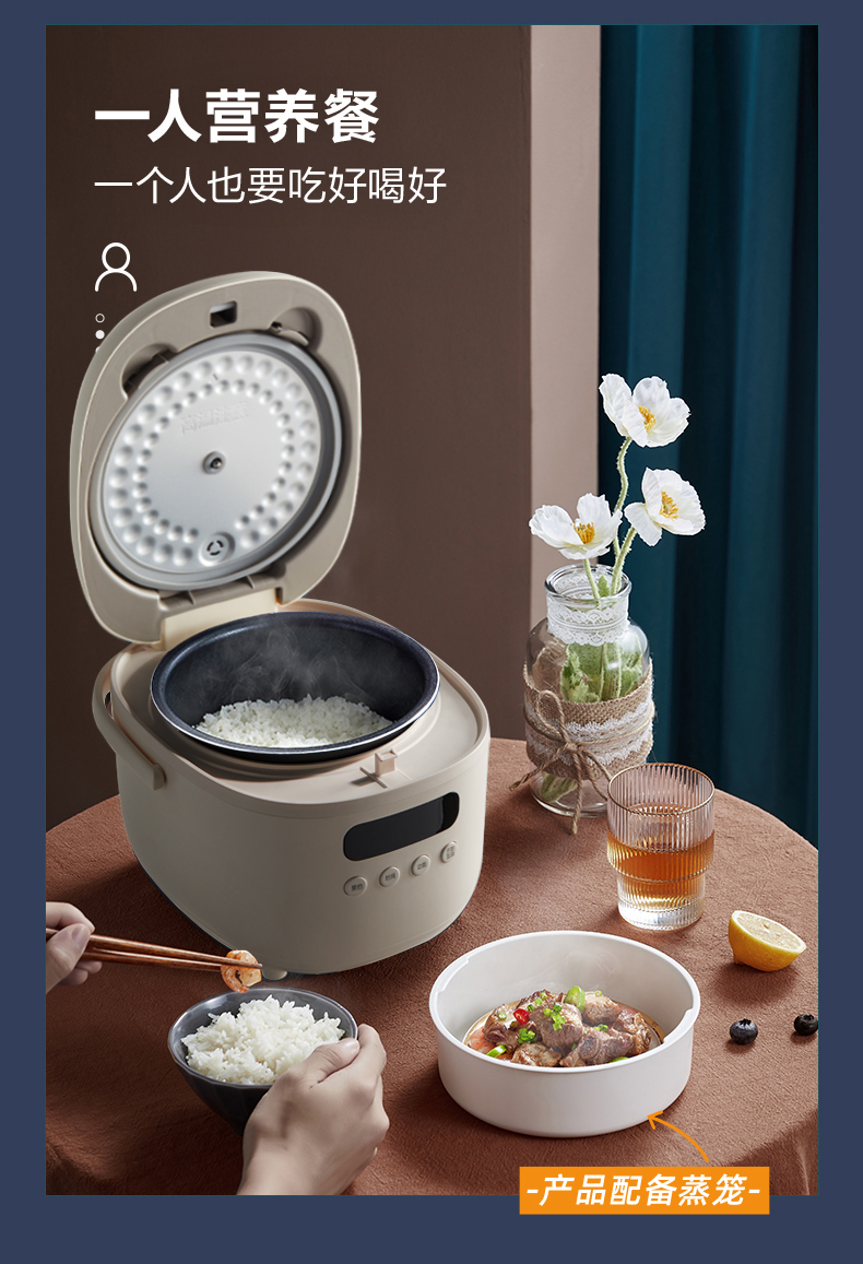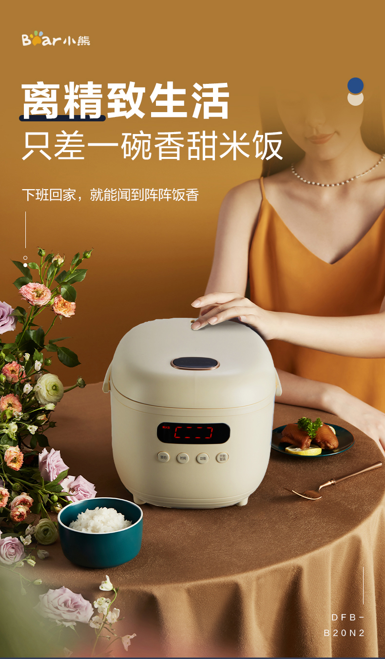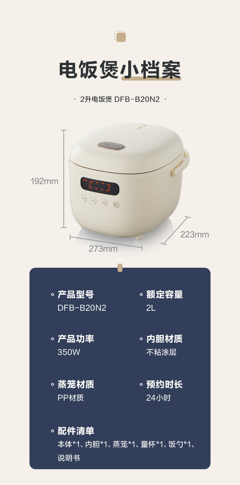 【小程序】小熊电饭煲 DFB-B20N2 米白色 带量杯+饭勺+蒸茏