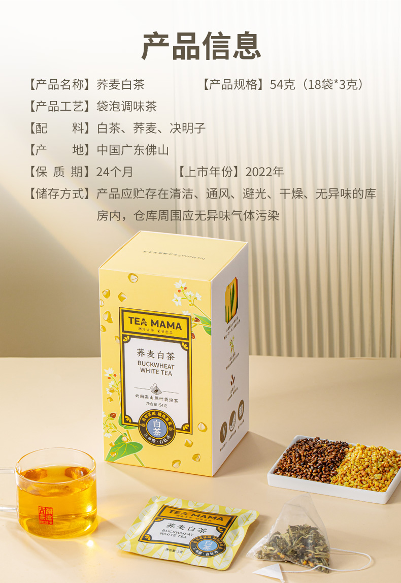 澜沧古茶茶妈妈荞麦白茶袋泡茶1盒