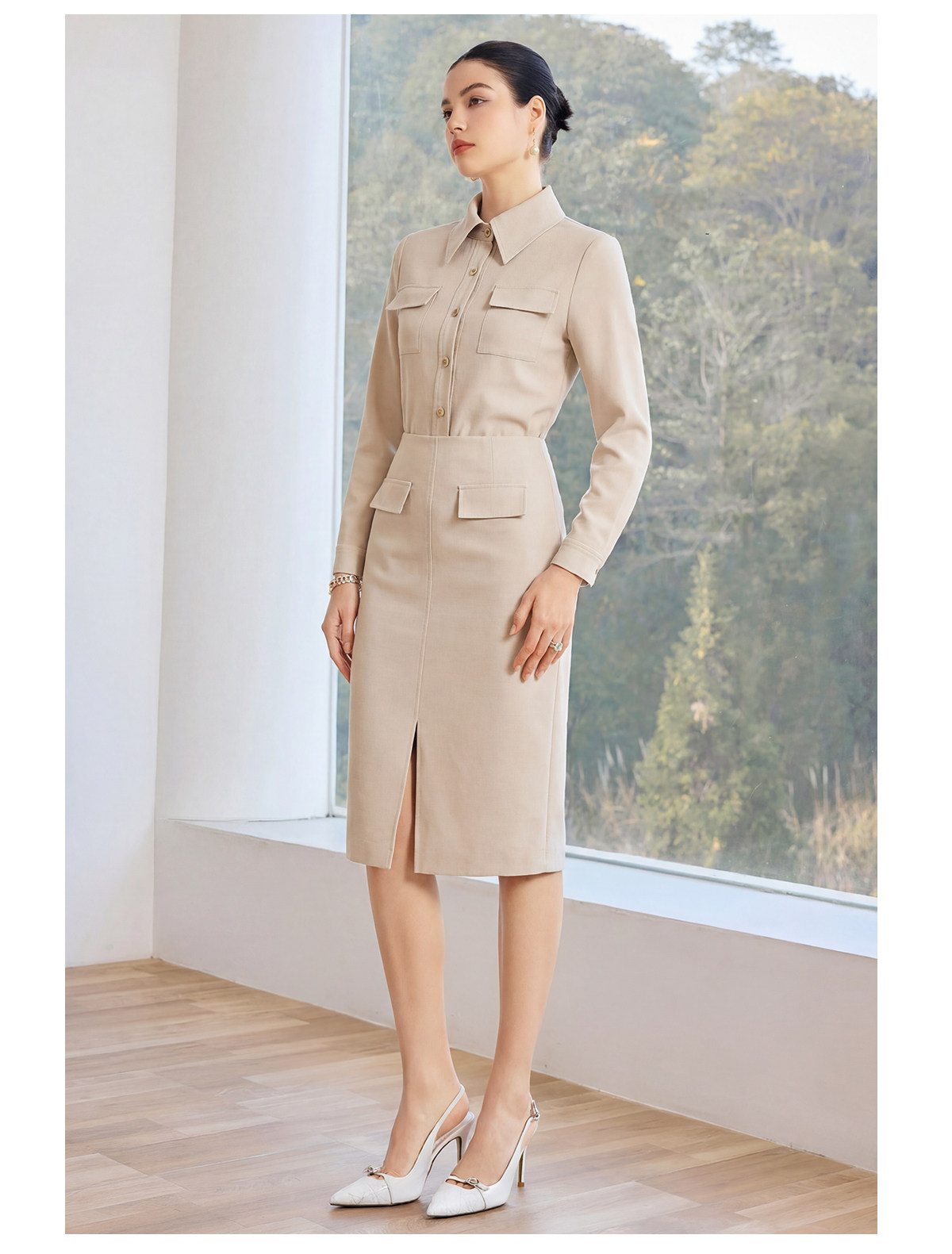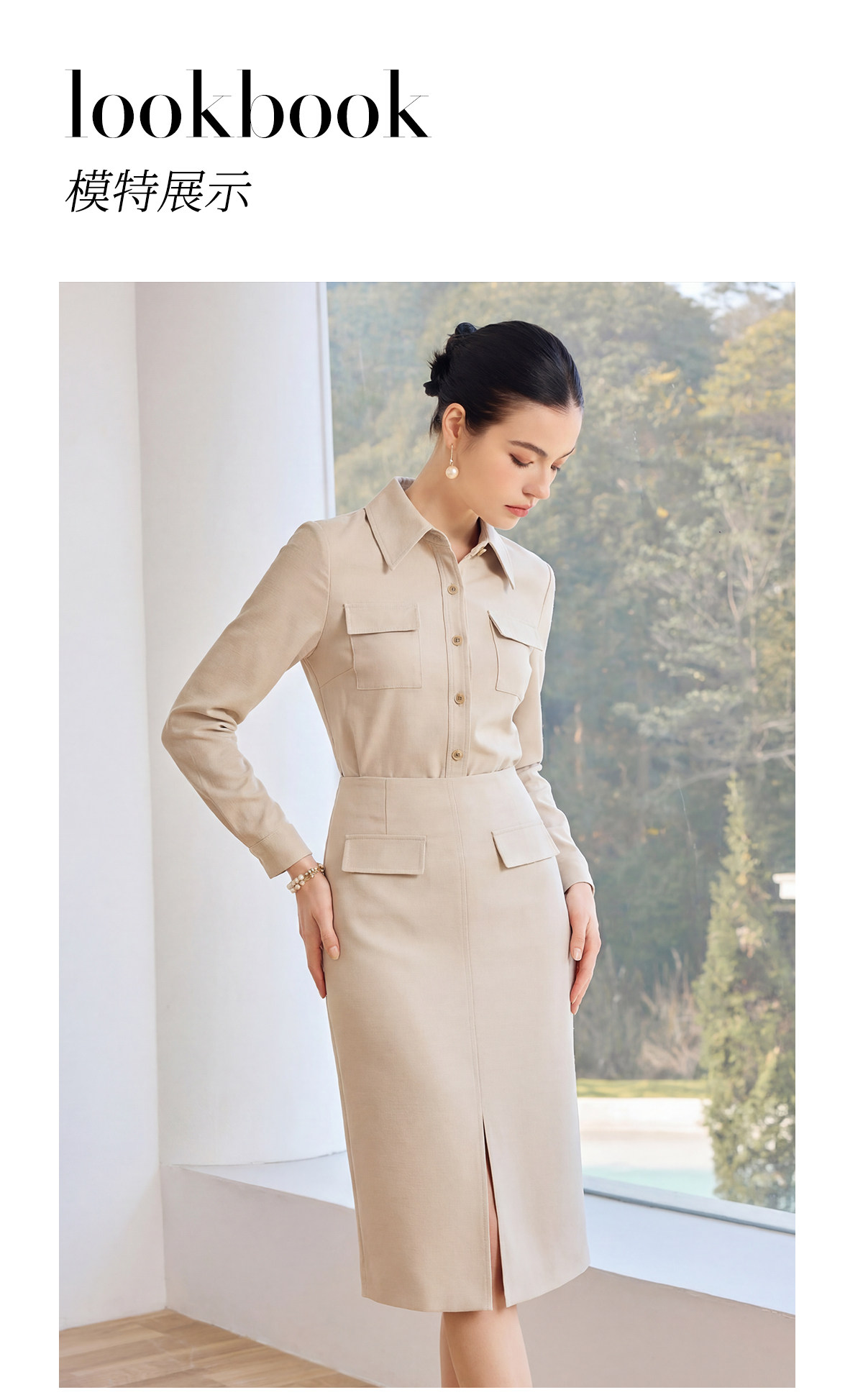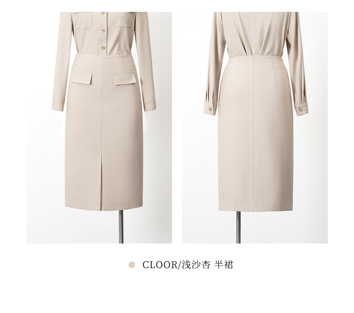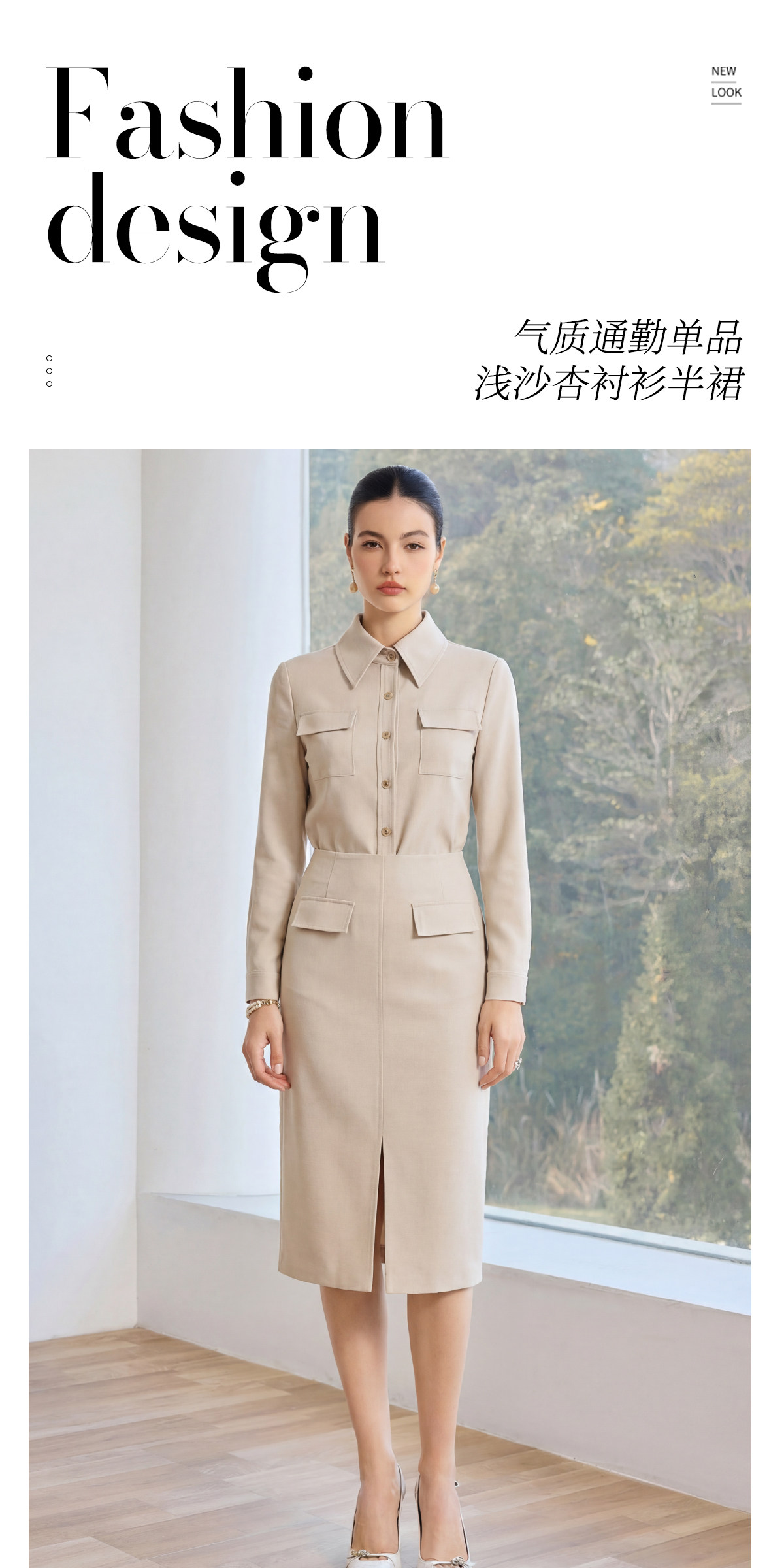 IWY/轻熟通勤风杏色衬衫半裙两件套收腰时尚通勤前开叉设计感小众套裙25BS938