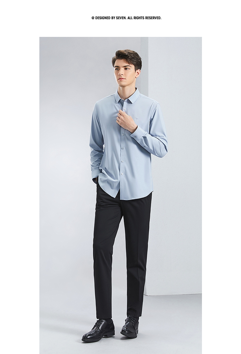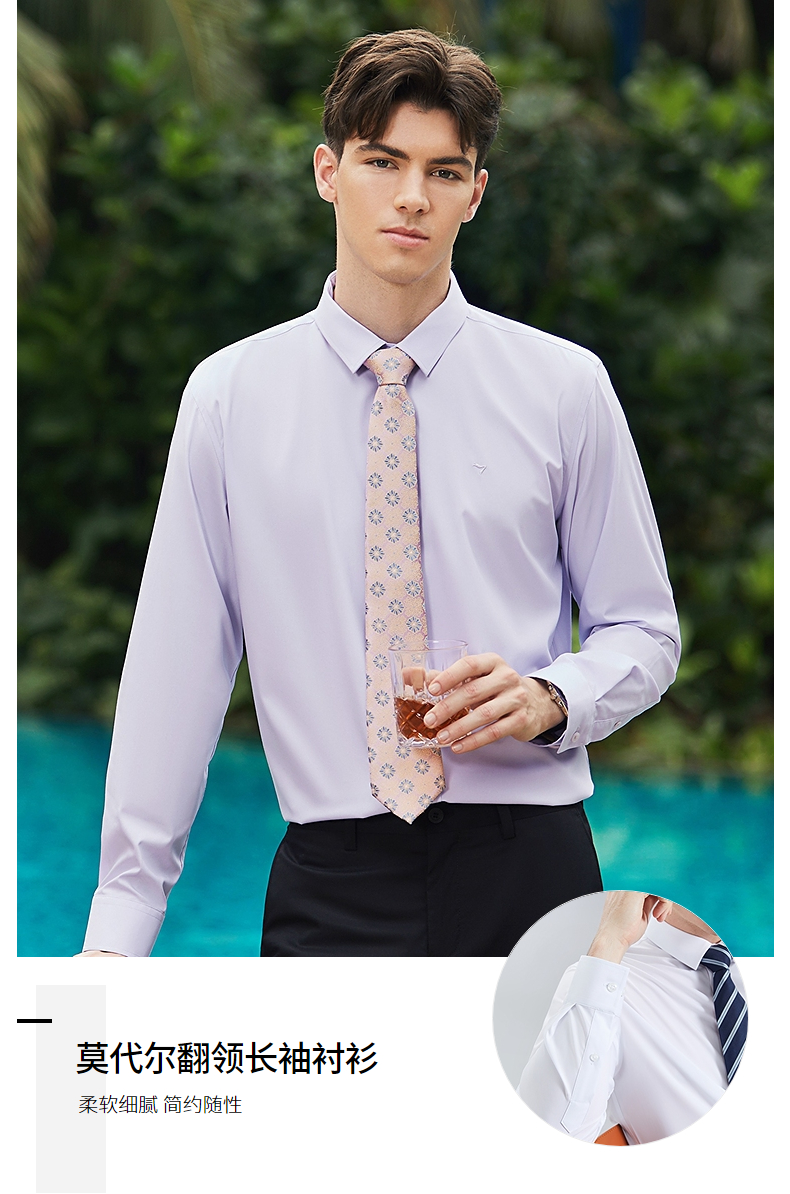 【5A抗菌2A防螨】柒牌长袖衬衫男春秋季商务正装含莫代尔翻领衬衣126A71040
