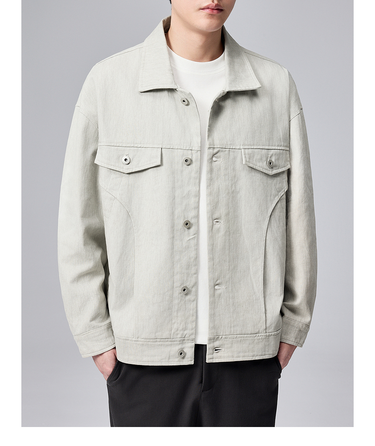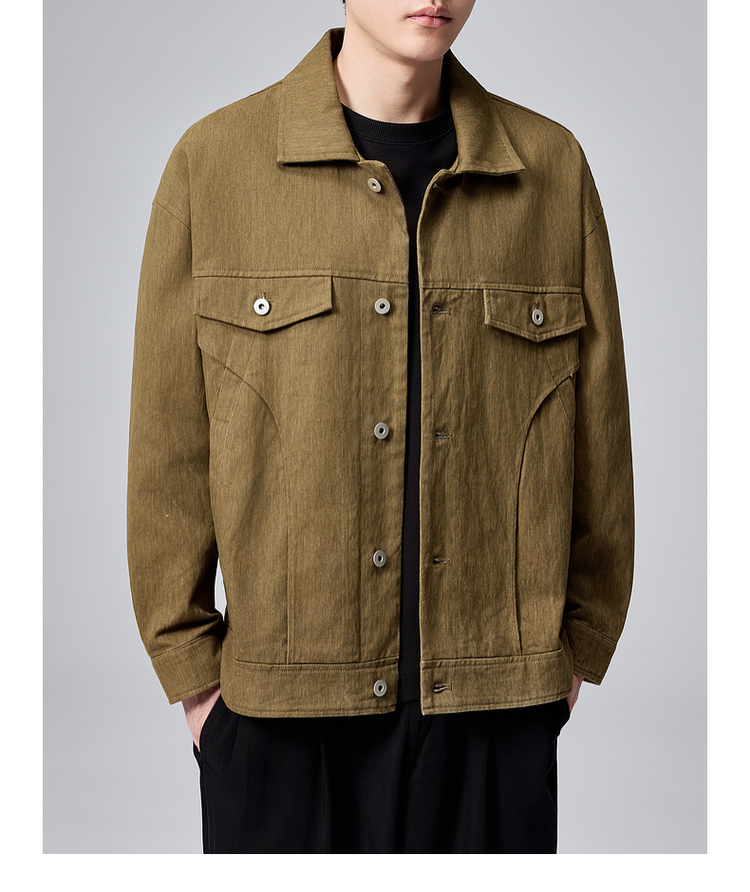 墨麦客男装粗斜纹牛仔夹克男士2024秋季新款休闲多口袋翻领外套男