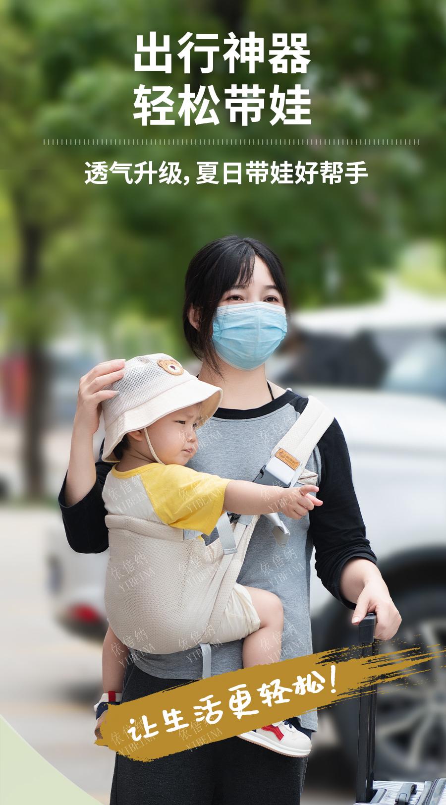 依倍纳同款宝宝背带外出抱娃神器解放双手婴儿坐凳腰凳多功能四季通用