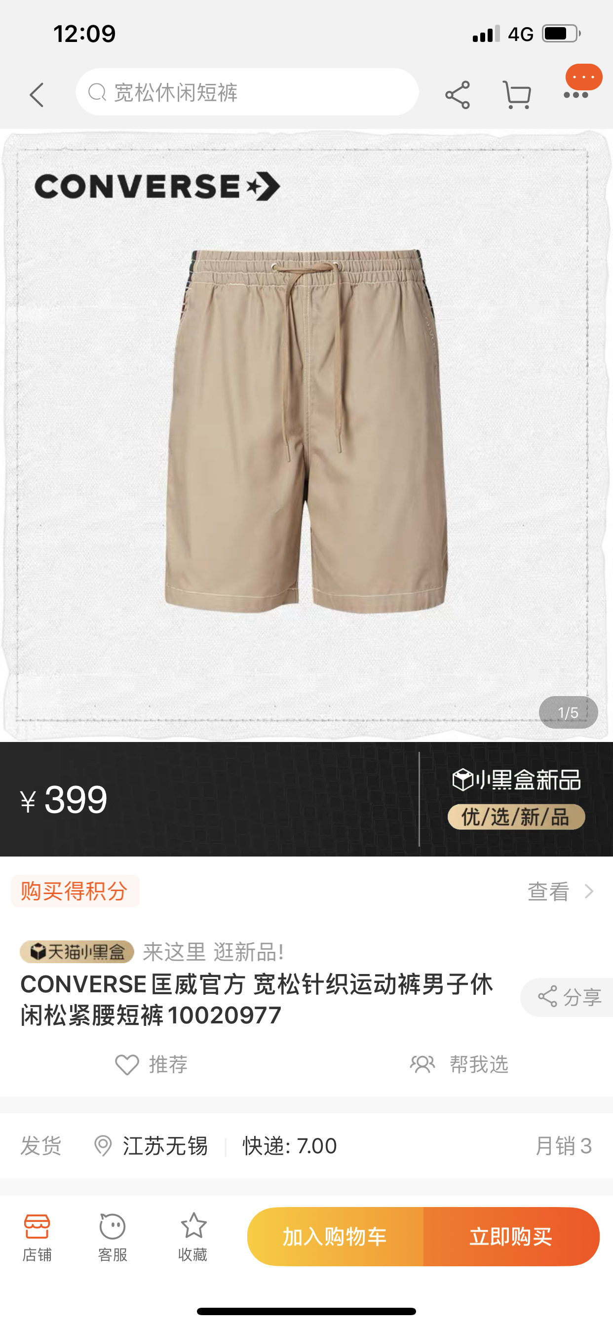 匡威converse宽松针织运动休闲短裤旗舰店399元在售!正品保真!