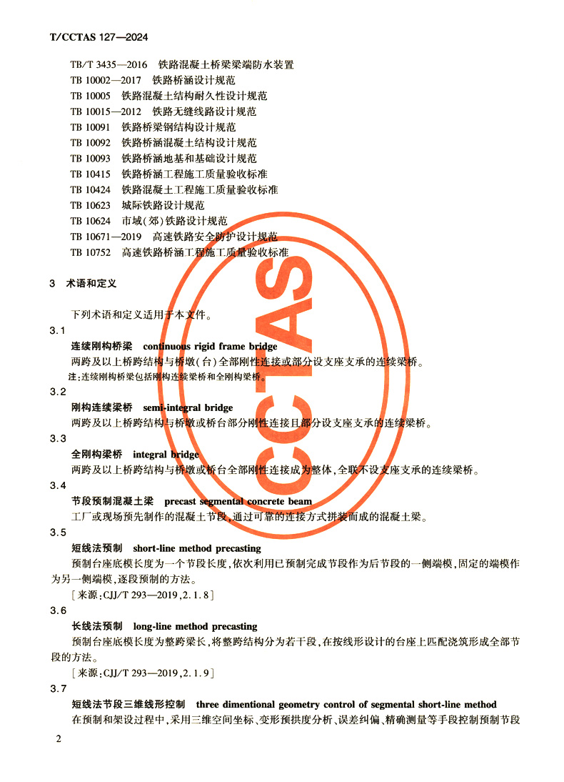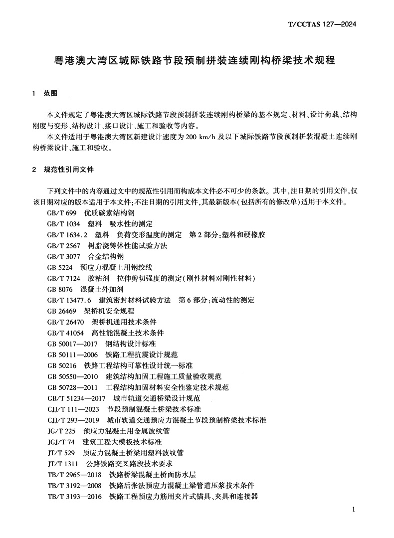 书名:粤港澳大湾区城际铁路节段预制拼装连续刚构桥梁技术规程T/CCTAS 127—2024