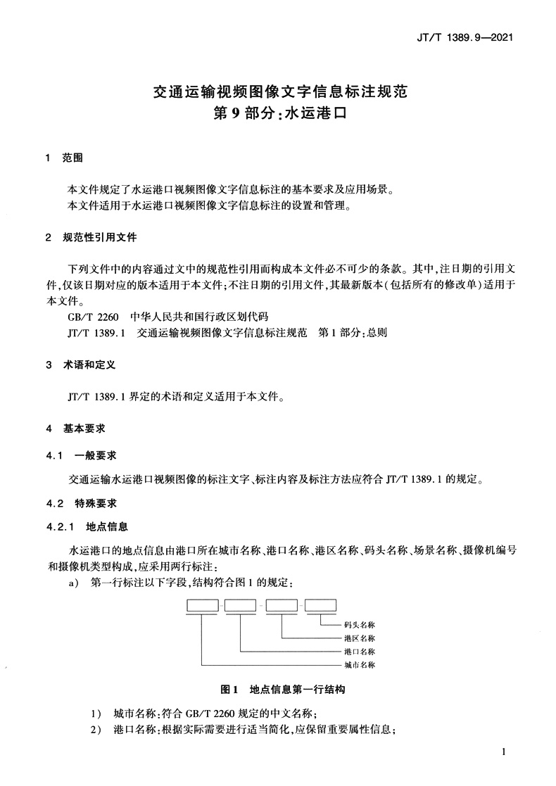 交通运输视频图像文字信息标注规范 第9部分:水运港口(1389.9—2021)