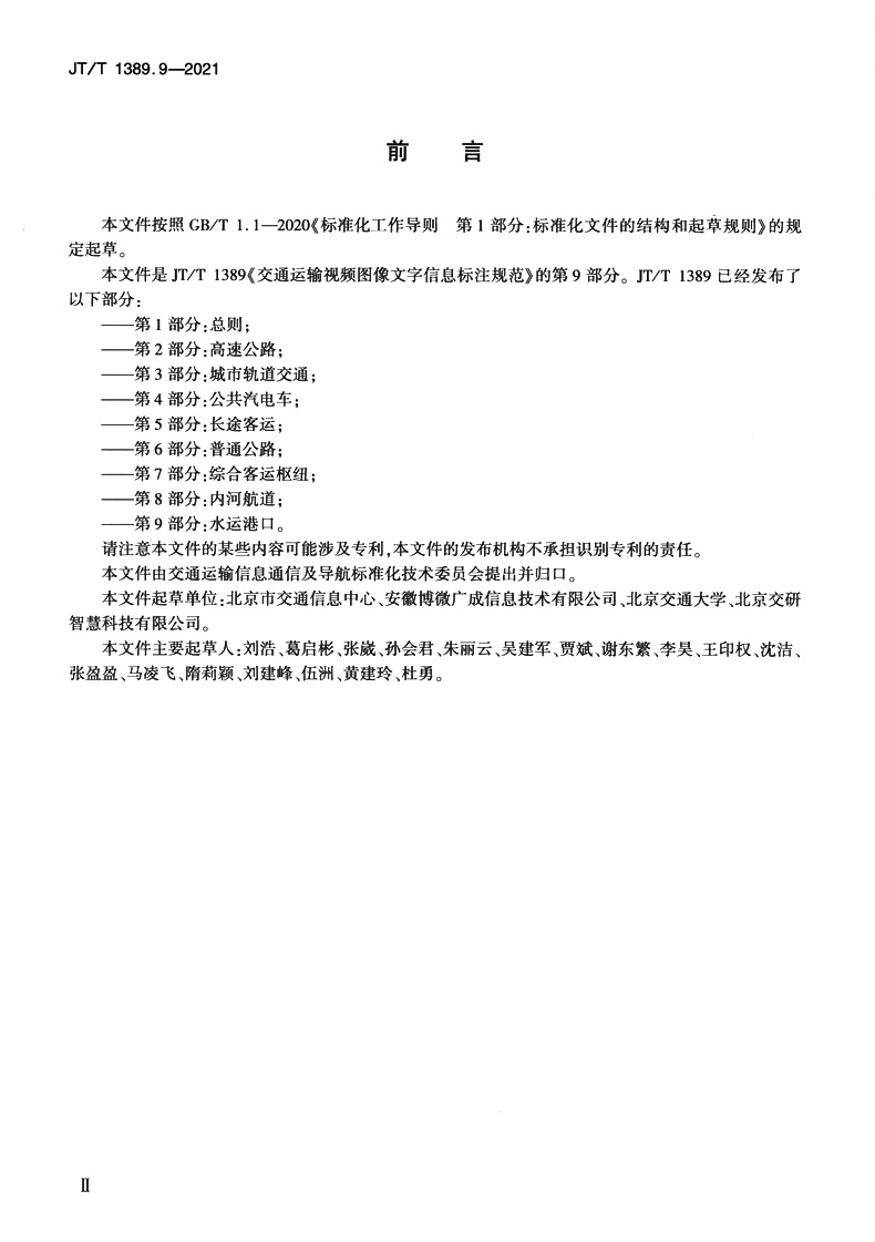 书名:交通运输视频图像文字信息标注规范 第9部分:水运港口(1389.9—2021)