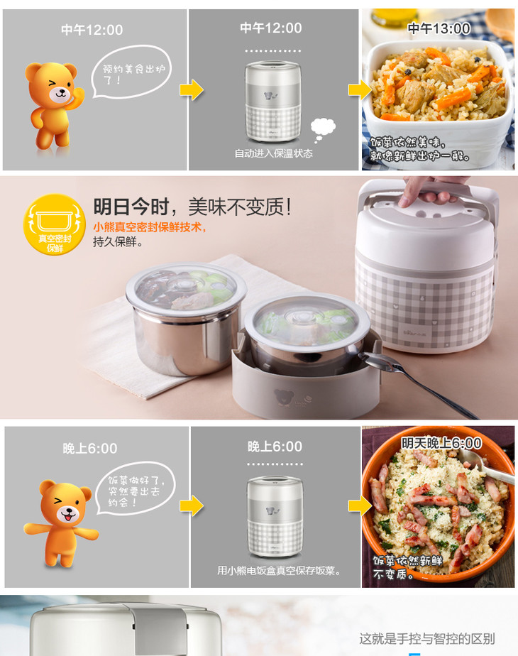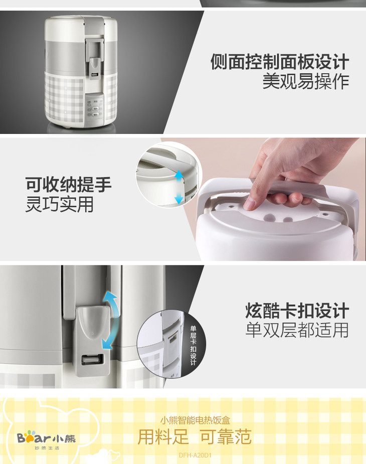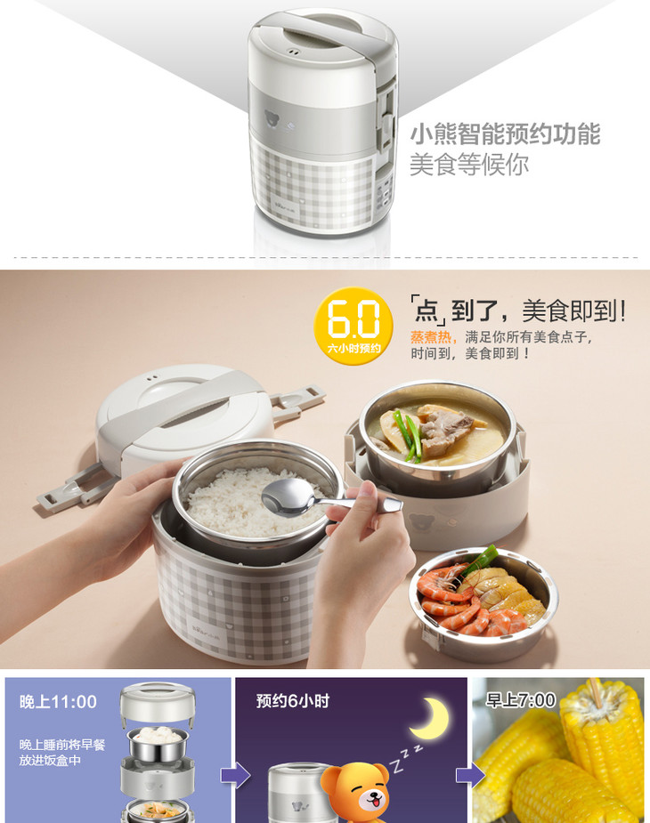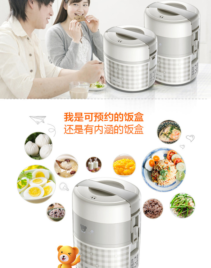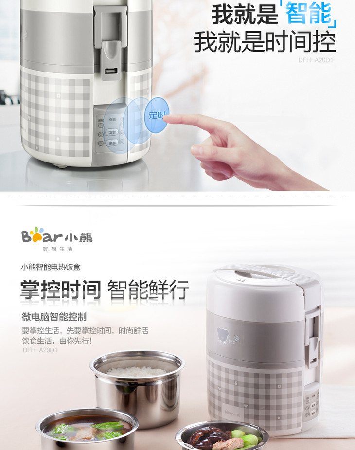 小熊(Bear)DFH-A20D1 智能双层电热饭盒加热饭盒 预约定时真空保鲜保温 2升