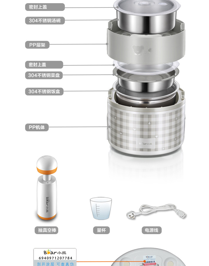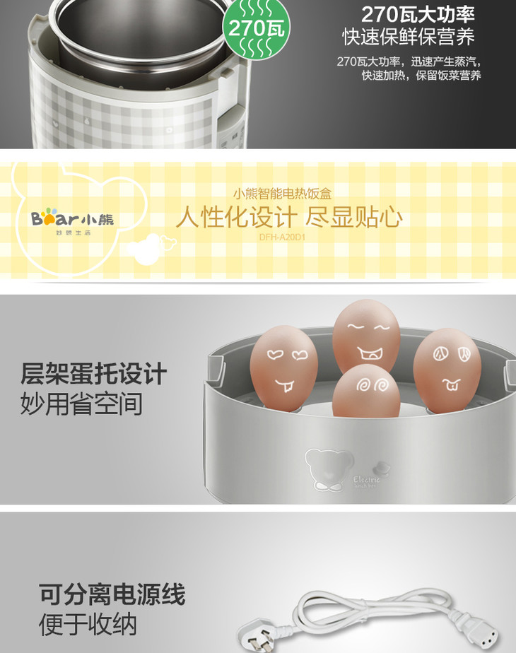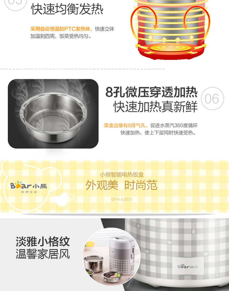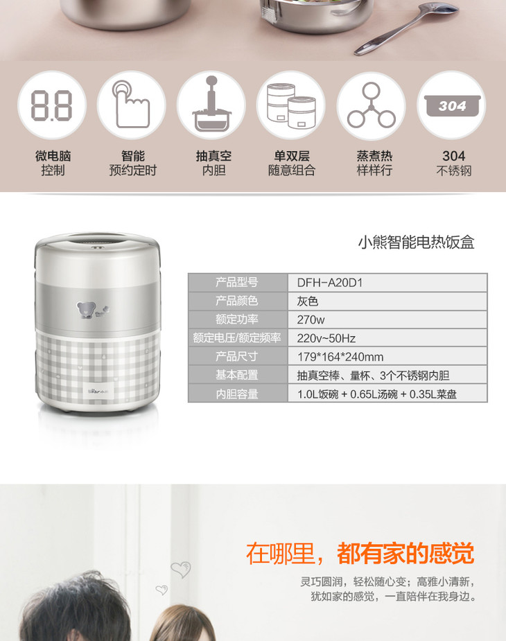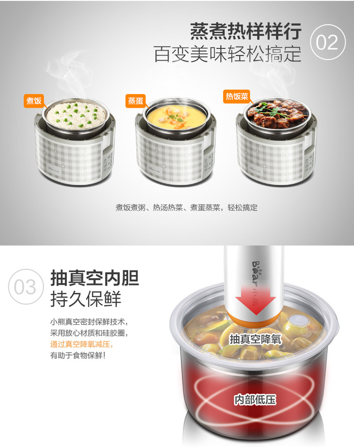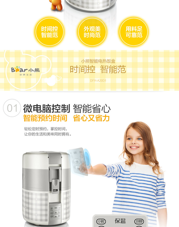 小熊(Bear)DFH-A20D1 智能双层电热饭盒加热饭盒 预约定时真空保鲜保温 2升