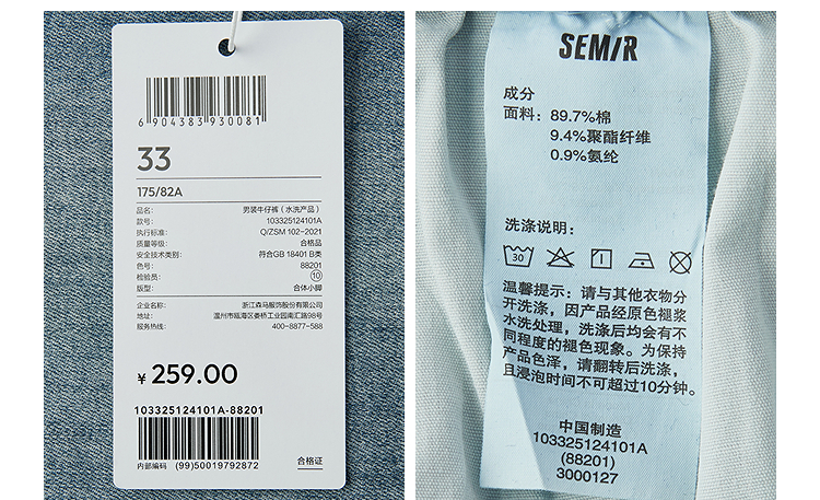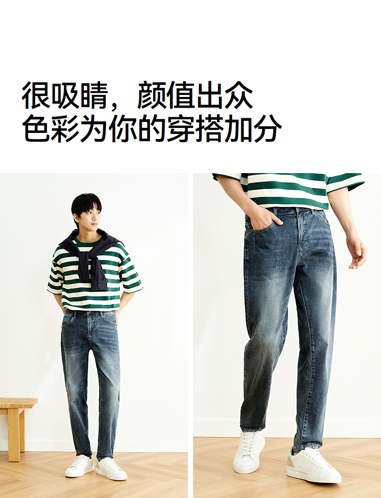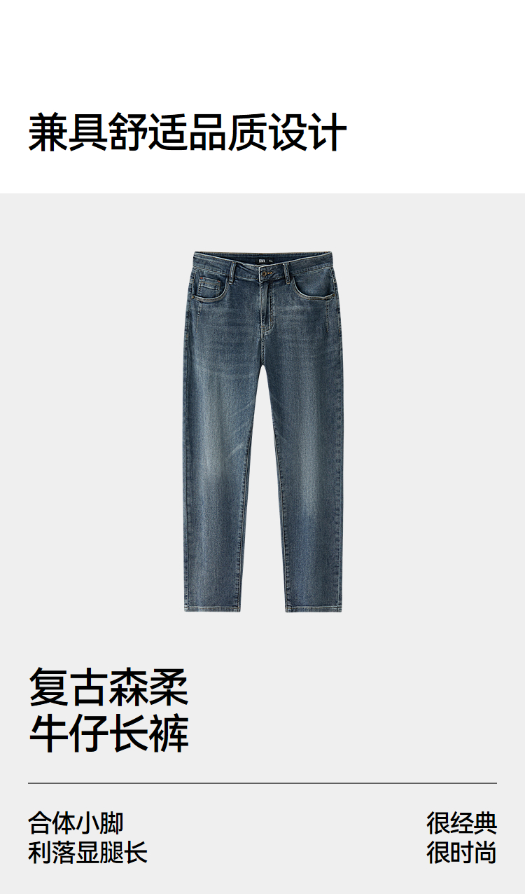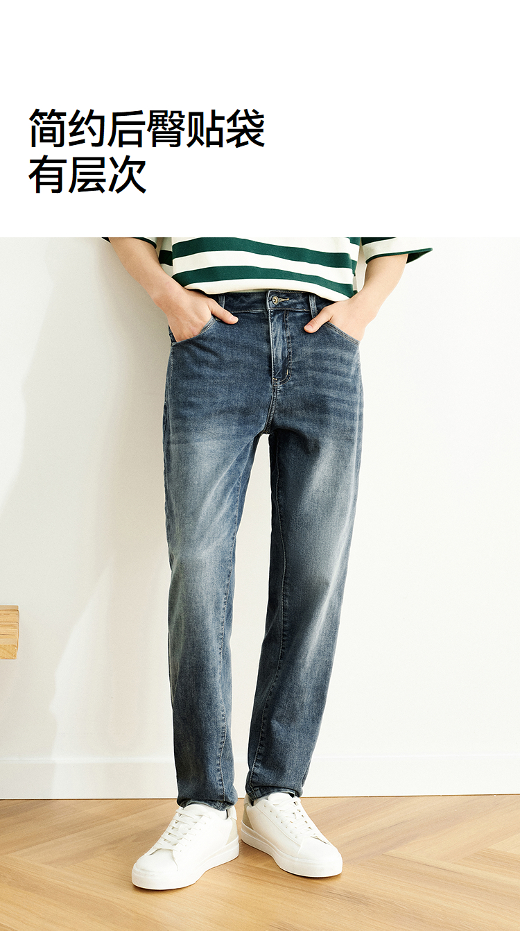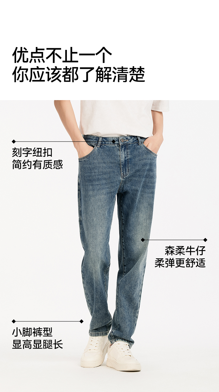 森柔|森马牛仔裤男夏季复古水洗小脚裤舒适弹力棉质时尚长裤百搭
