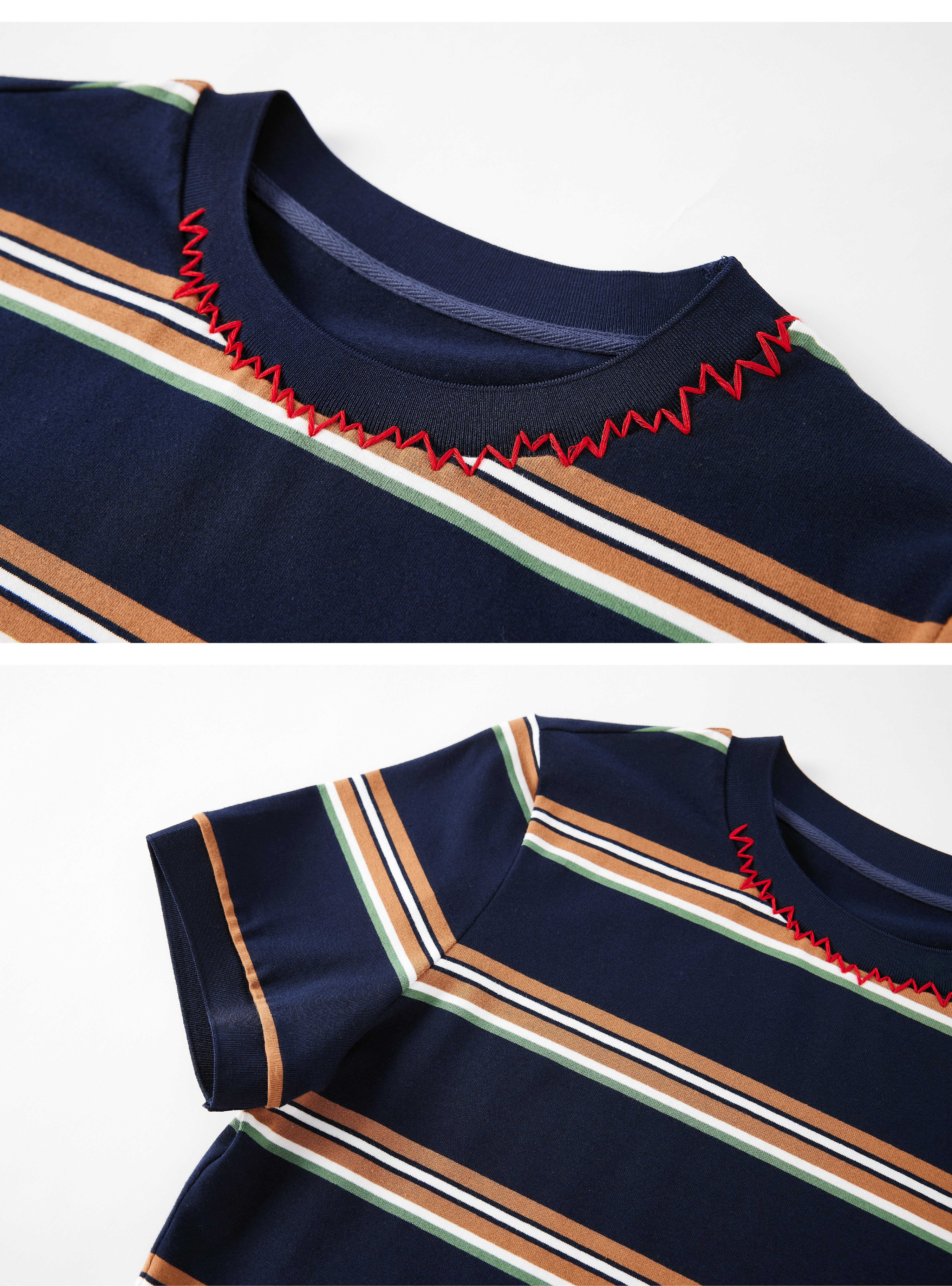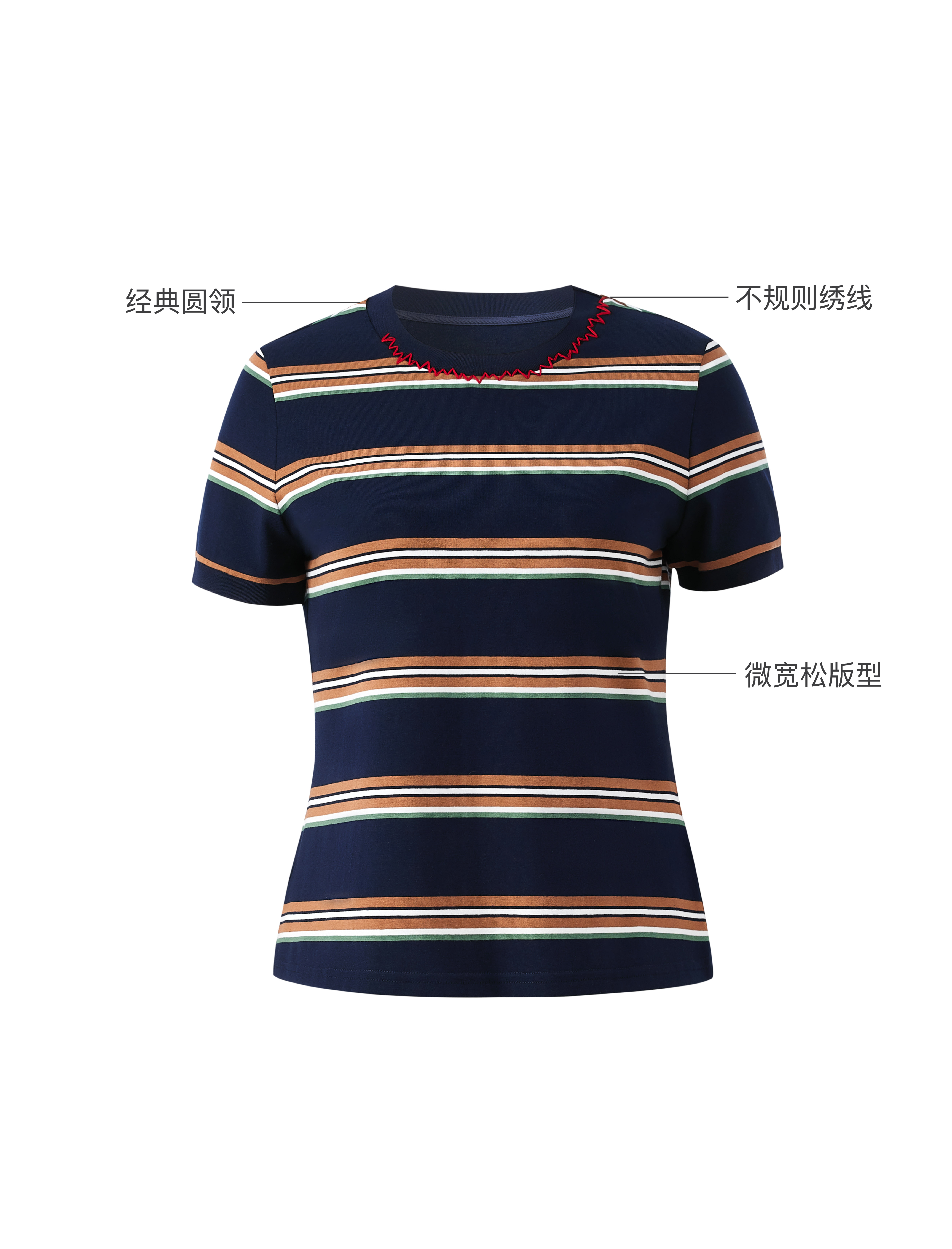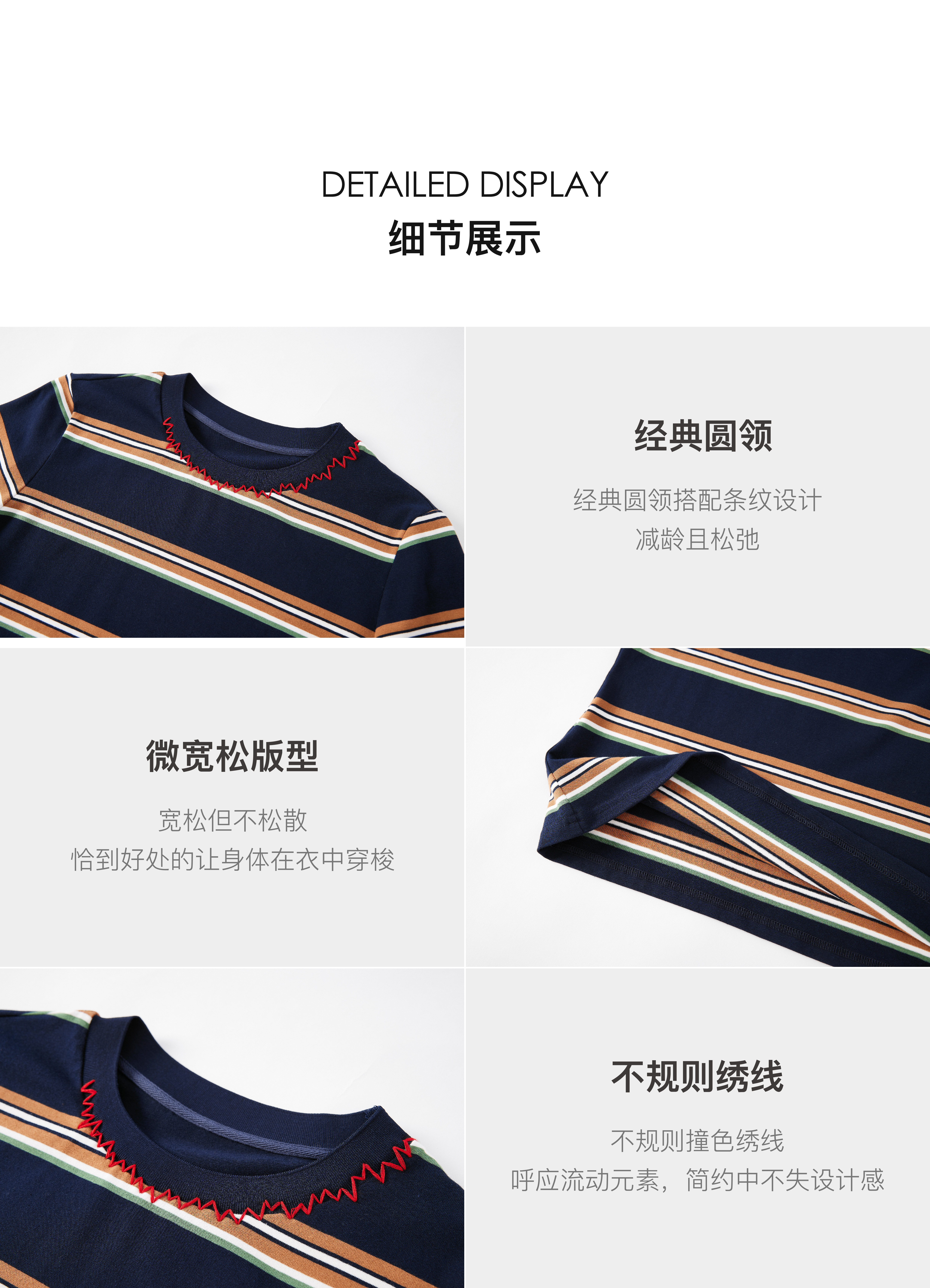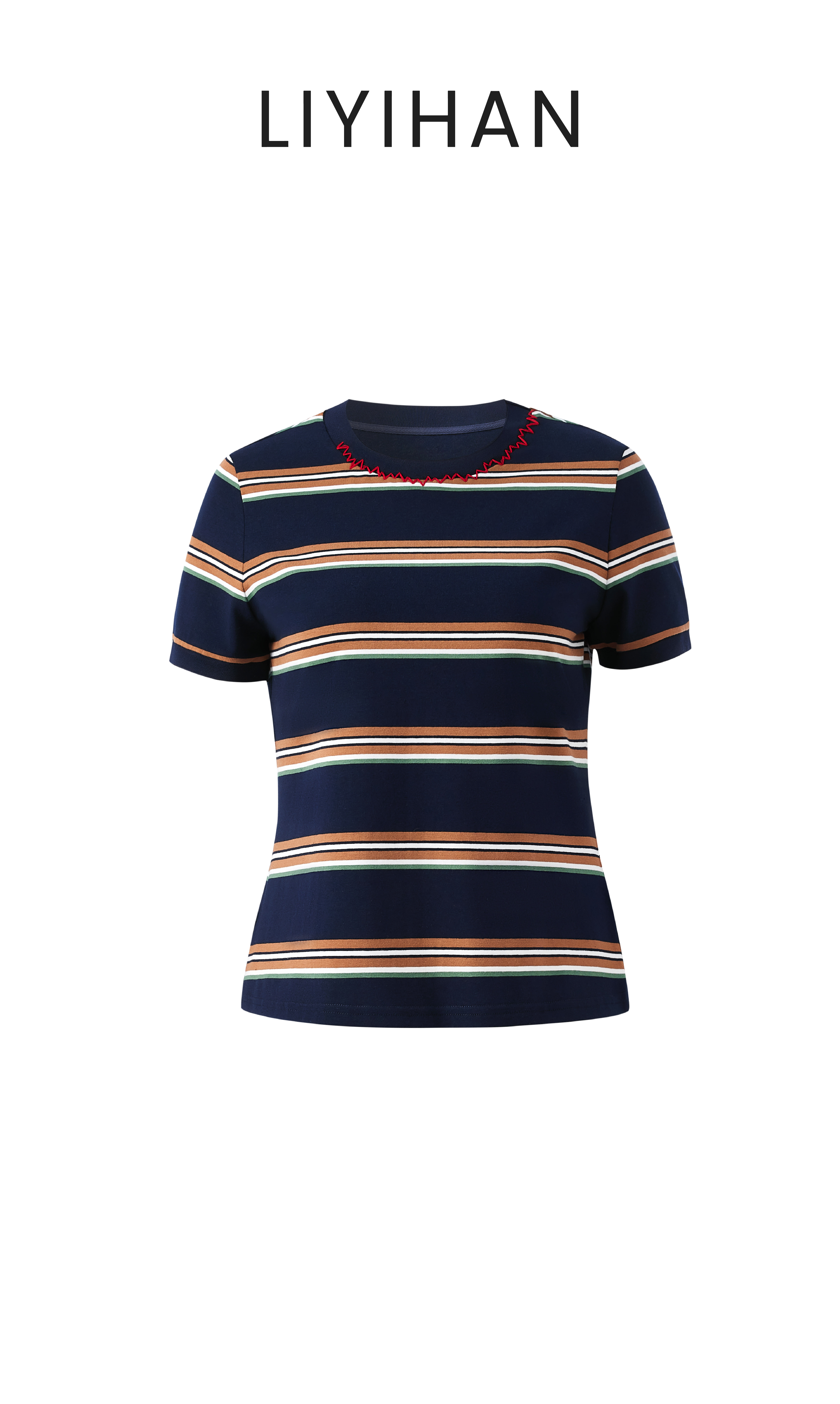 LIYIHAN序章 | 25夏棉条纹手工缝线T恤短款圆领宽松百搭短袖舒适