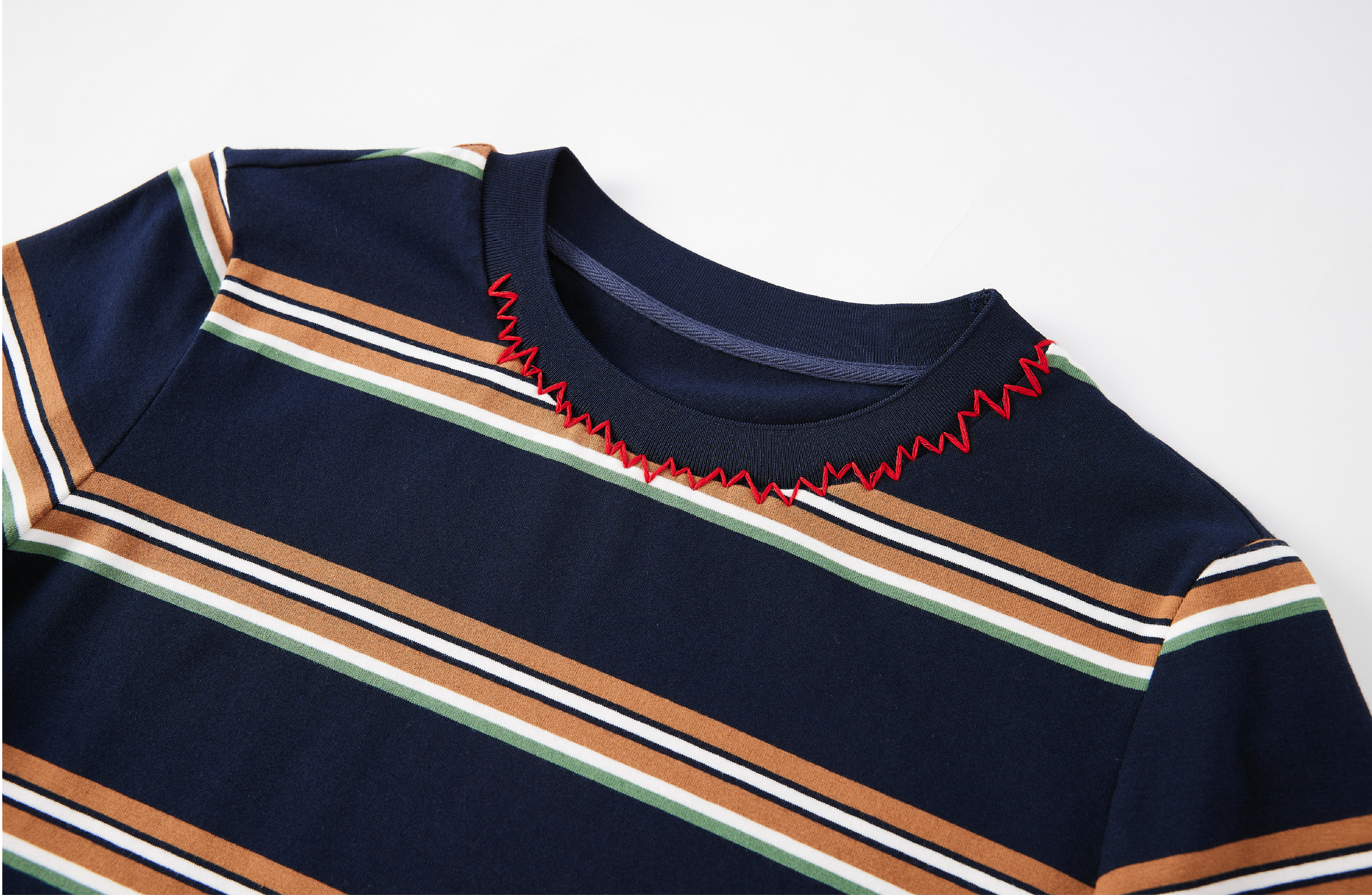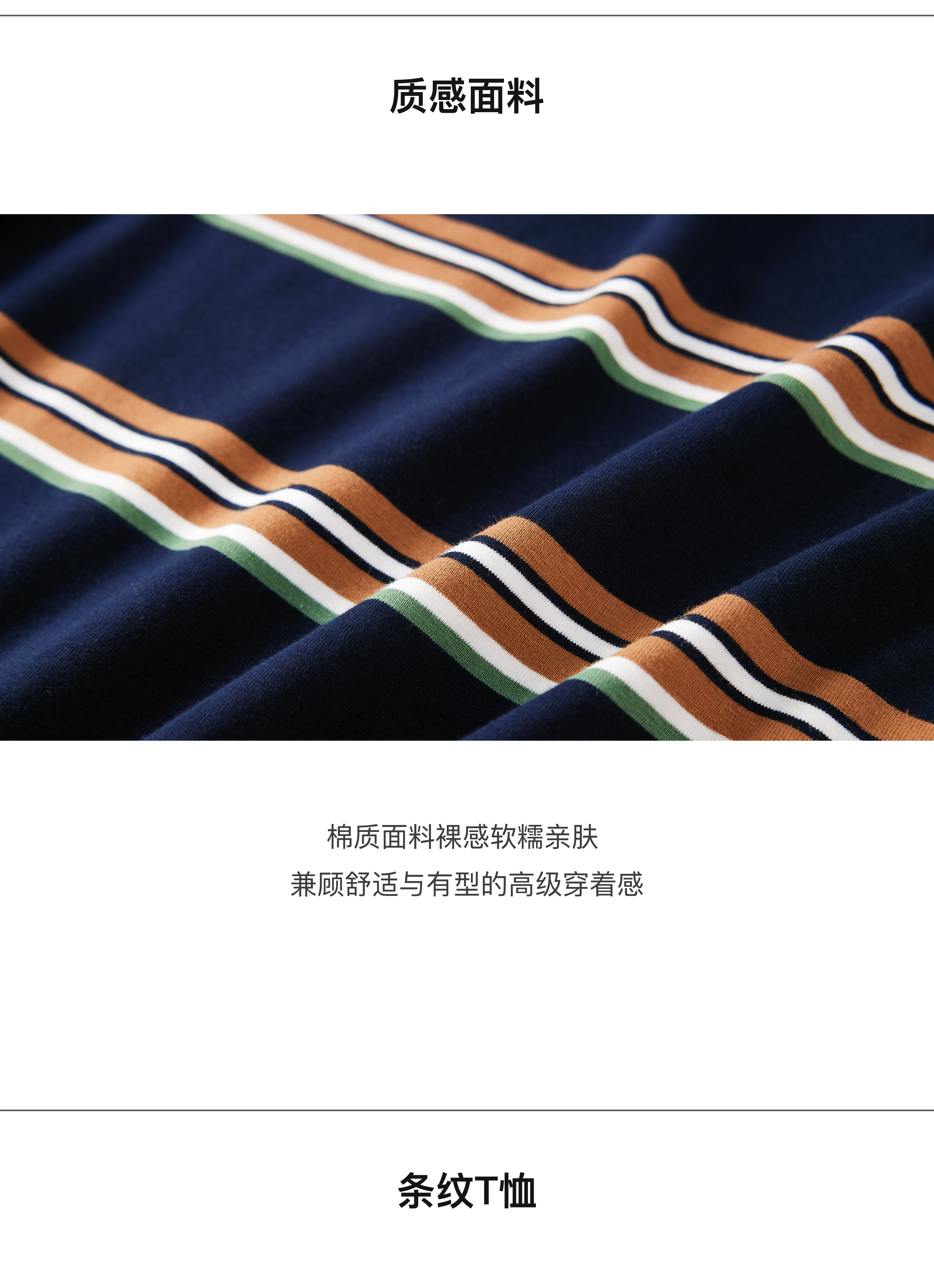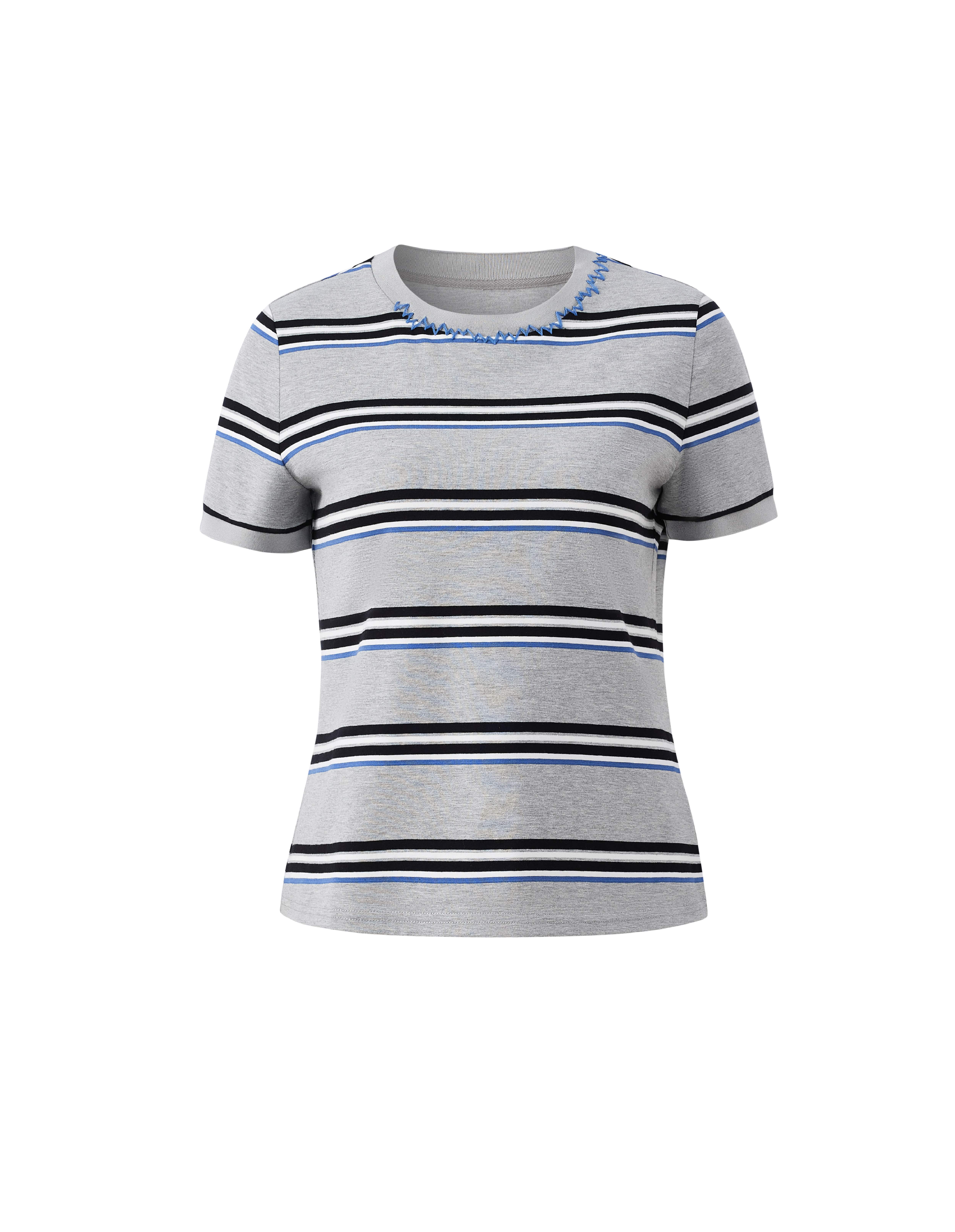 LIYIHAN序章 | 25夏棉条纹手工缝线T恤短款圆领宽松百搭短袖舒适