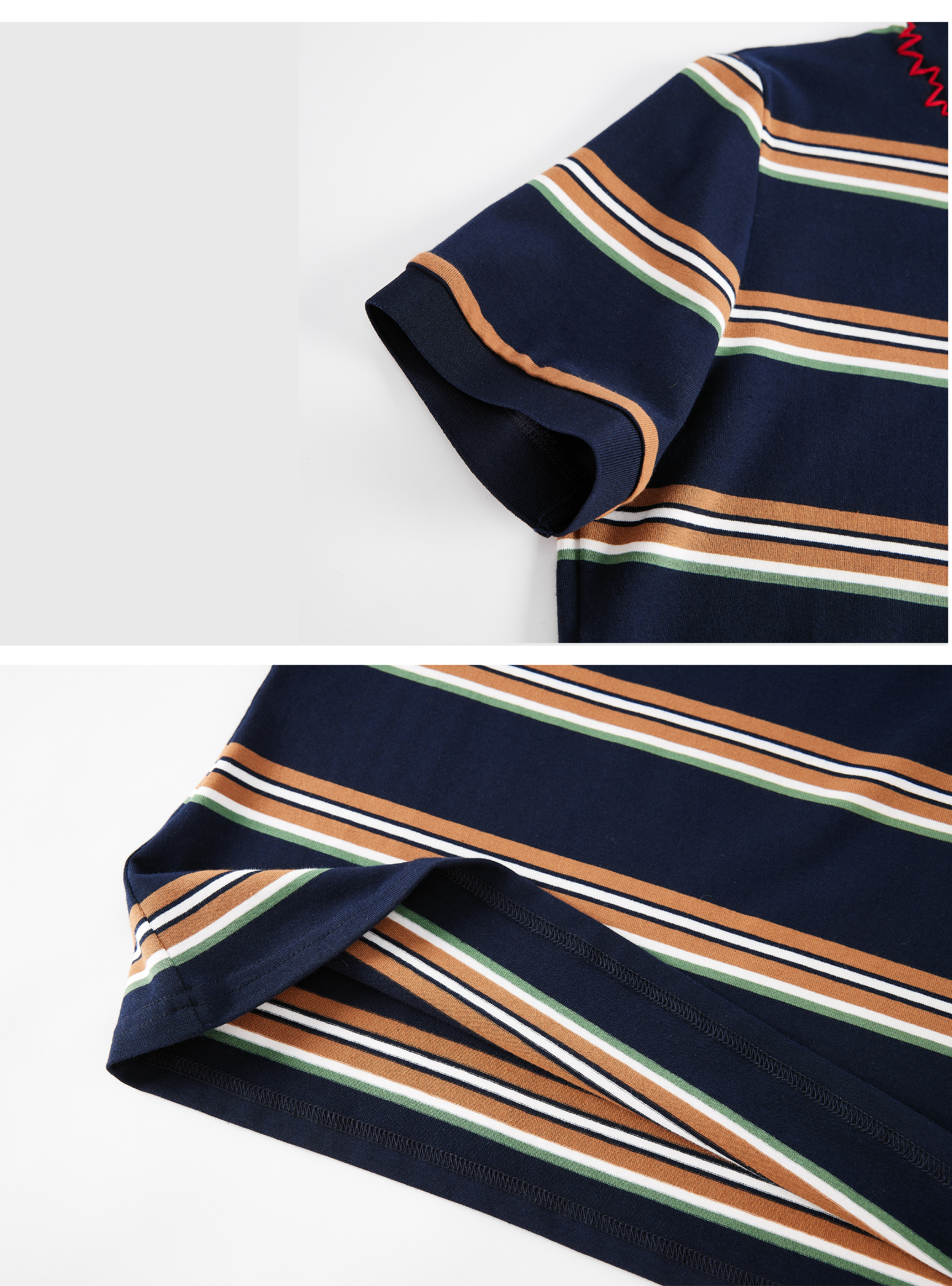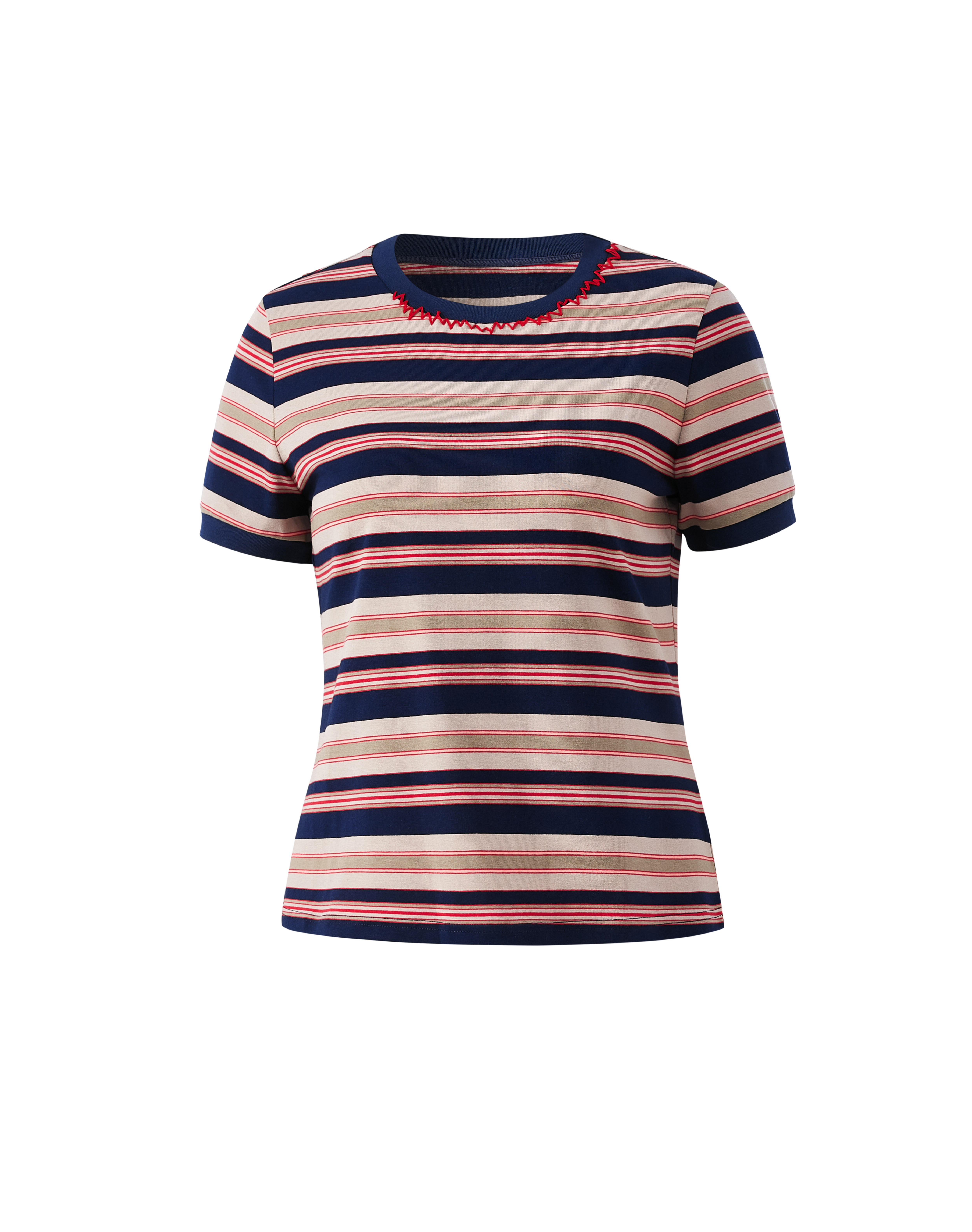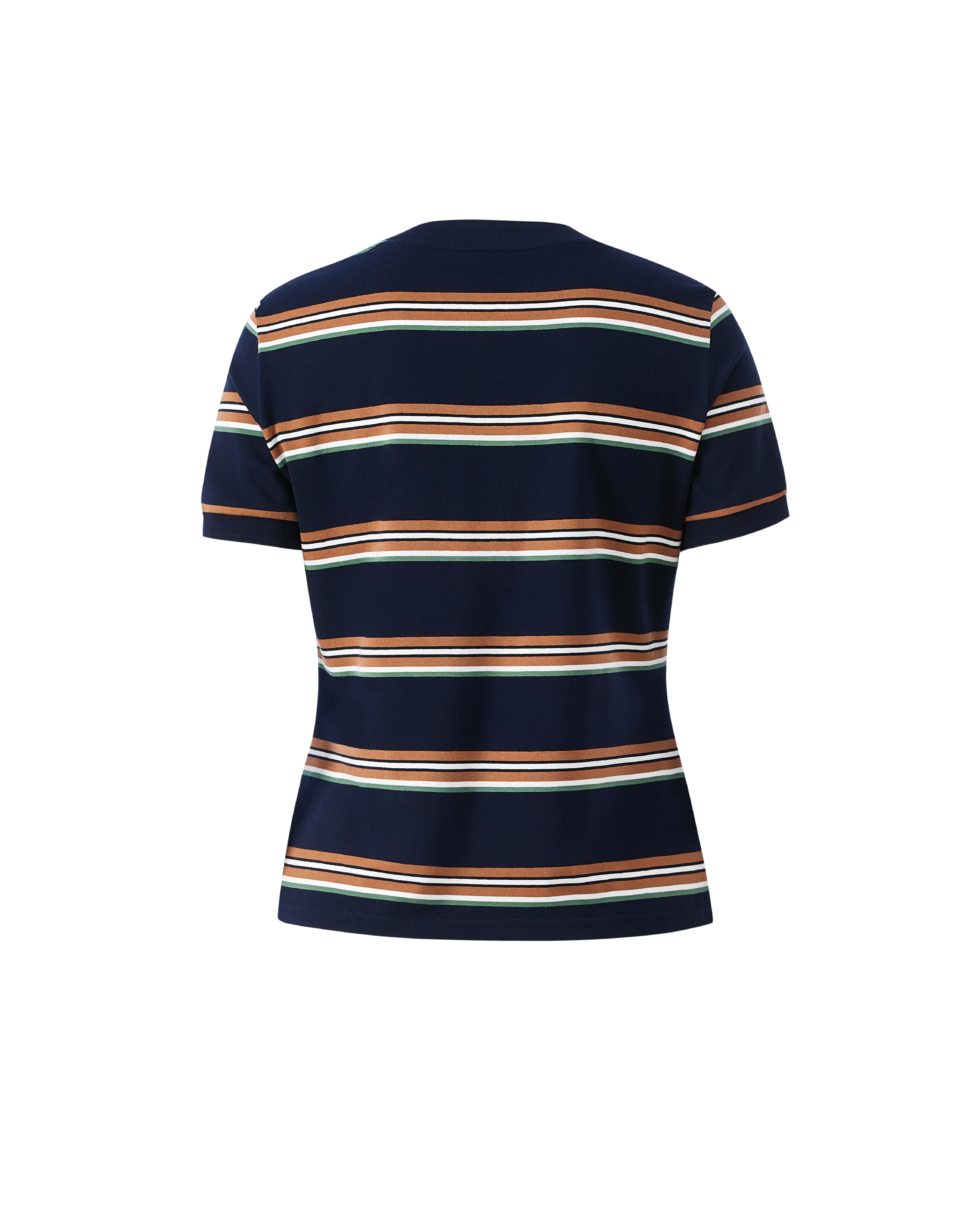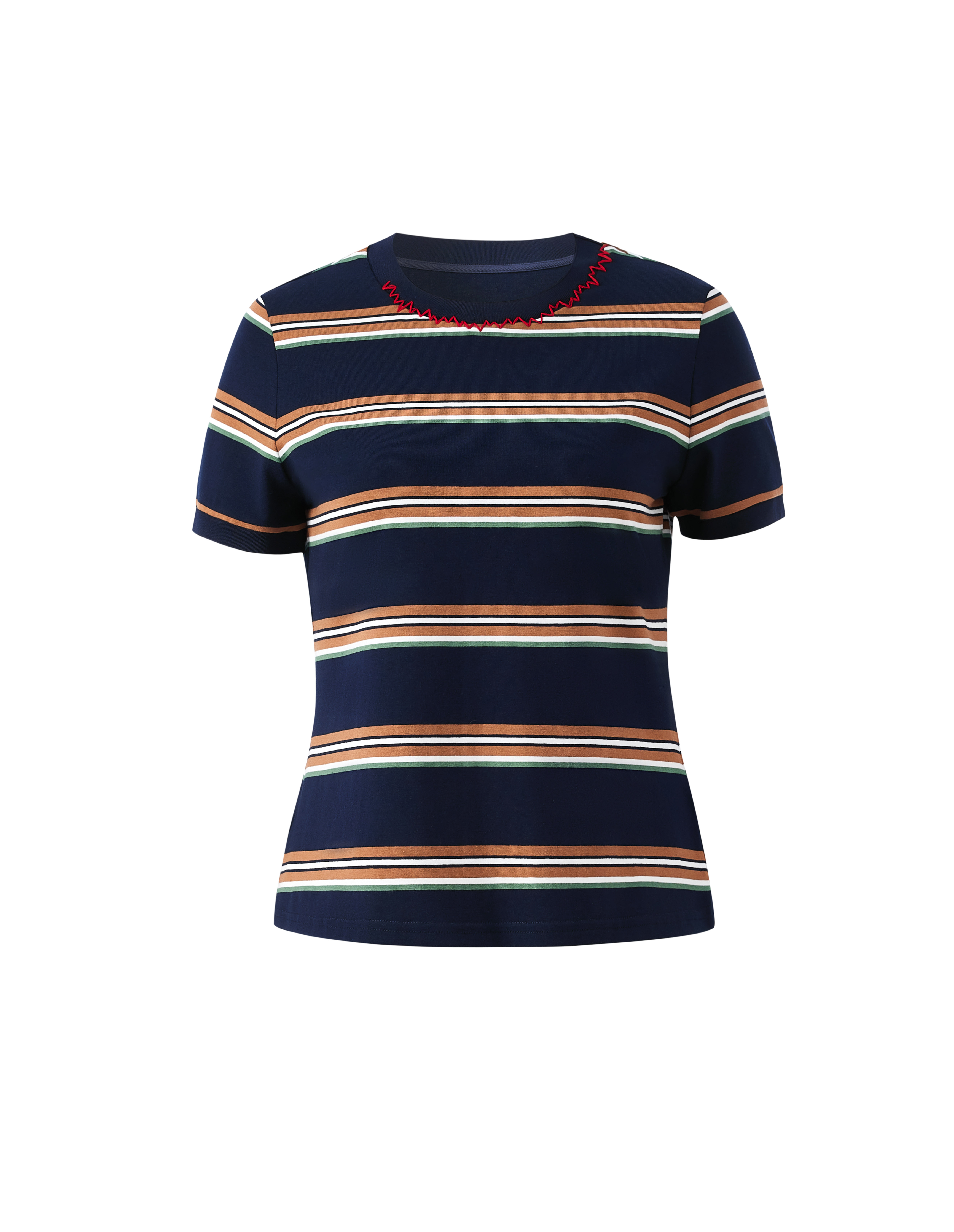 LIYIHAN序章 | 25夏棉条纹手工缝线T恤短款圆领宽松百搭短袖舒适