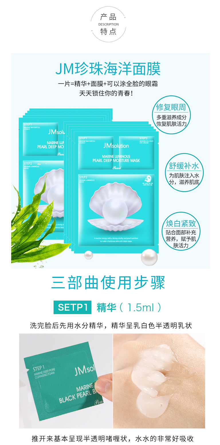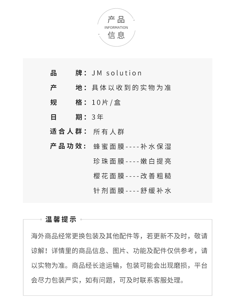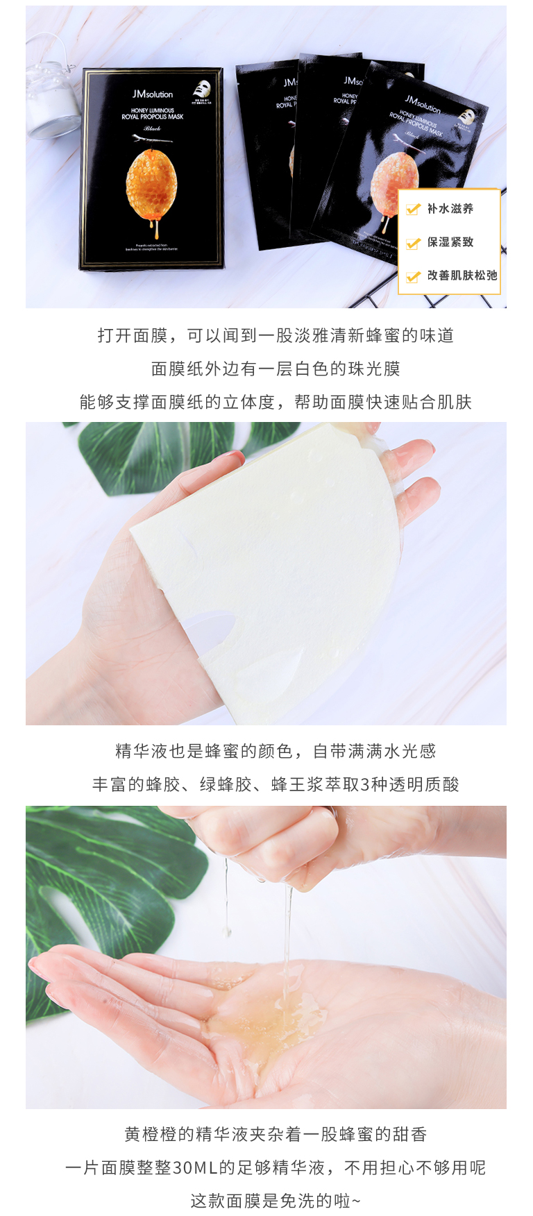 JM面膜肌司研水光急救补水保湿面膜 蜂蜜珍珠水润舒缓秋冬面膜贴
