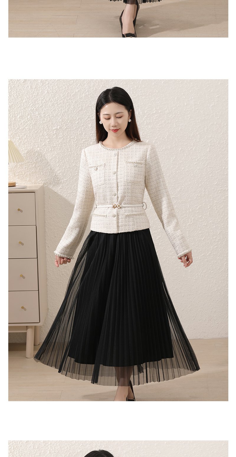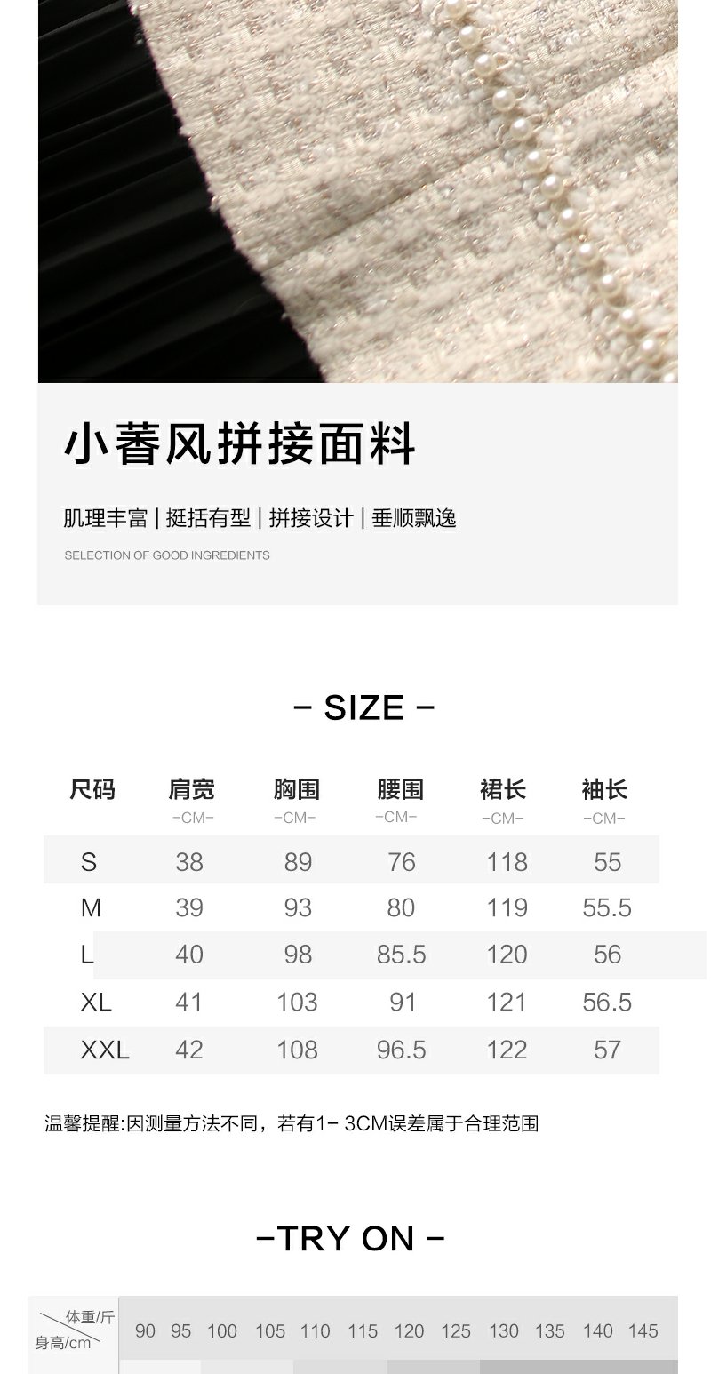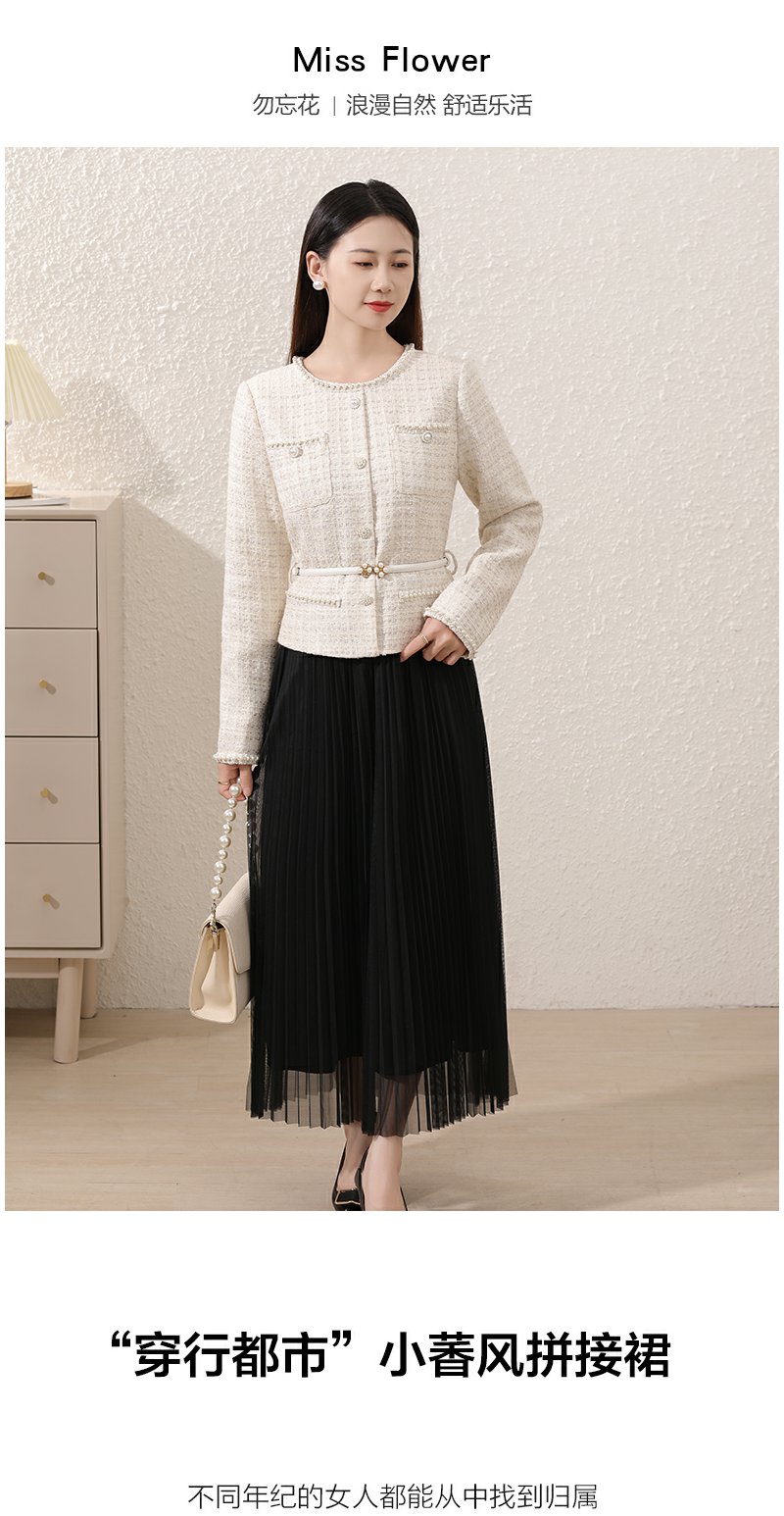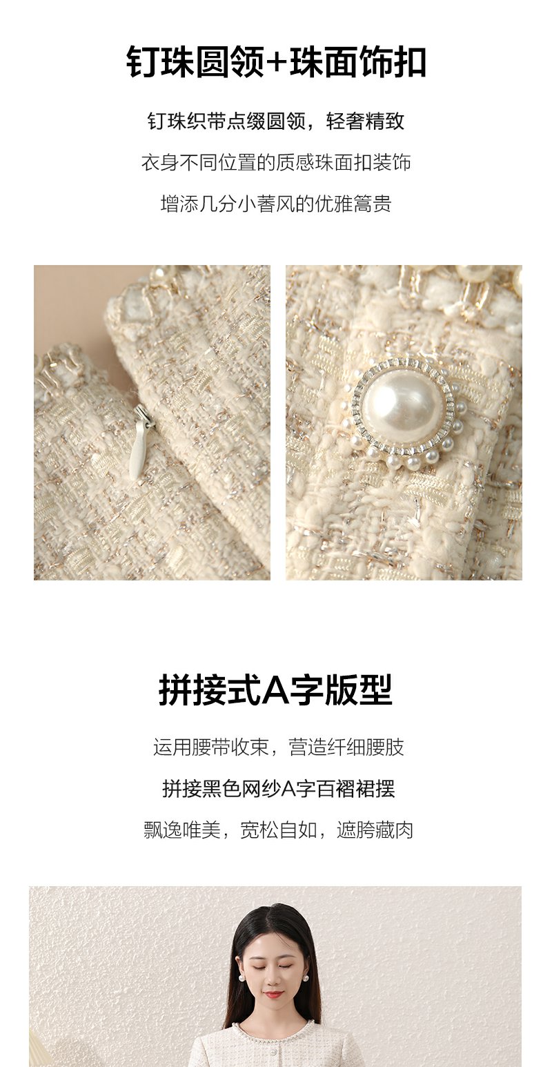 勿忘花小香风连衣裙秋冬款2025新款女装长袖拼接网纱裙子名媛