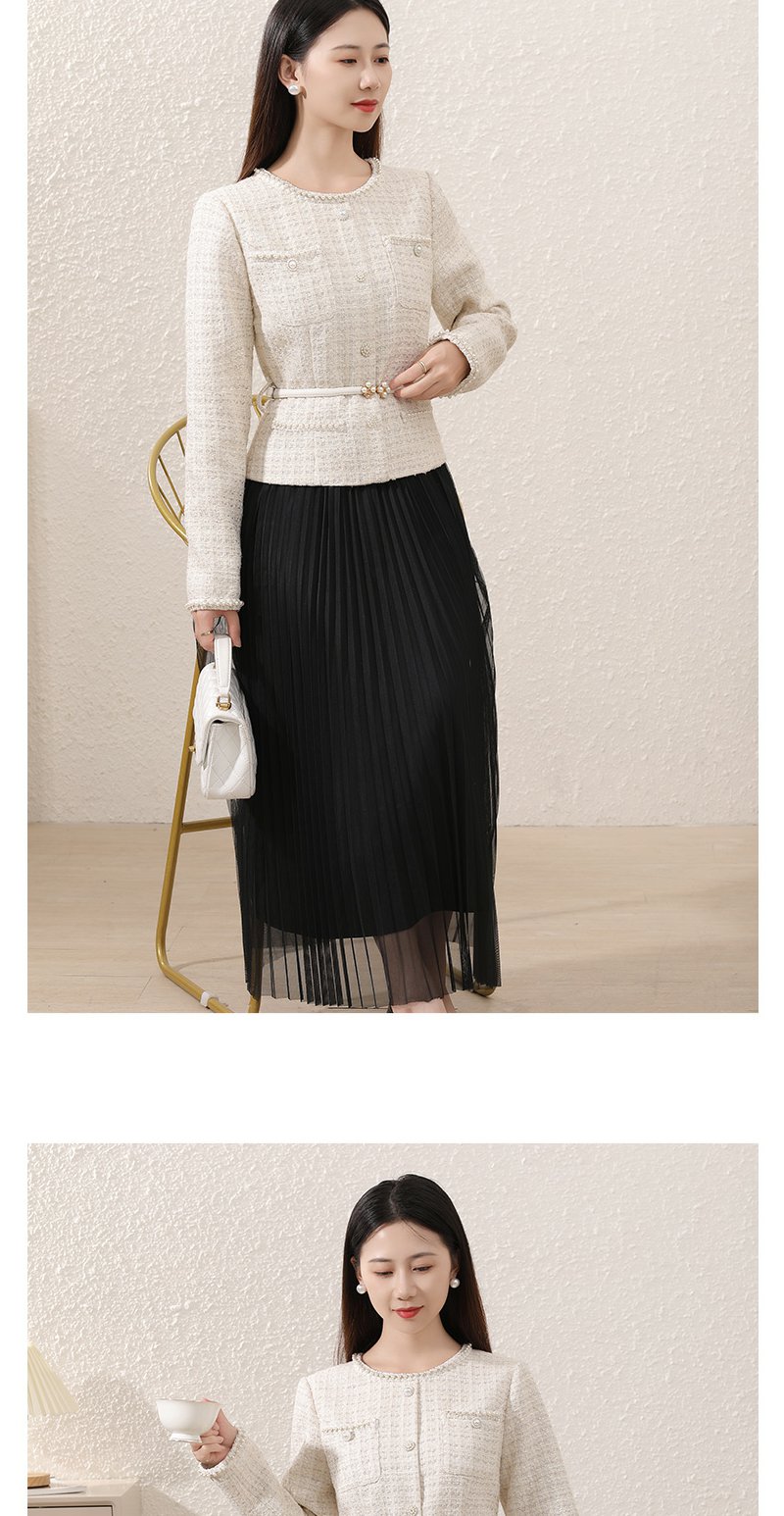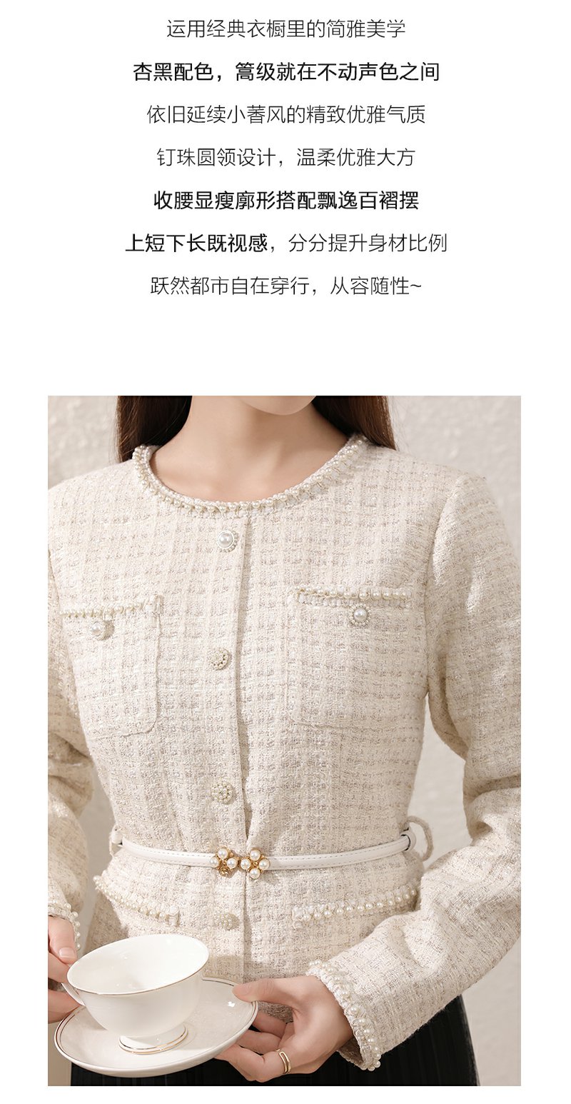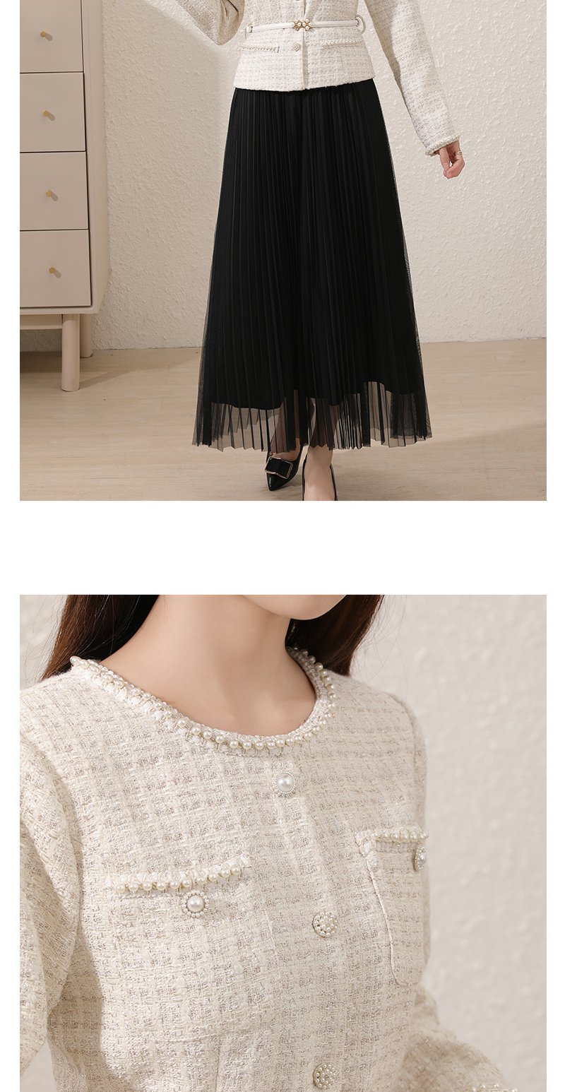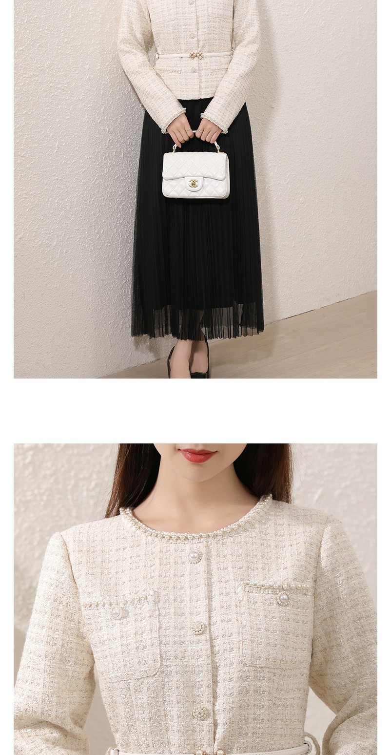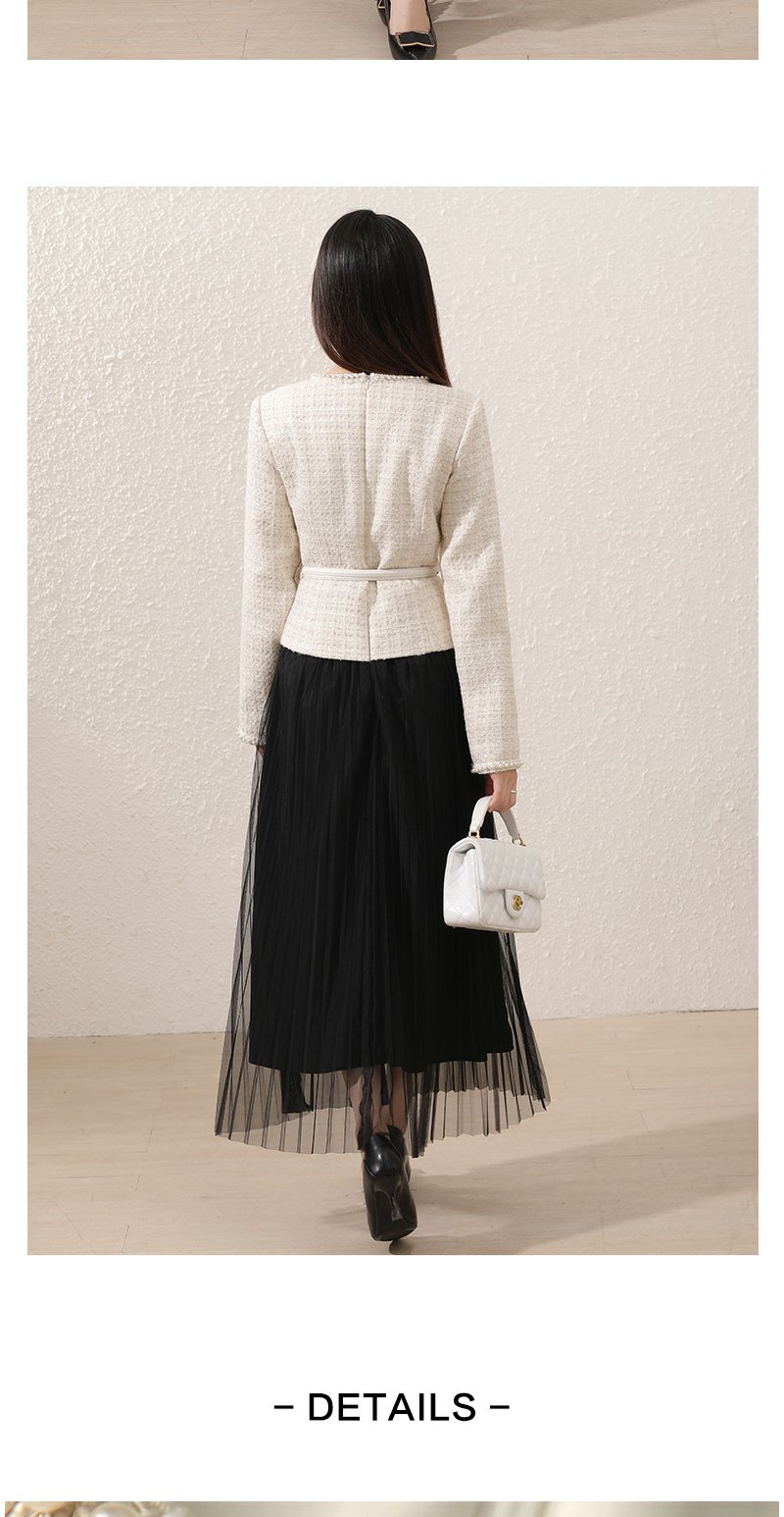 勿忘花小香风连衣裙秋冬款2025新款女装长袖拼接网纱裙子名媛