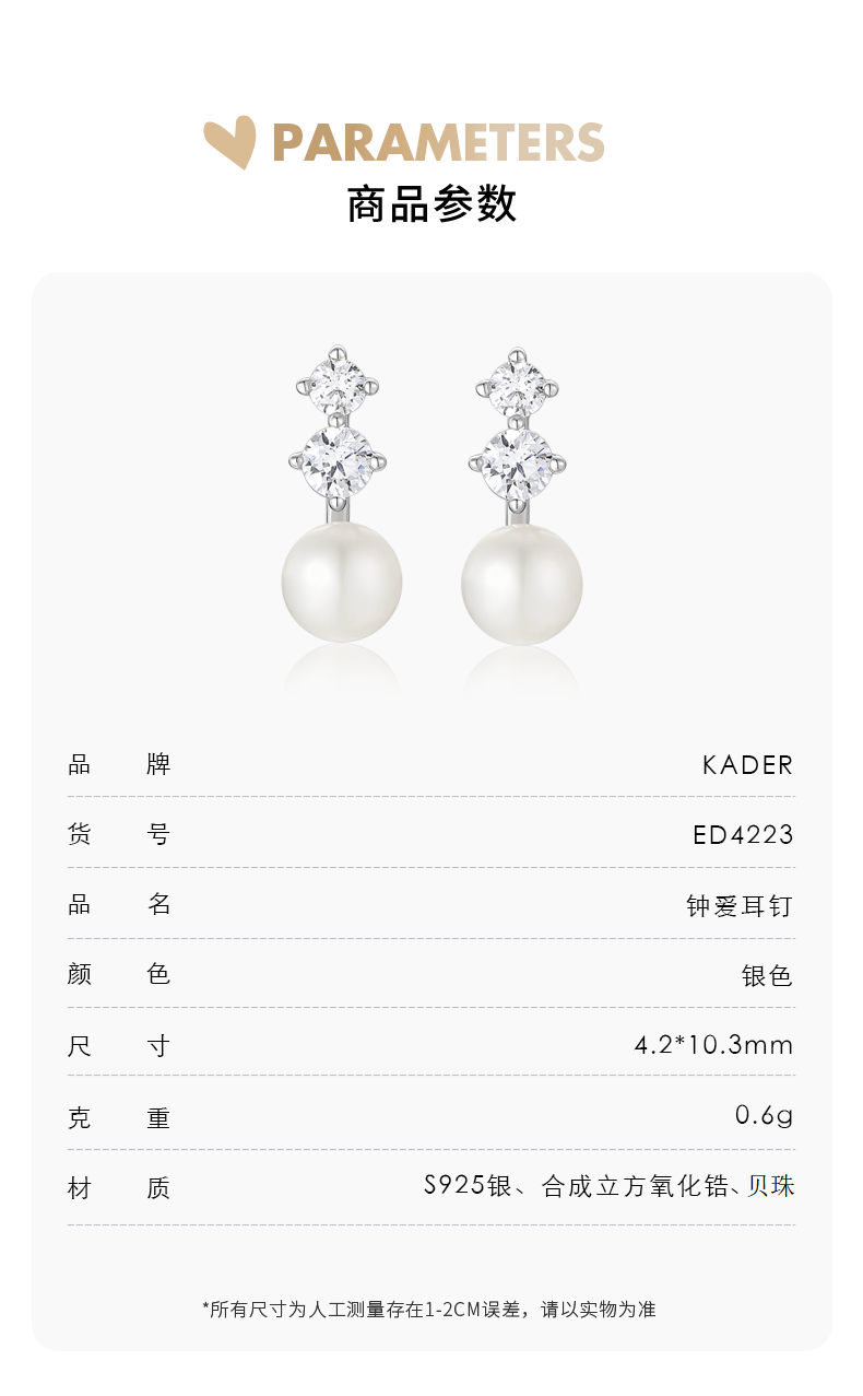 卡蒂罗/KADER 钟爱耳钉 925银经典轻奢经典时尚造型设计耳饰 优雅温柔复古配饰简约大气梦幻百搭礼物 礼盒闺蜜同款