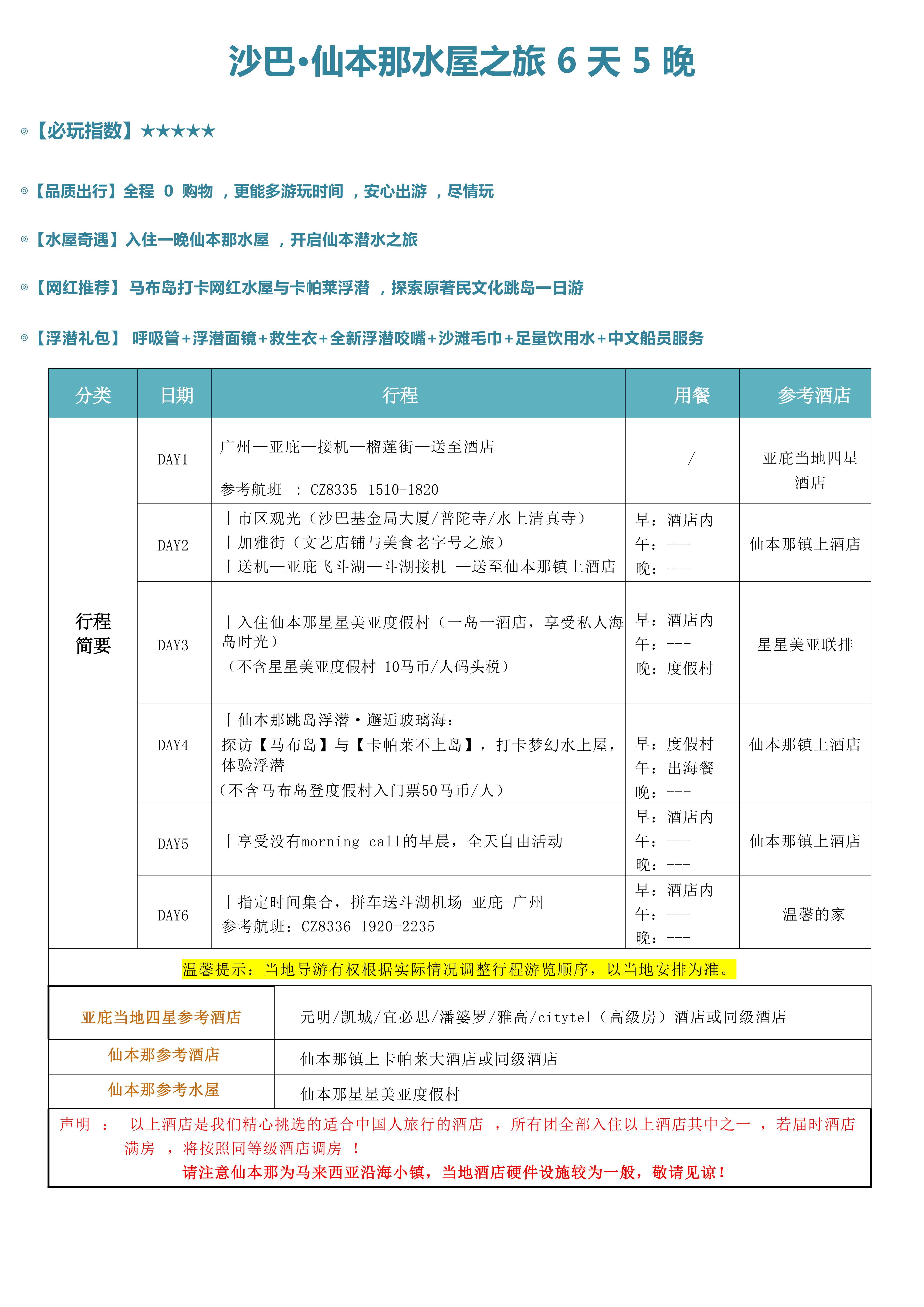 【沙巴•仙本那水屋之旅】6 天 5 晚