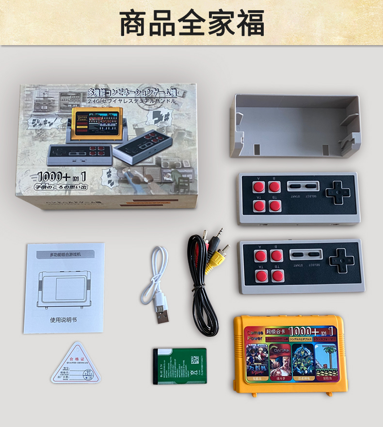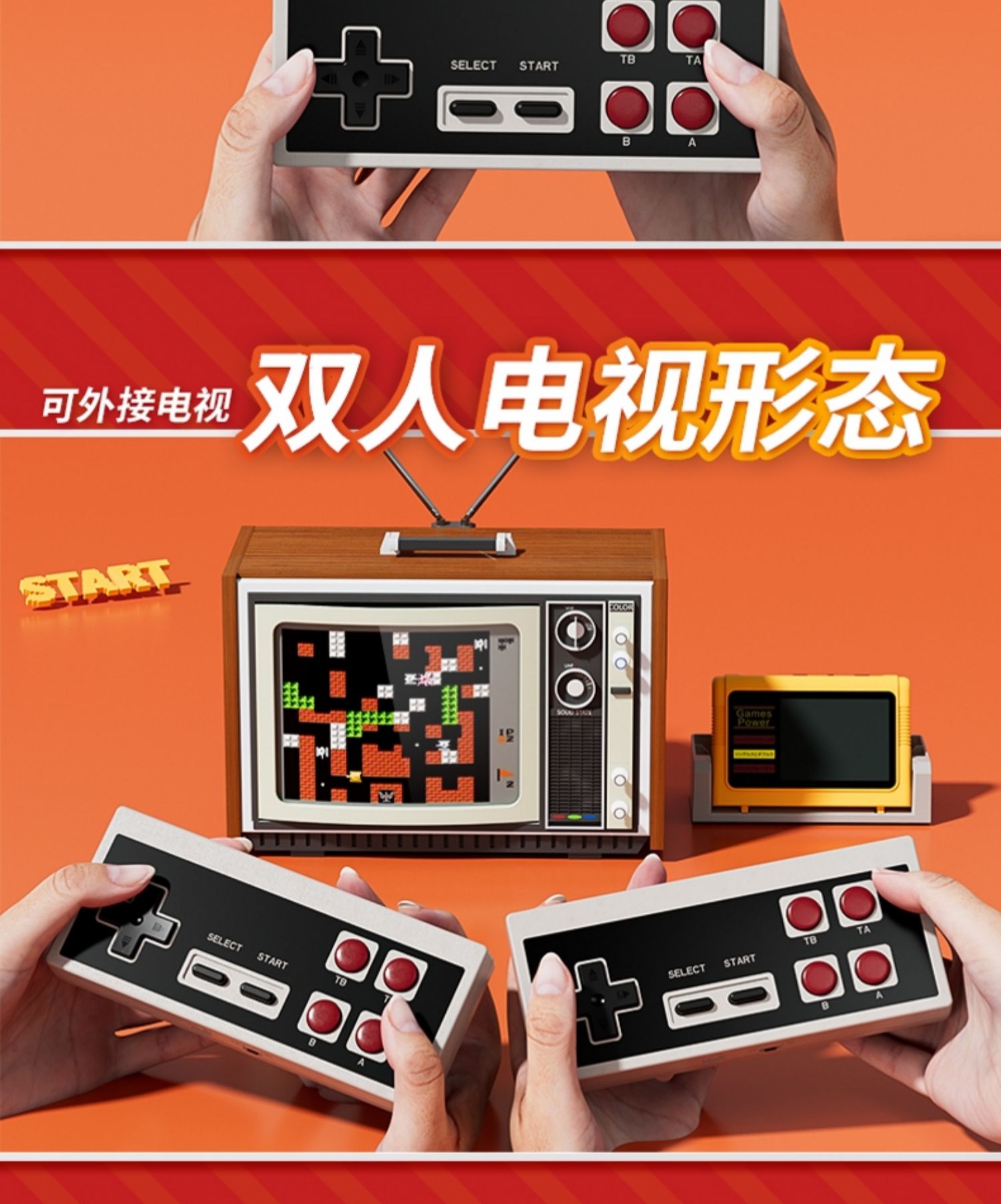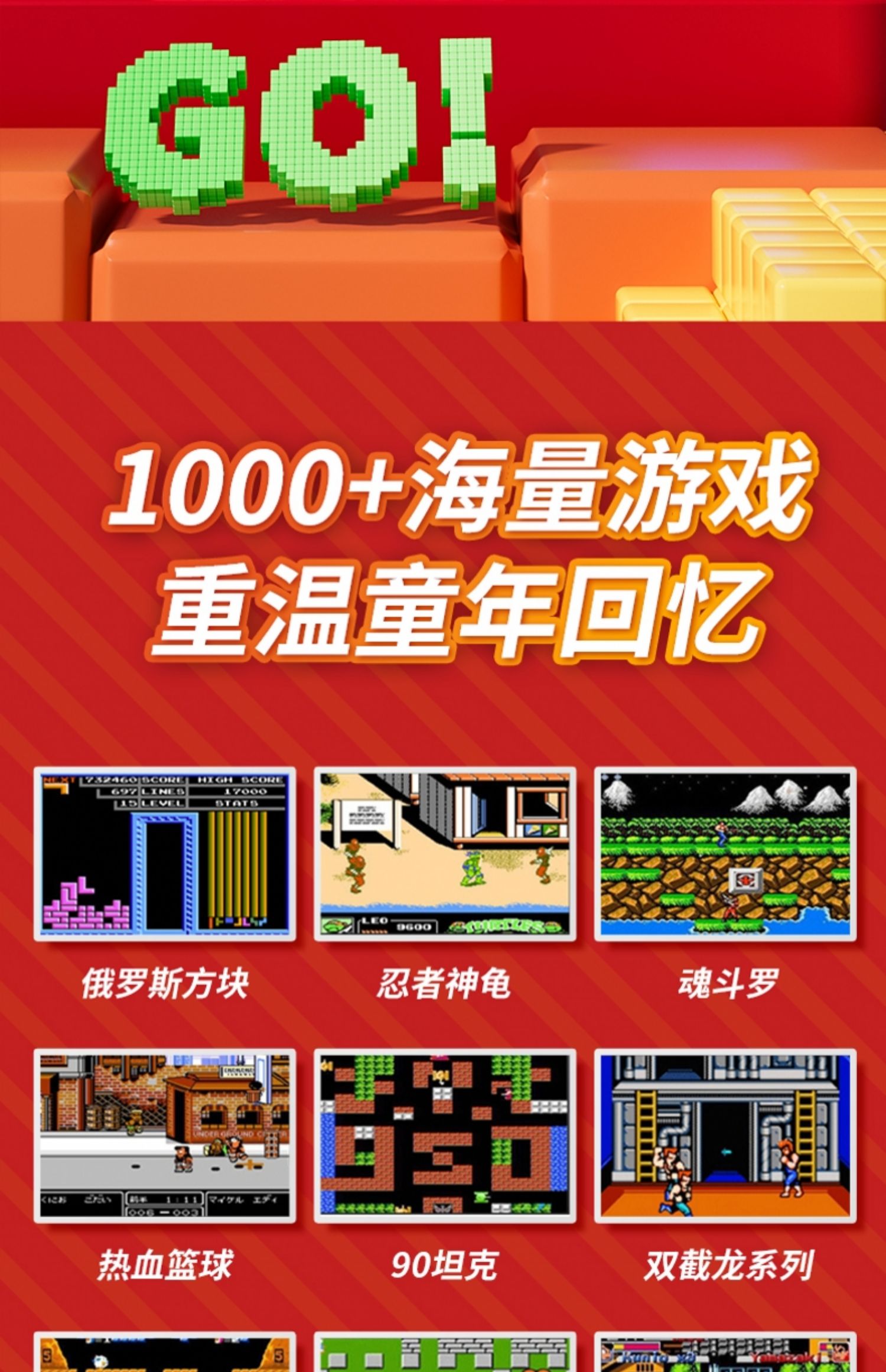 XGO/芯果 复古二合一游戏机 1000款游戏K20 家用3寸彩屏经典黄卡双人无线手柄fc红白机电玩经典怀旧款老式连电视