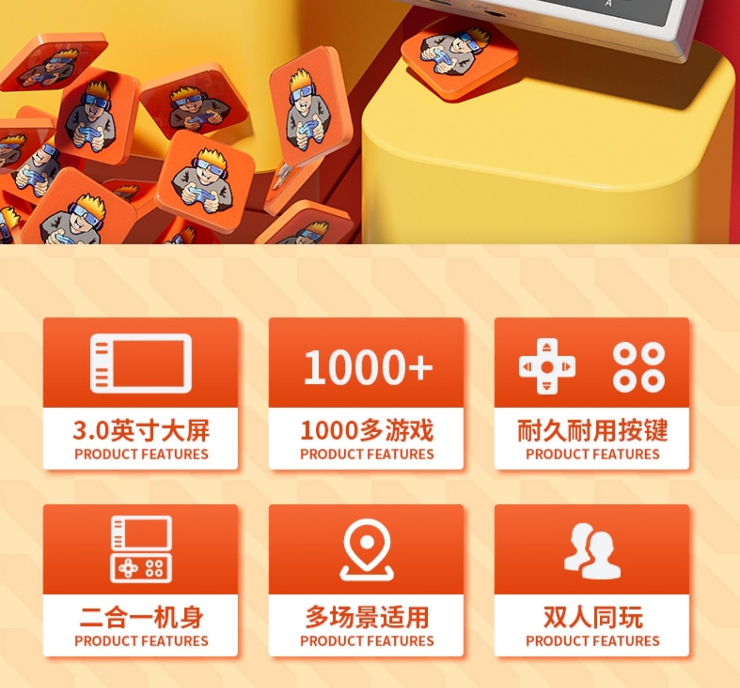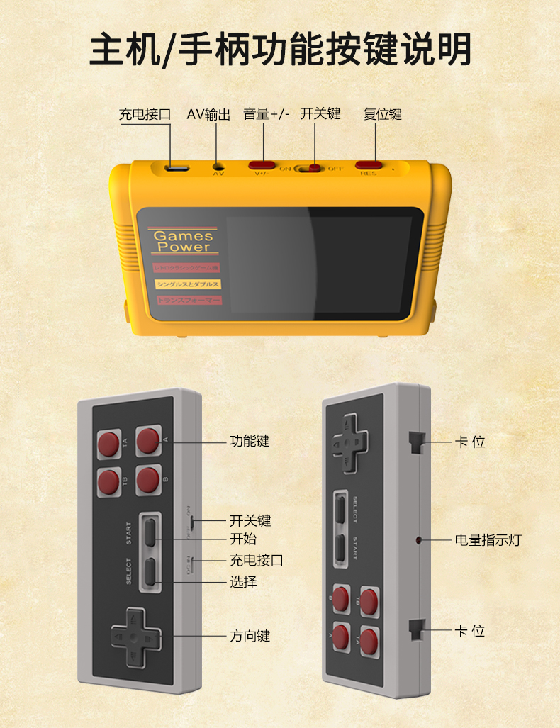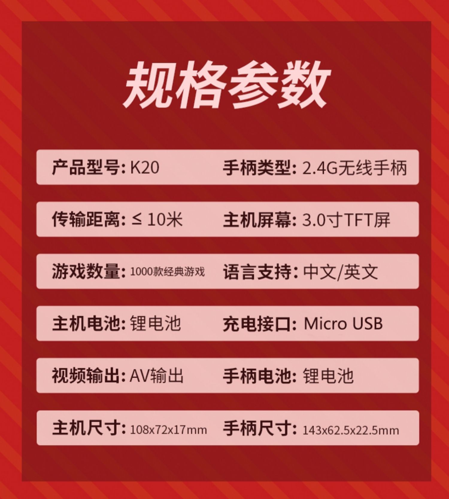 XGO/芯果 复古二合一游戏机 1000款游戏K20 家用3寸彩屏经典黄卡双人无线手柄fc红白机电玩经典怀旧款老式连电视
