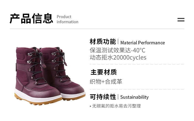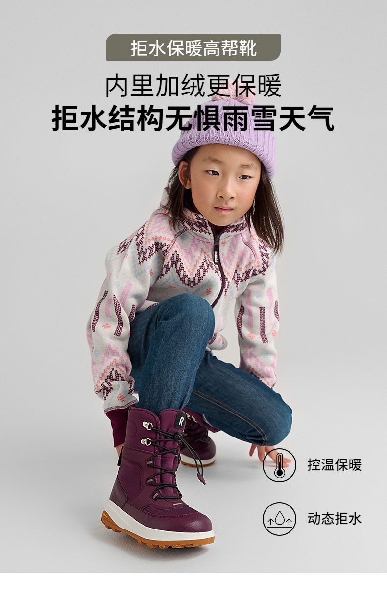 reima男女儿童户外雪地靴大童冬季新款拒水加绒保暖高帮靴鞋