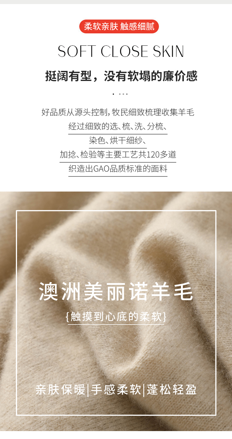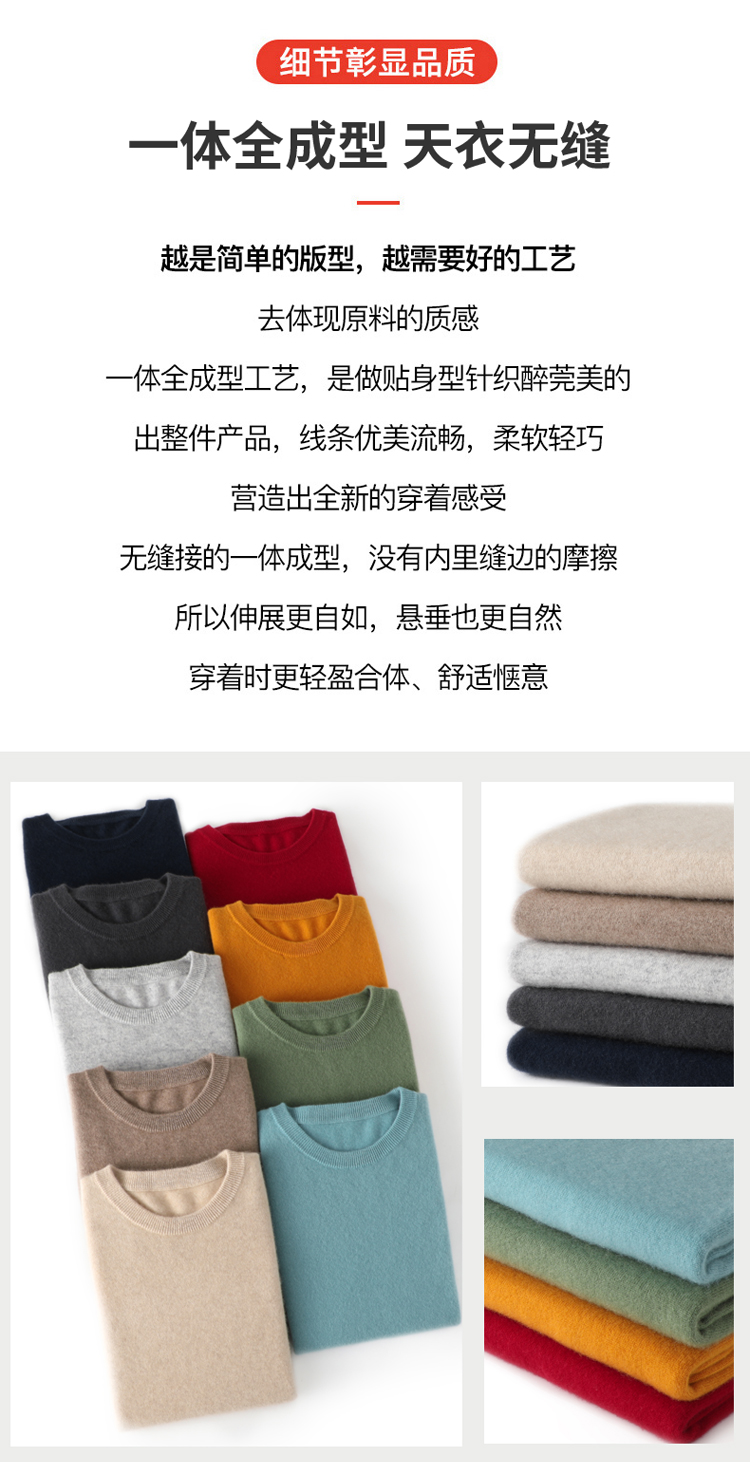 Avann阿曼衣无缝金丝平面圆领100%羊绒衫MY007-